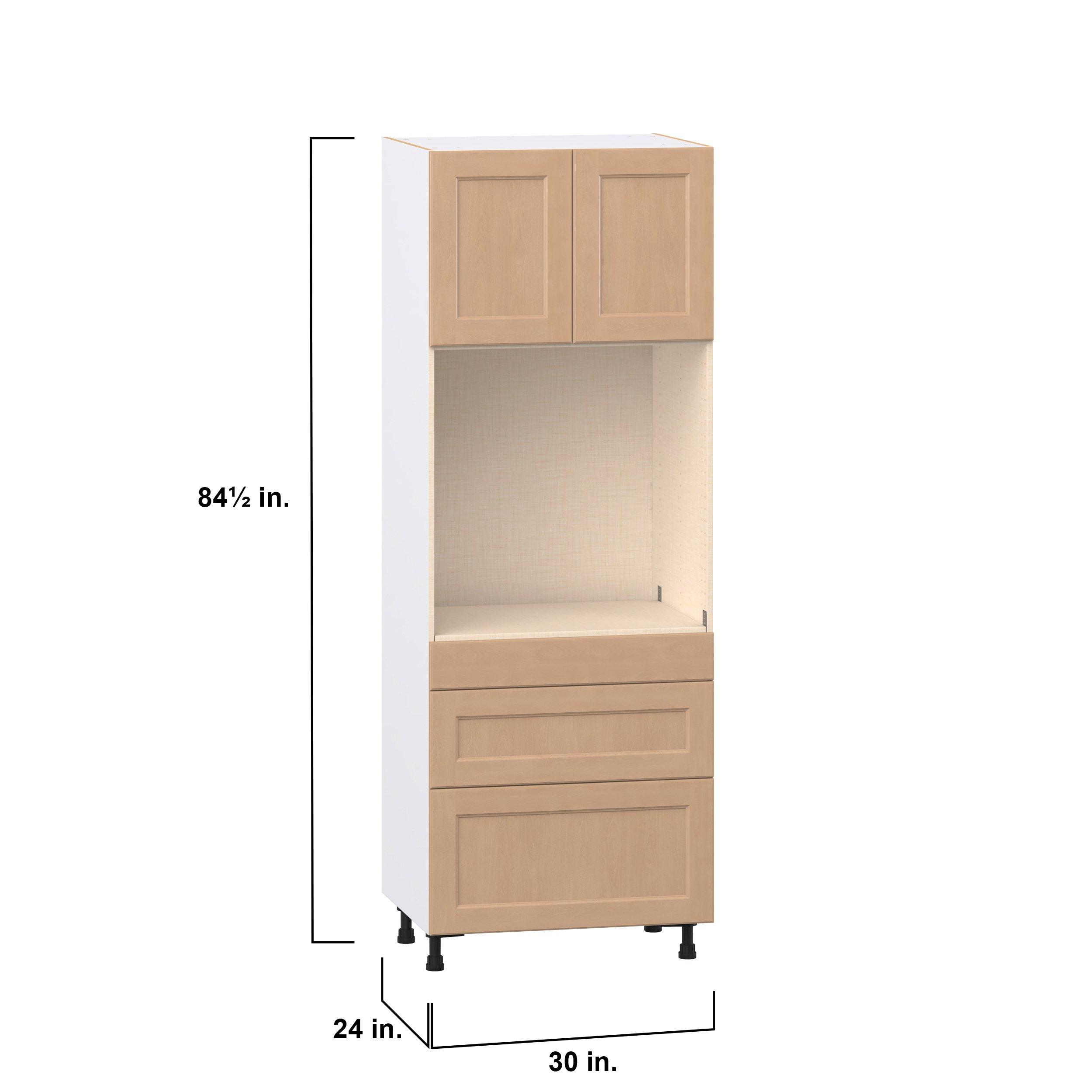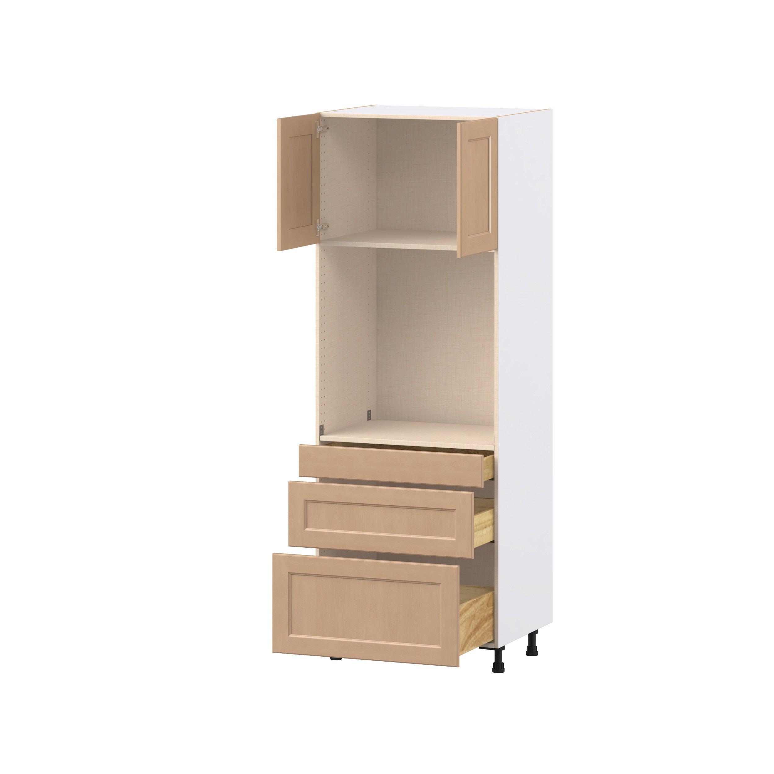 Experience the striking beauty of Sugarhill wide-rail shaker-inspired cabinets. Available in a warm and light sugar cookie finish, this collection will add warmth and lasting elegance to any space. Crafted from one-piece MDF Studio Design Collection Sugarhill 30 in. Stained Sugar Cookie Door and Drawer Single Oven Pantry Cabinet is designed to resist hairline cracks while the easy-to-clean finish stands up to stains and moisture. Featuring 5-piece doors and dovetail drawer joints, these cabinets offer durability and elegance. This collection combines style with everyday storage solutions.