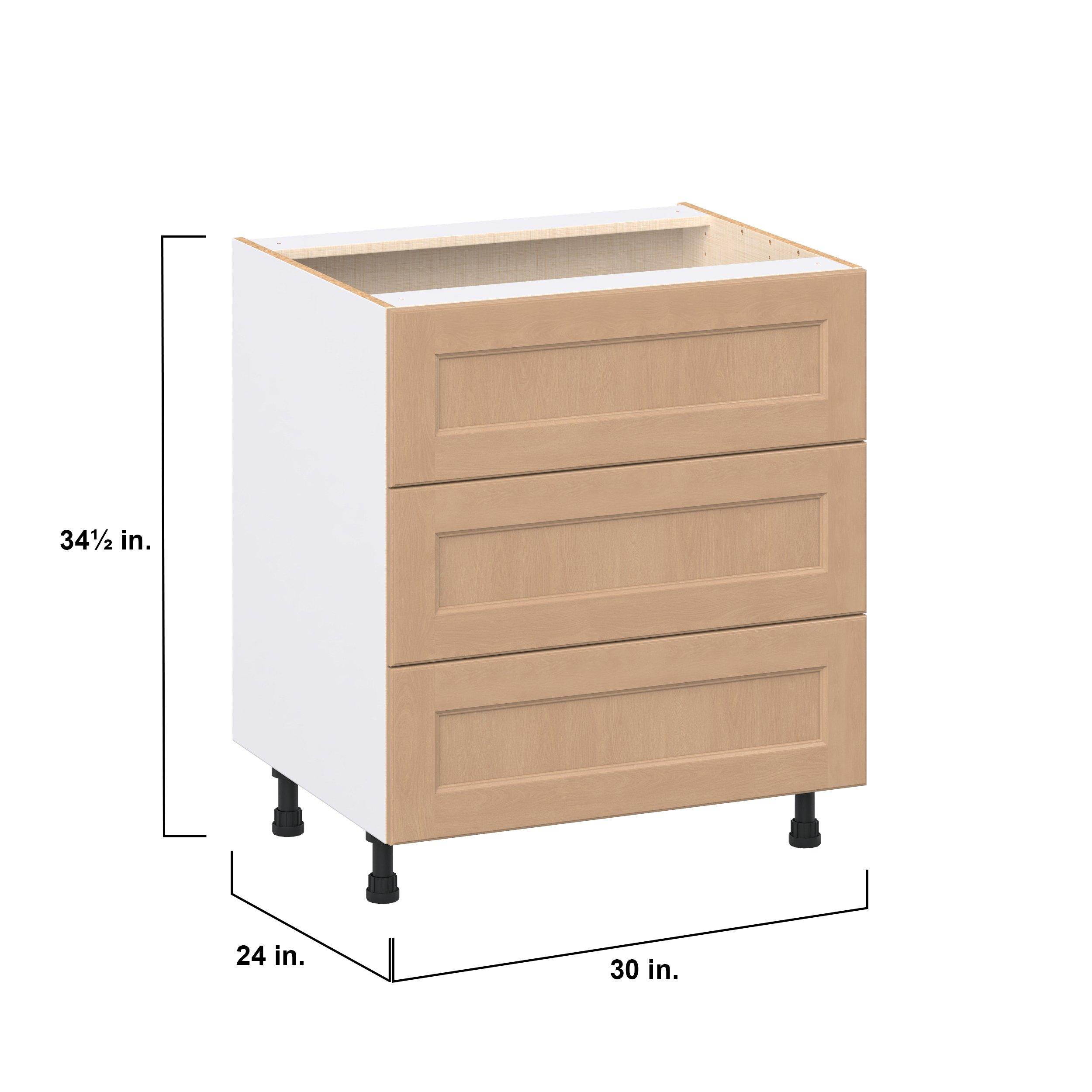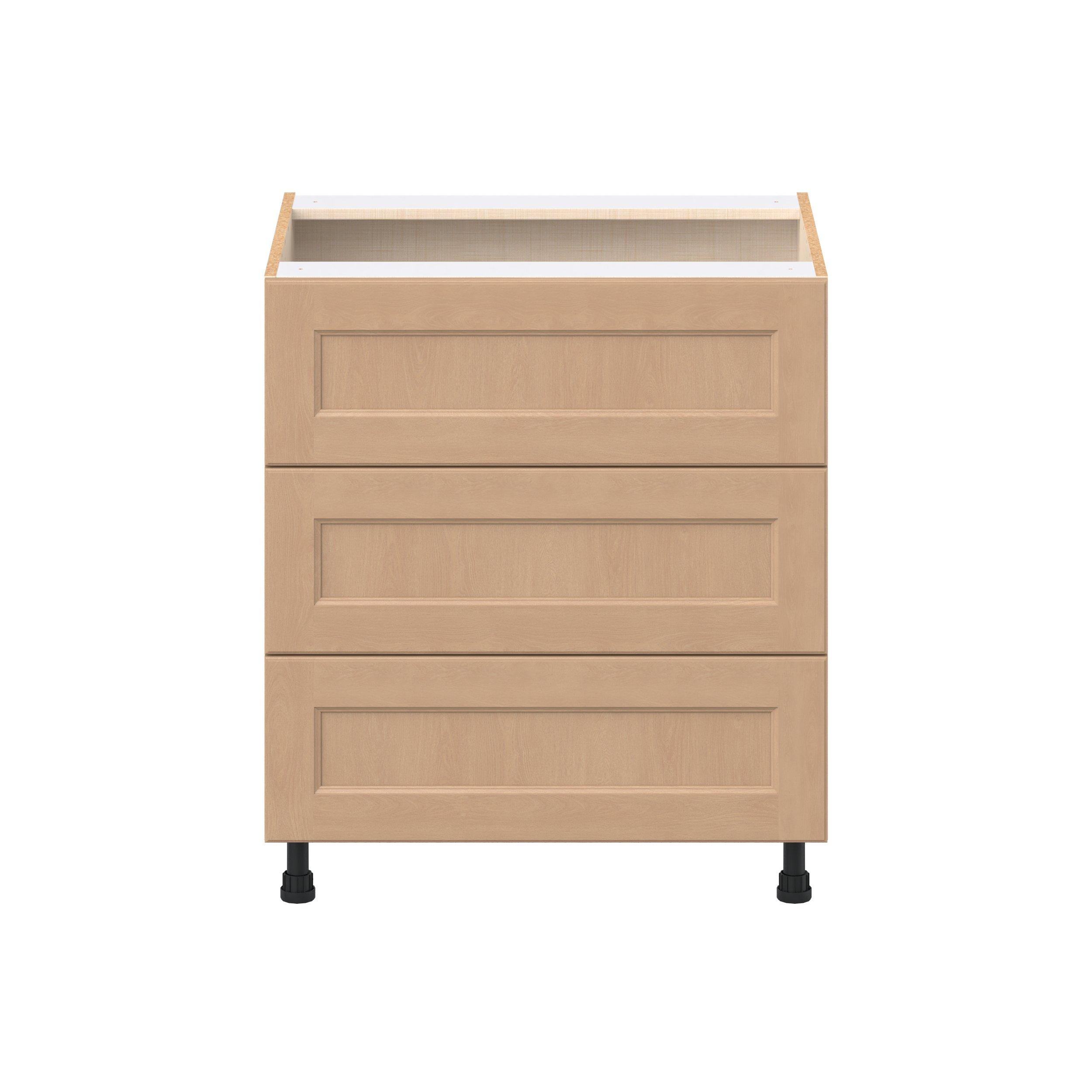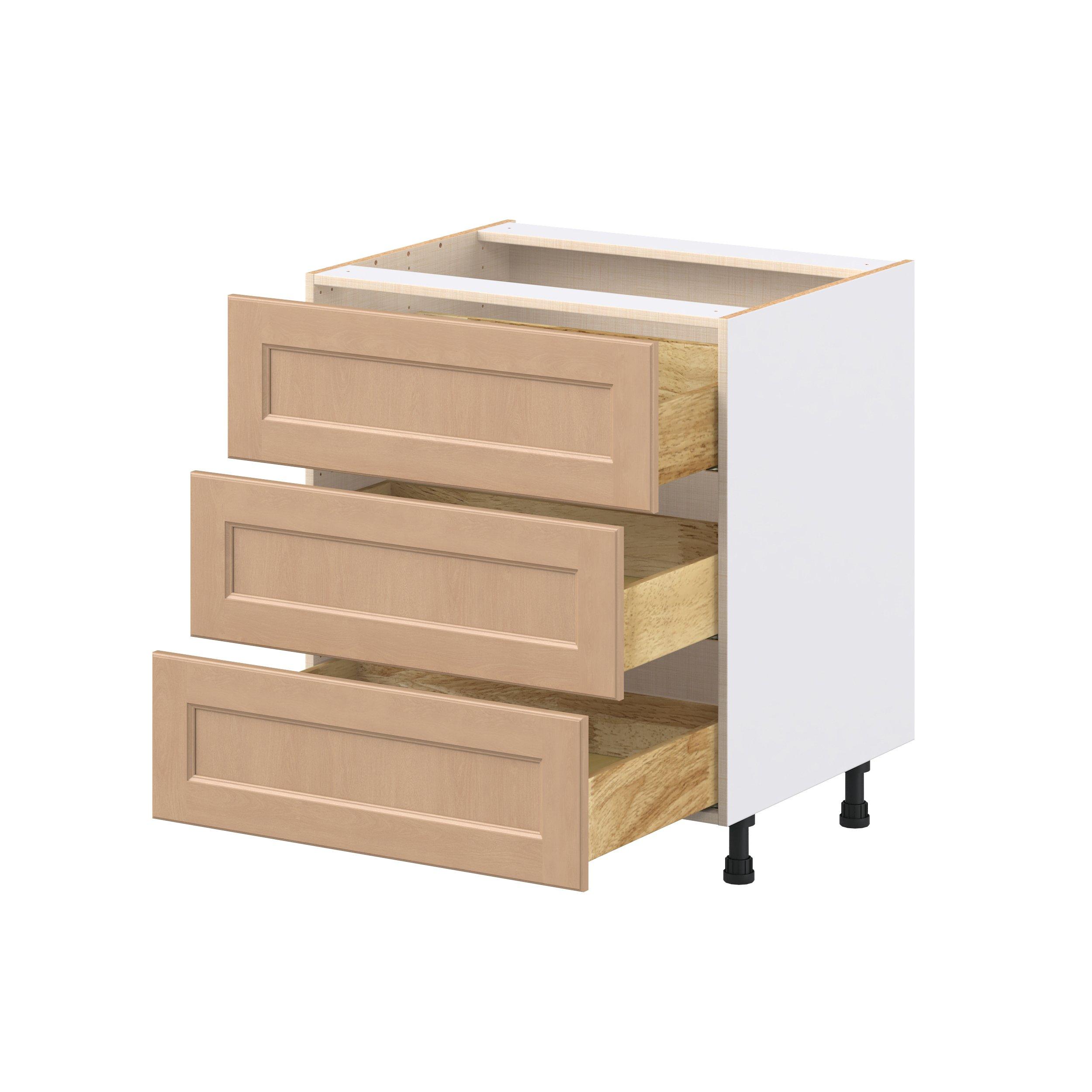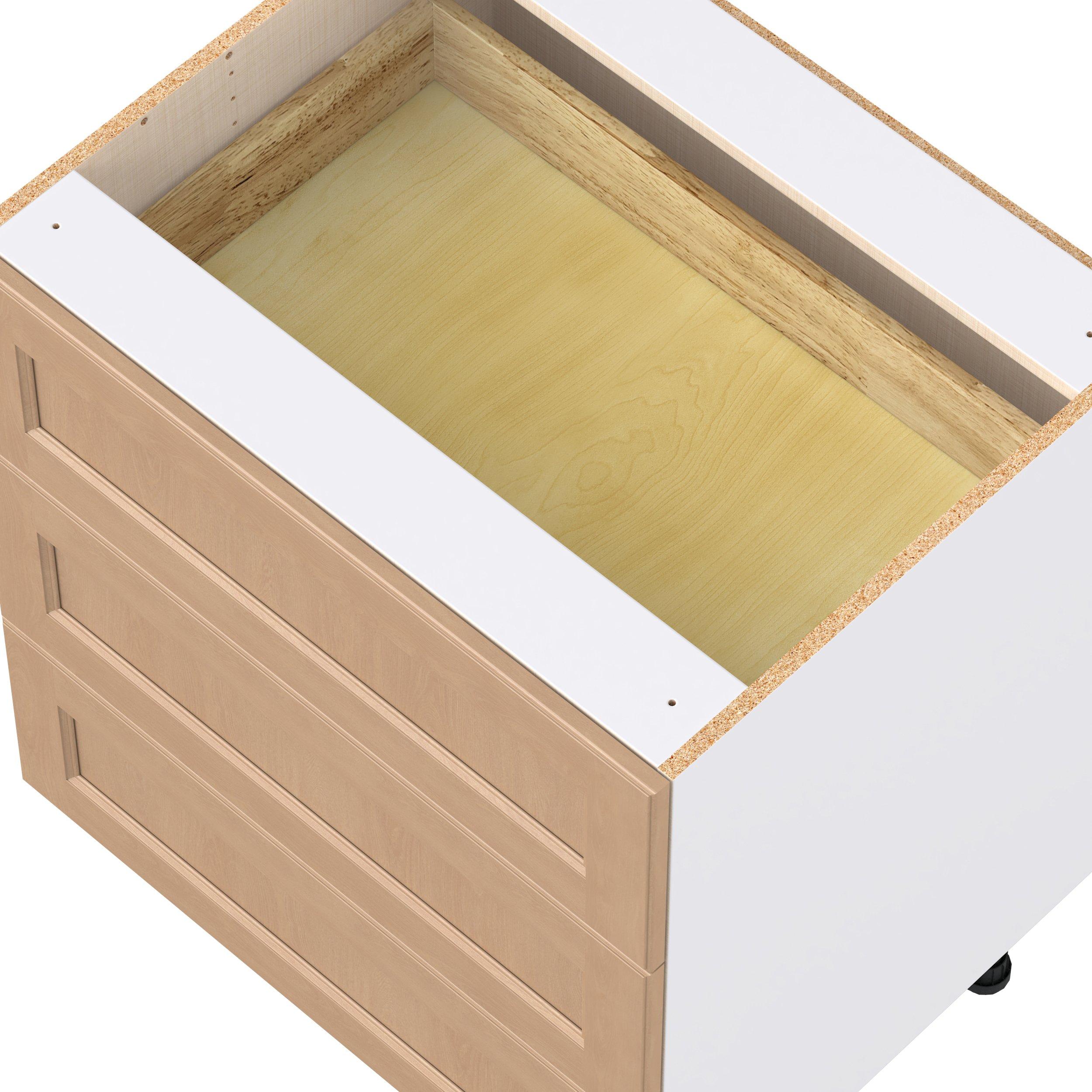 Experience the striking beauty of Sugarhill wide-rail shaker-inspired cabinets. Available in a warm and light sugar cookie finish, this collection will add warmth and lasting elegance to any space. Crafted from one-piece MDF Studio Design Collection Sugarhill 30 in. Stained Sugar Cookie Drawer Base Cabinet is designed to resist hairline cracks while the easy-to-clean finish stands up to stains and moisture. Featuring 5-piece doors and dovetail drawer joints, these cabinets offer durability and elegance. This collection combines style with everyday storage solutions.