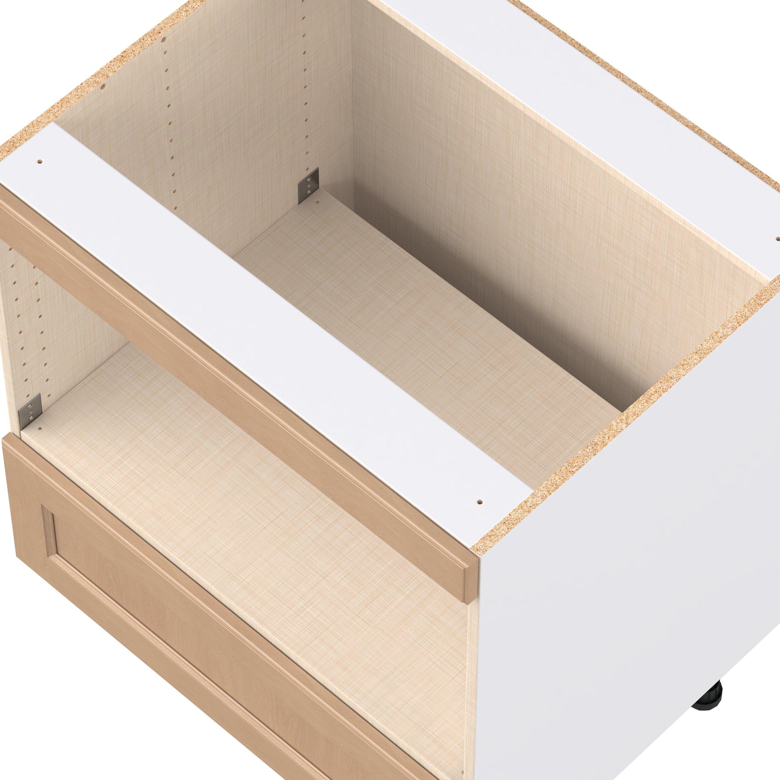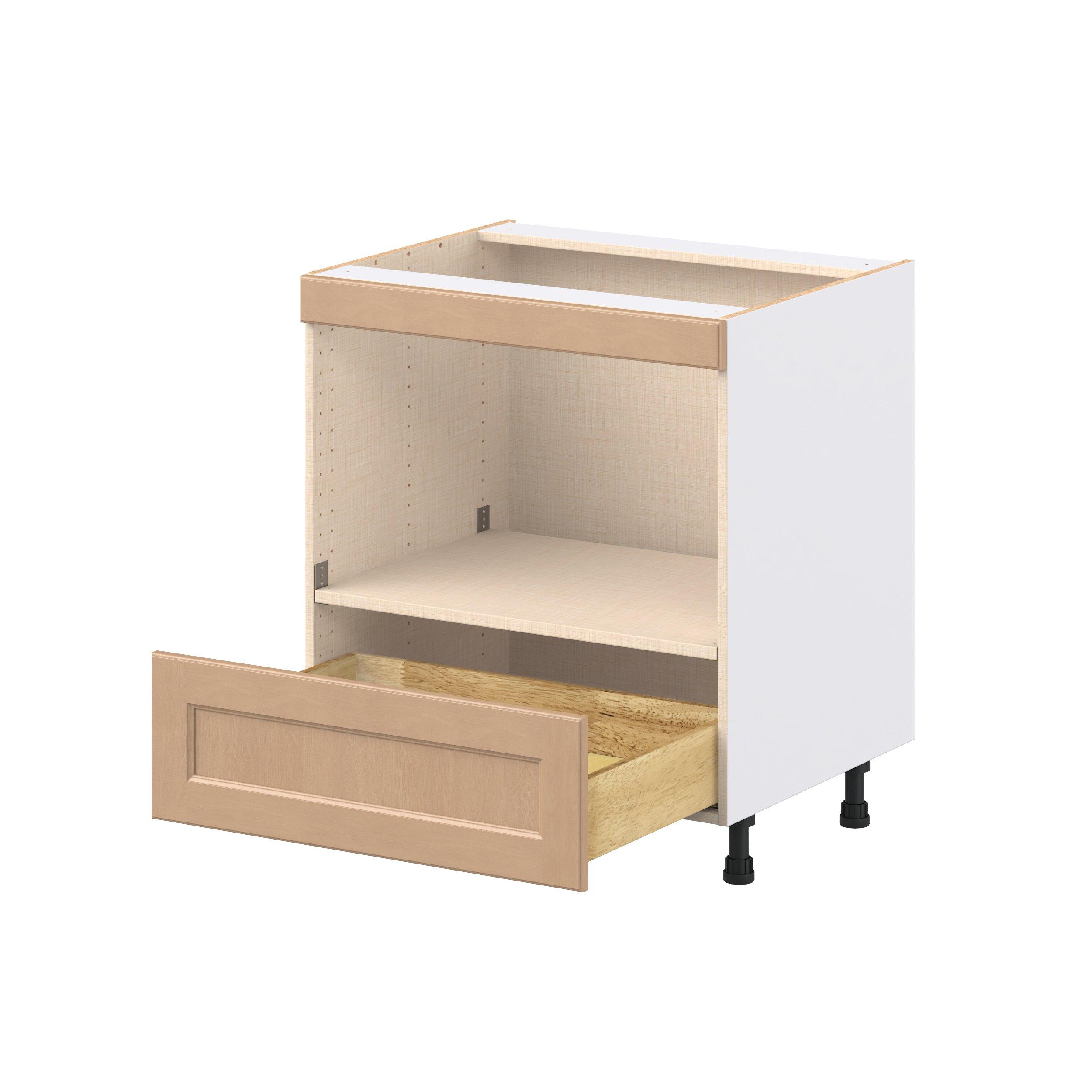 Experience the striking beauty of Sugarhill wide-rail shaker-inspired cabinets. Available in a warm and light sugar cookie finish, this collection will add warmth and lasting elegance to any space. Crafted from one-piece MDF Studio Design Collection Sugarhill 30 in. Stained Sugar Cookie Microwave Base Cabinet is designed to resist hairline cracks while the easy-to-clean finish stands up to stains and moisture. Featuring 5-piece doors and dovetail drawer joints, these cabinets offer durability and elegance. This collection combines style with everyday storage solutions.