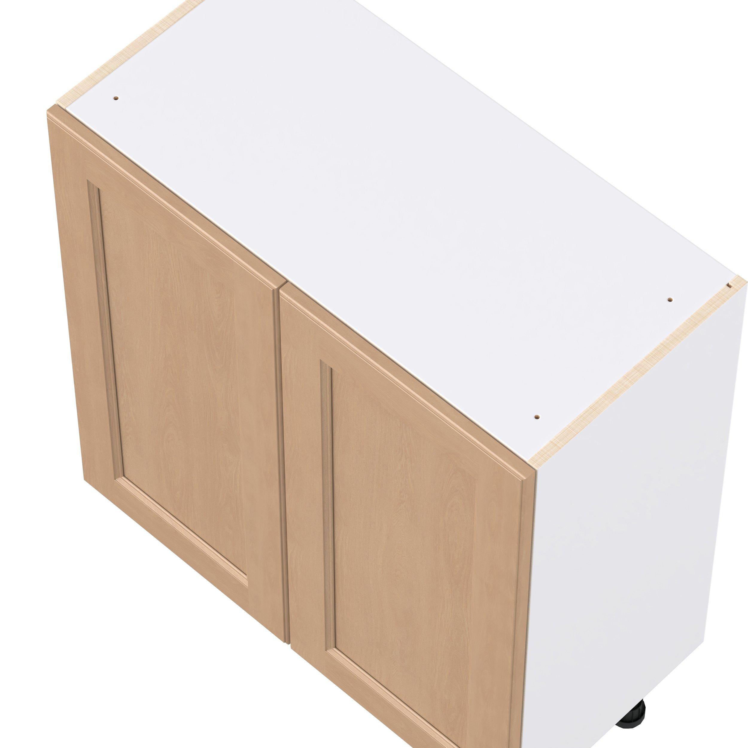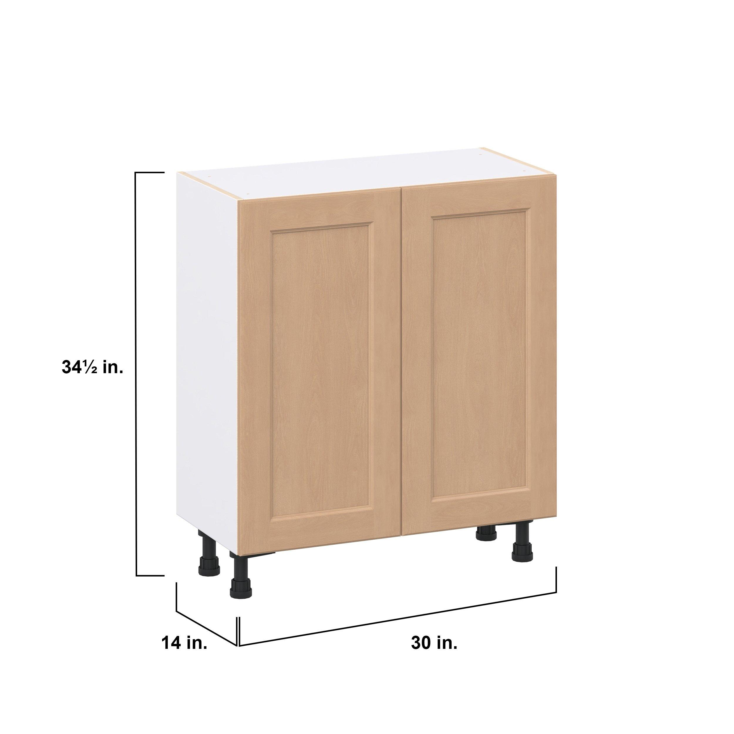 Experience the striking beauty of Sugarhill wide-rail shaker-inspired cabinets. Available in a warm and light sugar cookie finish, this collection will add warmth and lasting elegance to any space. Crafted from one-piece MDF Studio Design Collection Sugarhill 30 in. Stained Sugar Cookie Shallow Base Cabinet is designed to resist hairline cracks while the easy-to-clean finish stands up to stains and moisture. Featuring 5-piece doors and dovetail drawer joints, these cabinets offer durability and elegance. This collection combines style with everyday storage solutions.