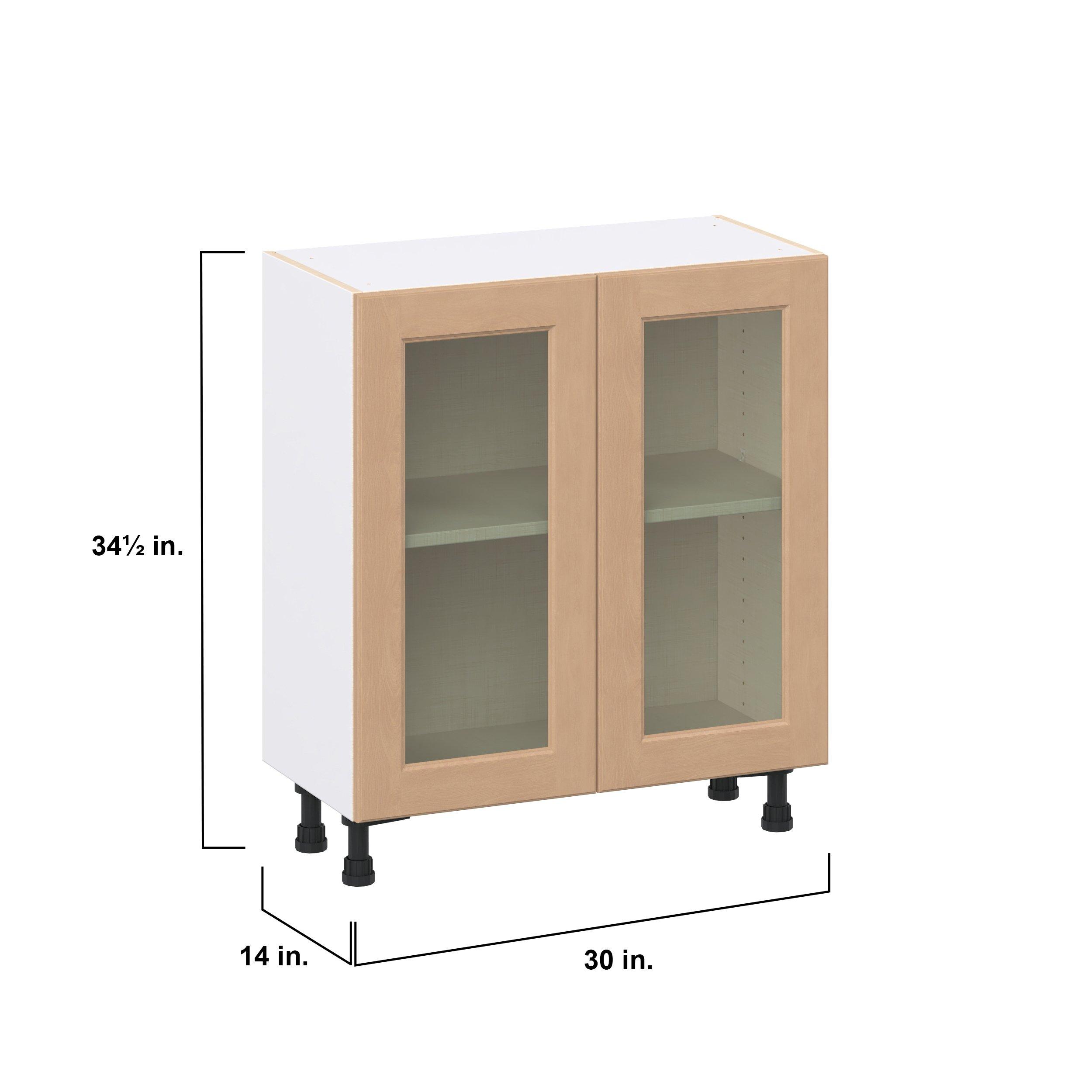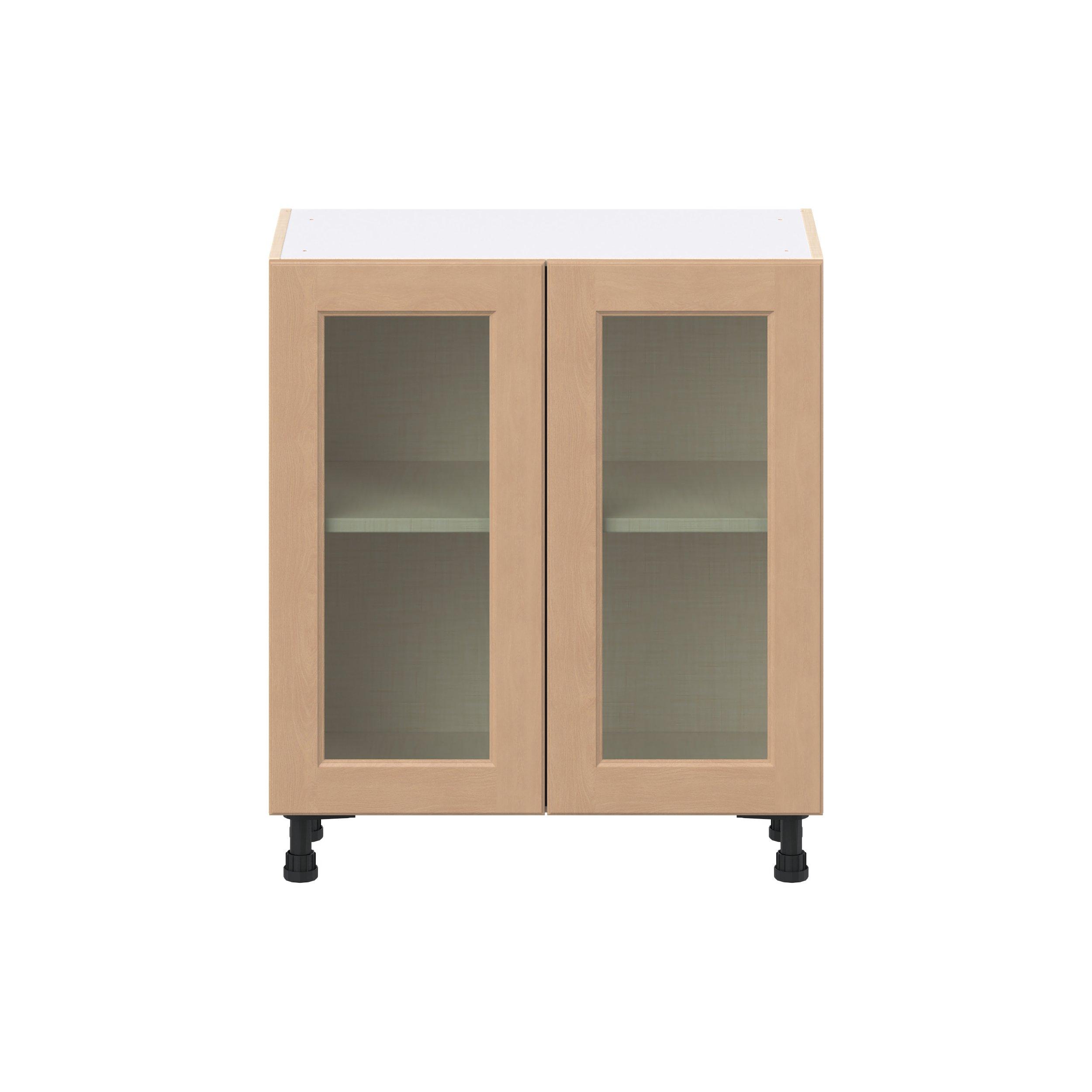 Experience the striking beauty of Sugarhill wide-rail shaker-inspired cabinets. Available in a warm and light sugar cookie finish, this collection will add warmth and lasting elegance to any space. Crafted from one-piece MDF Studio Design Collection Sugarhill 30 in. Stained Sugar Cookie Shallow Base Cabinet with Glass Door is designed to resist hairline cracks while the easy-to-clean finish stands up to stains and moisture. Featuring 5-piece doors and dovetail drawer joints, these cabinets offer durability and elegance. This collection combines style with everyday storage solutions.