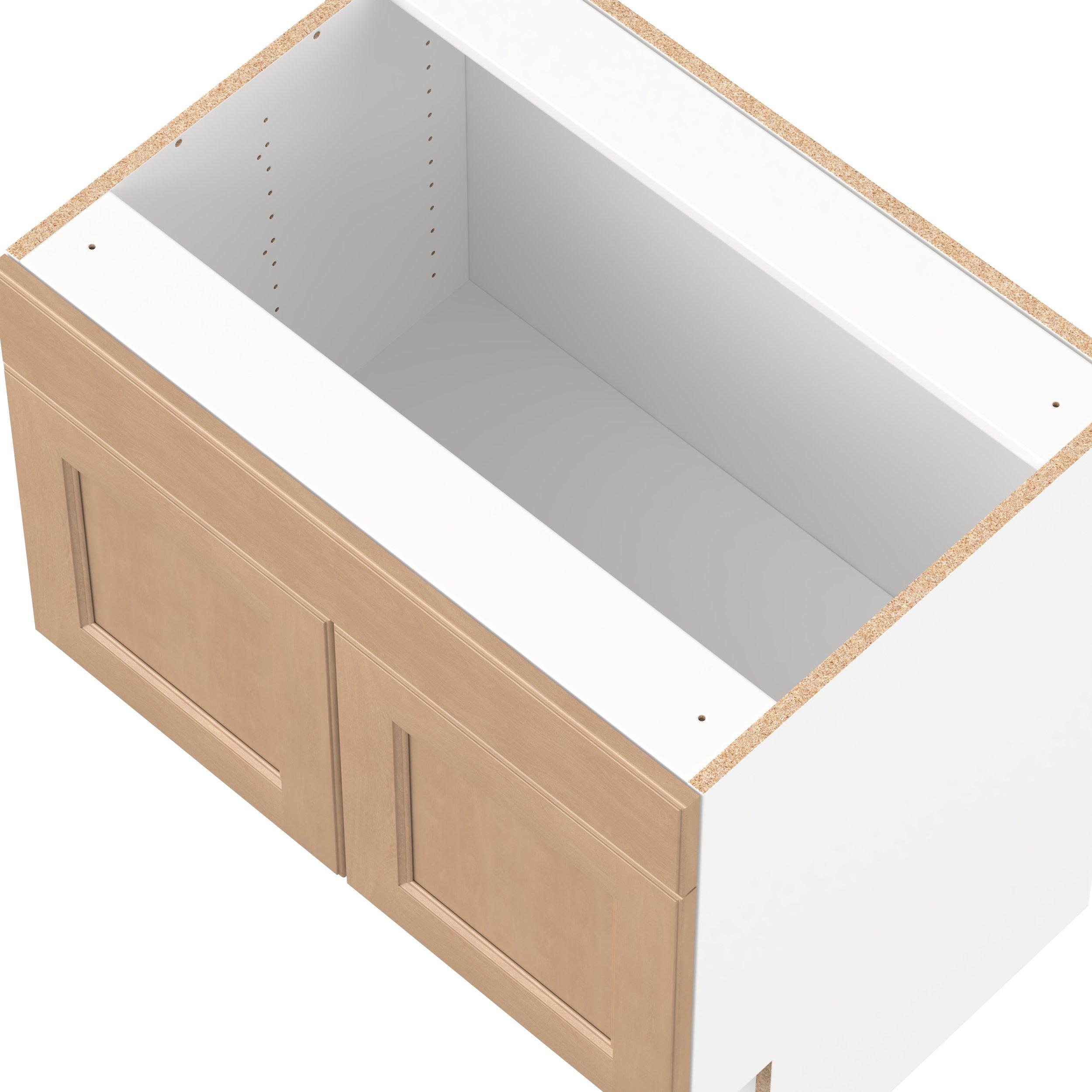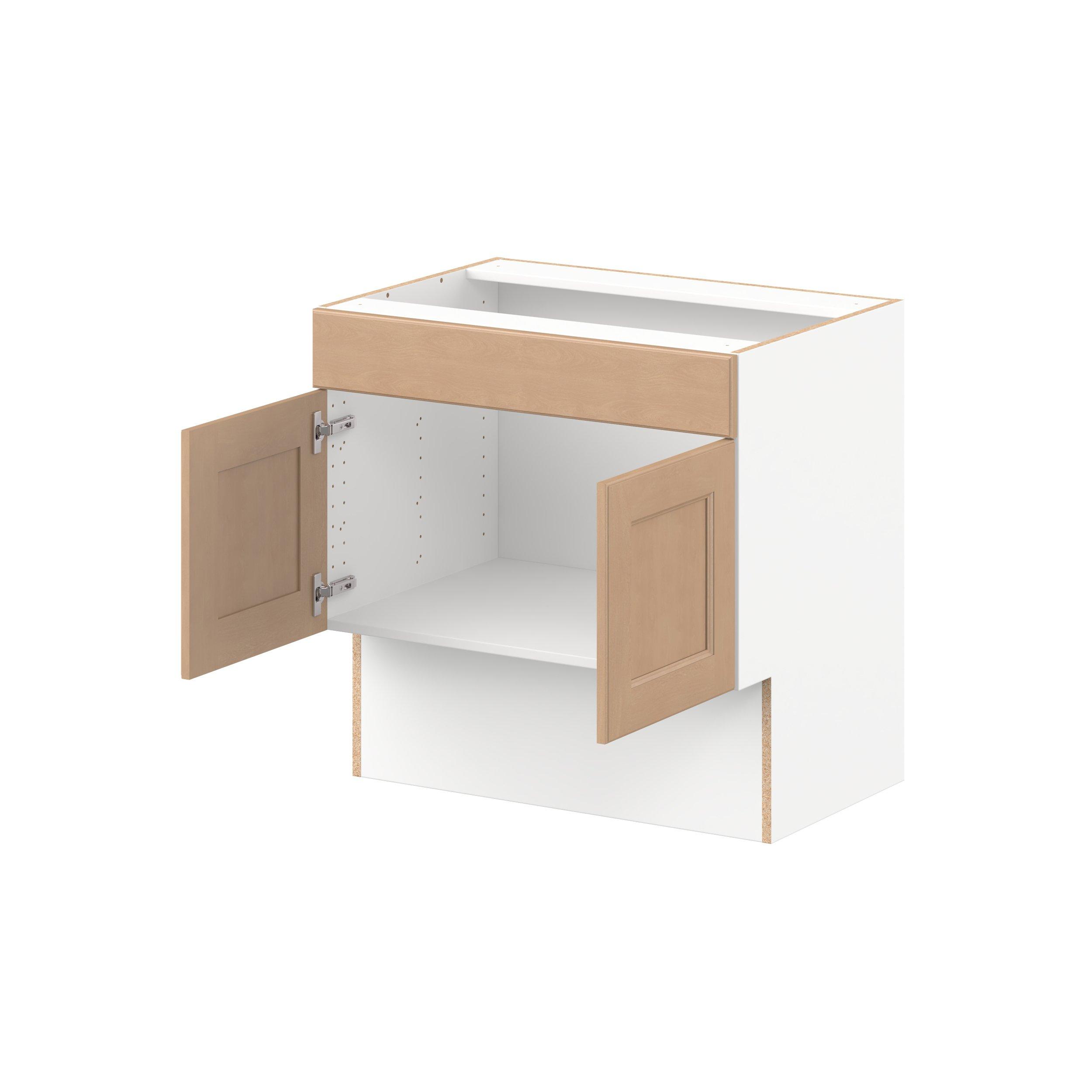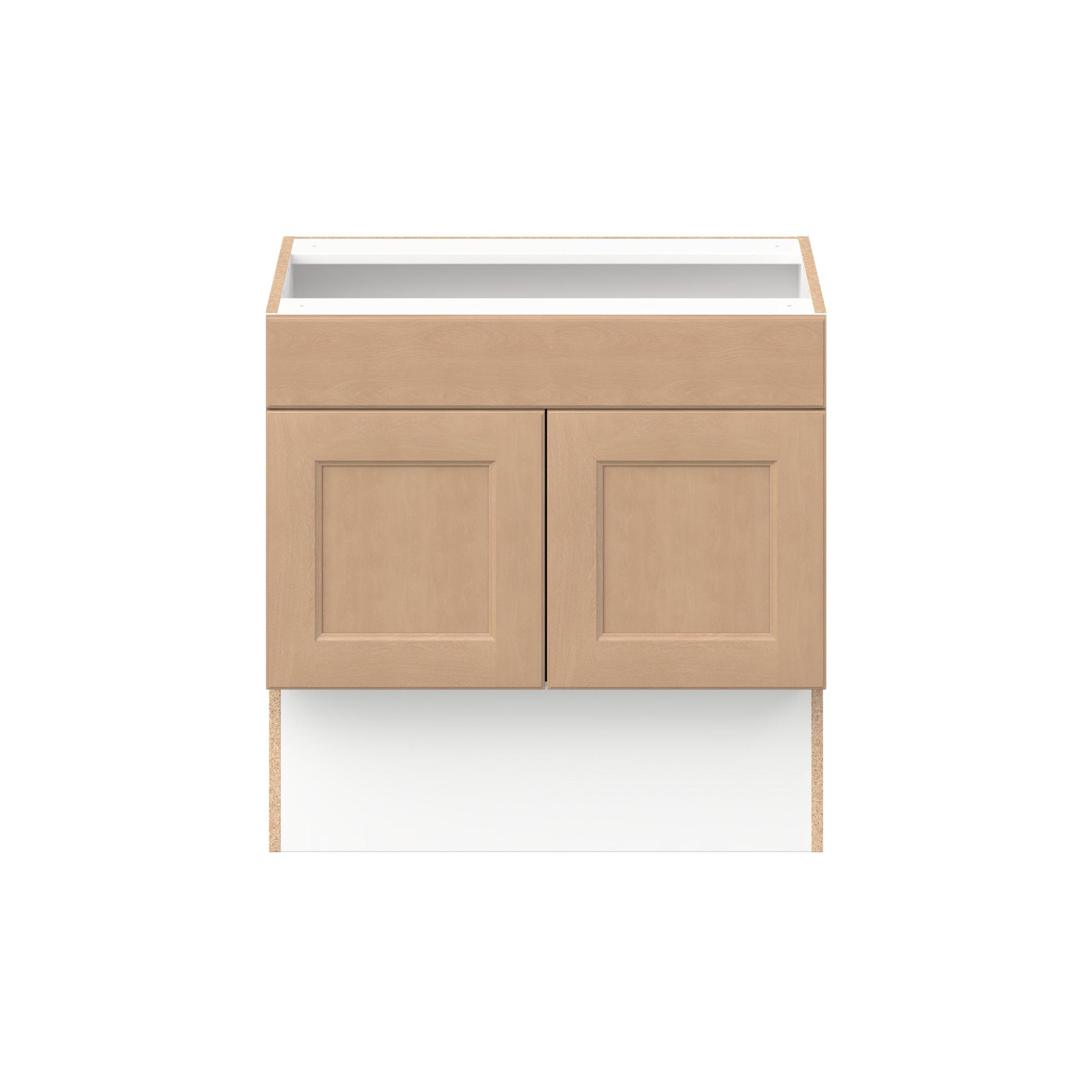 Experience the striking beauty of Sugarhill wide-rail shaker-inspired cabinets. Available in a warm and light sugar cookie finish, this collection will add warmth and lasting elegance to any space. Crafted from one-piece MDF Studio Design Collection Sugarhill 30 in. Stained Sugar Cookie Vanity Sink Base Cabinet with False Front is designed to resist hairline cracks while the easy-to-clean finish stands up to stains and moisture. Featuring 5-piece doors and dovetail drawer joints, these cabinets offer durability and elegance. This collection combines style with everyday storage solutions.