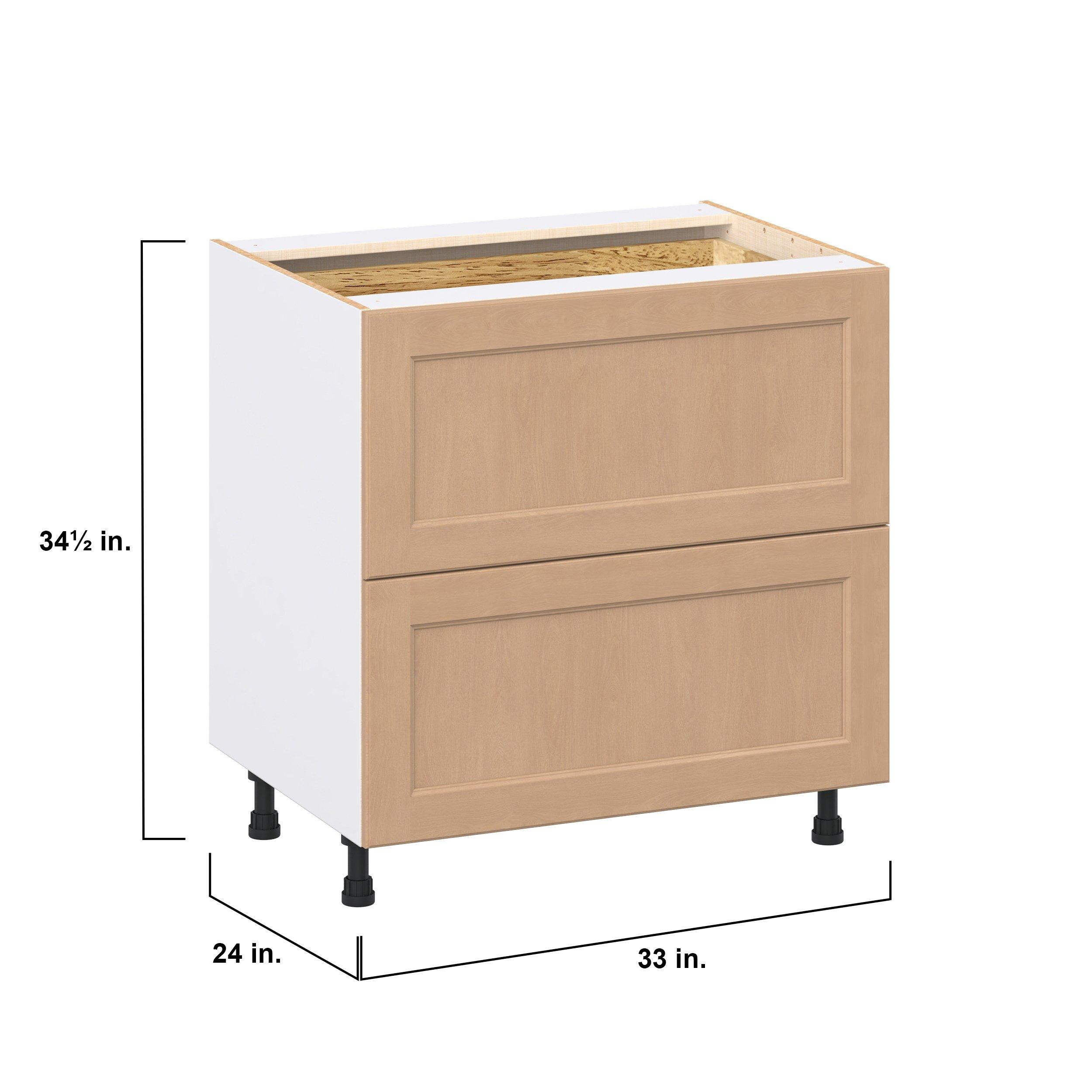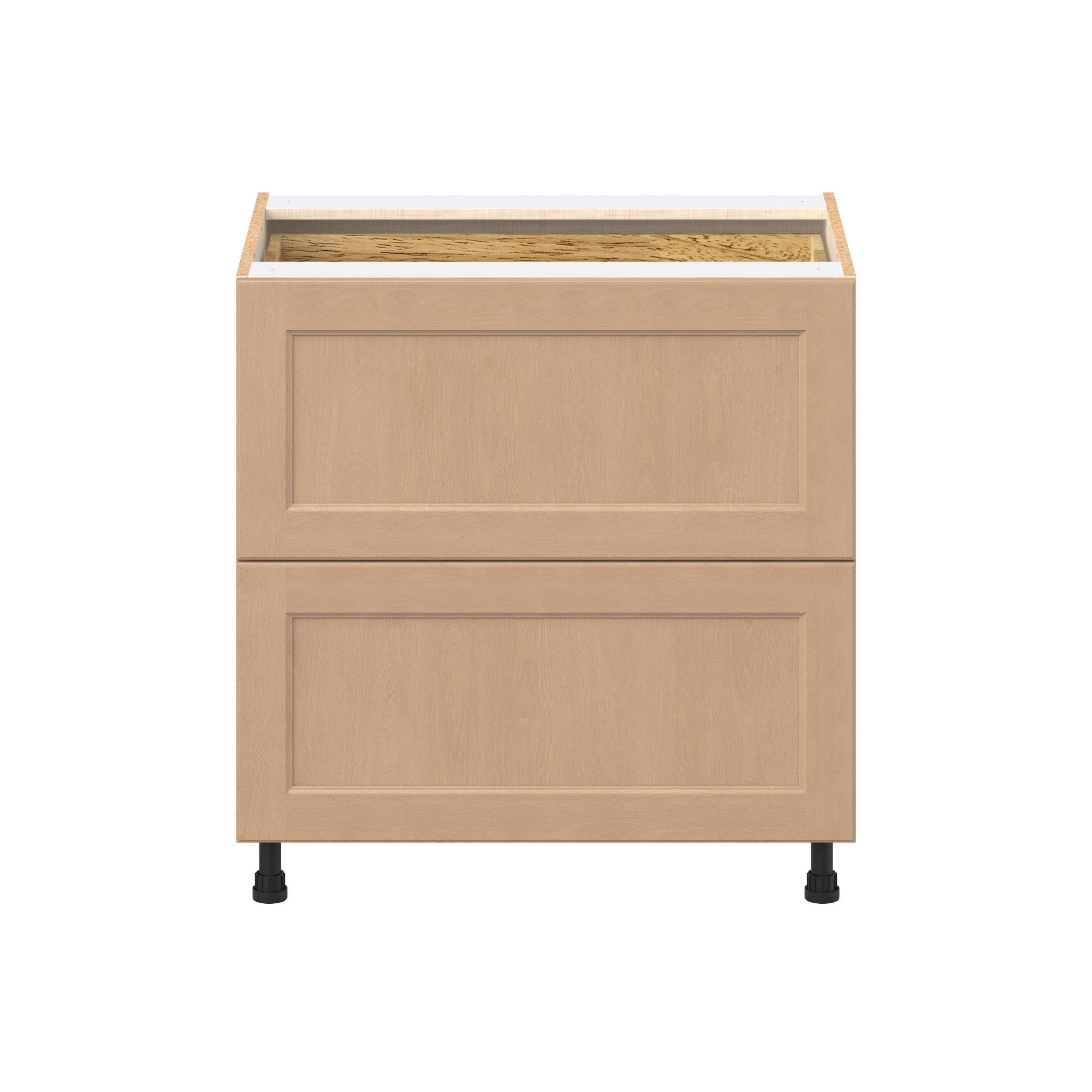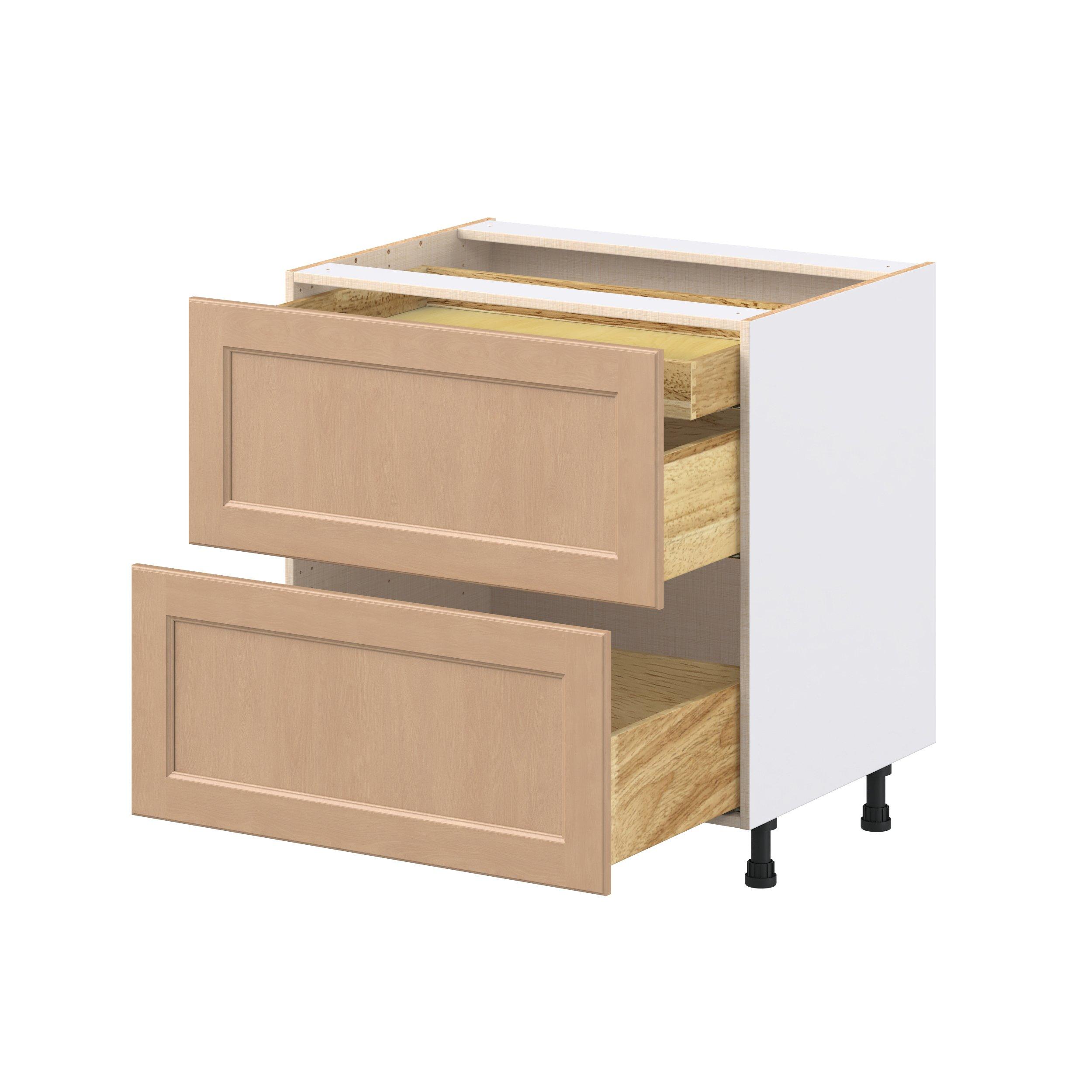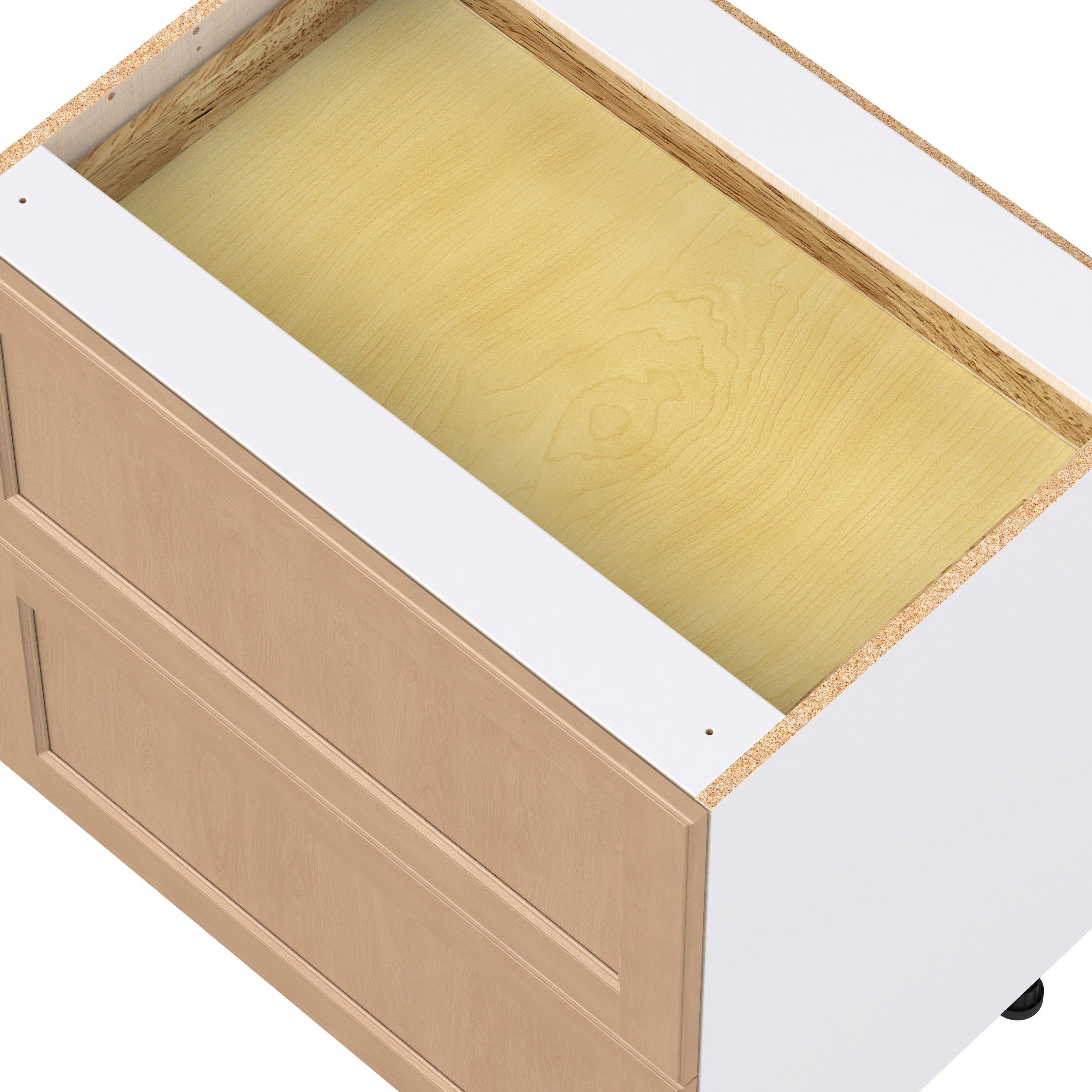 Experience the striking beauty of Sugarhill wide-rail shaker-inspired cabinets. Available in a warm and light sugar cookie finish, this collection will add warmth and lasting elegance to any space. Crafted from one-piece MDF Studio Design Collection Sugarhill 33 in. Stained Sugar Cookie Base Cabinet with Inner Pull-Out Drawer is designed to resist hairline cracks while the easy-to-clean finish stands up to stains and moisture. Featuring 5-piece doors and dovetail drawer joints, these cabinets offer durability and elegance. This collection combines style with everyday storage solutions.