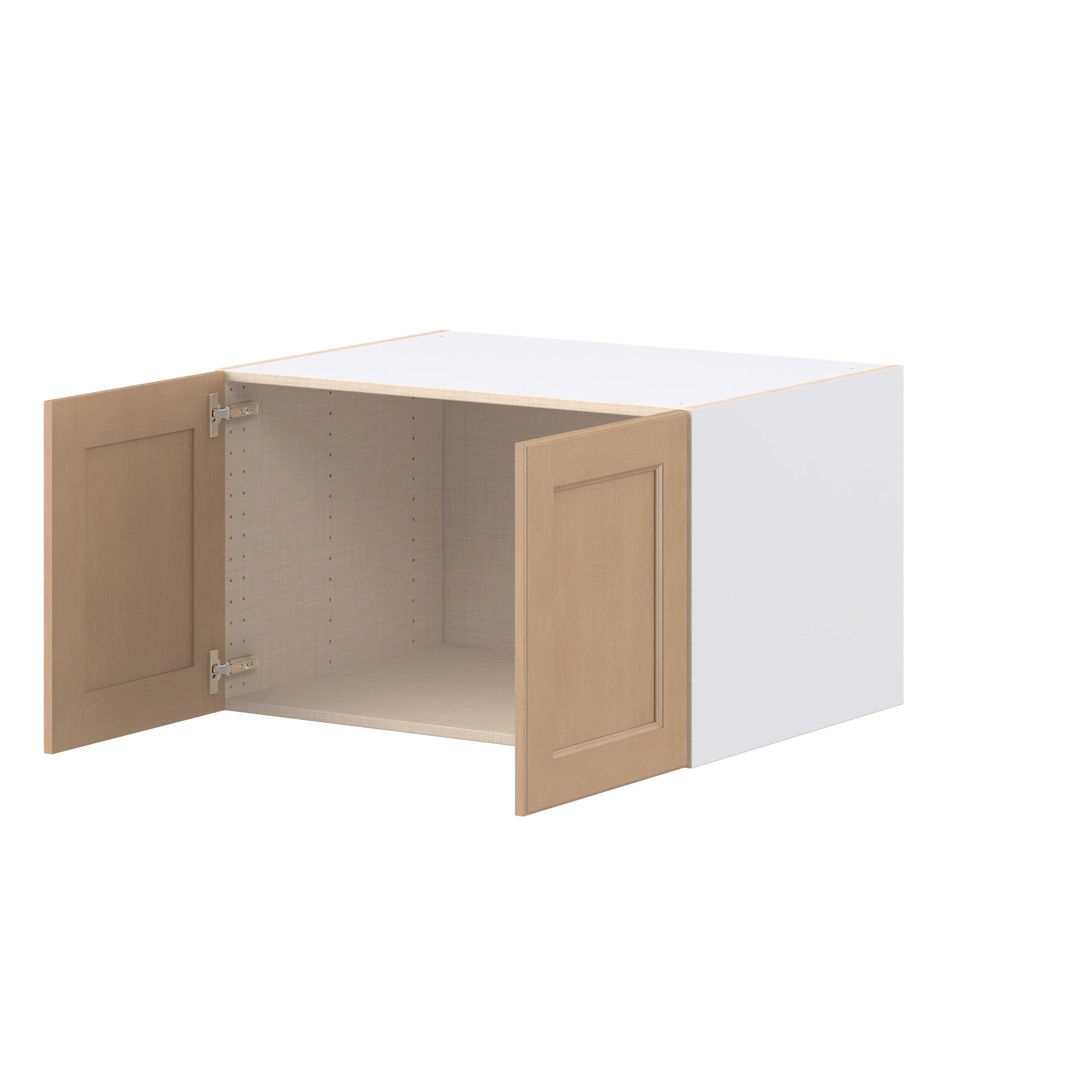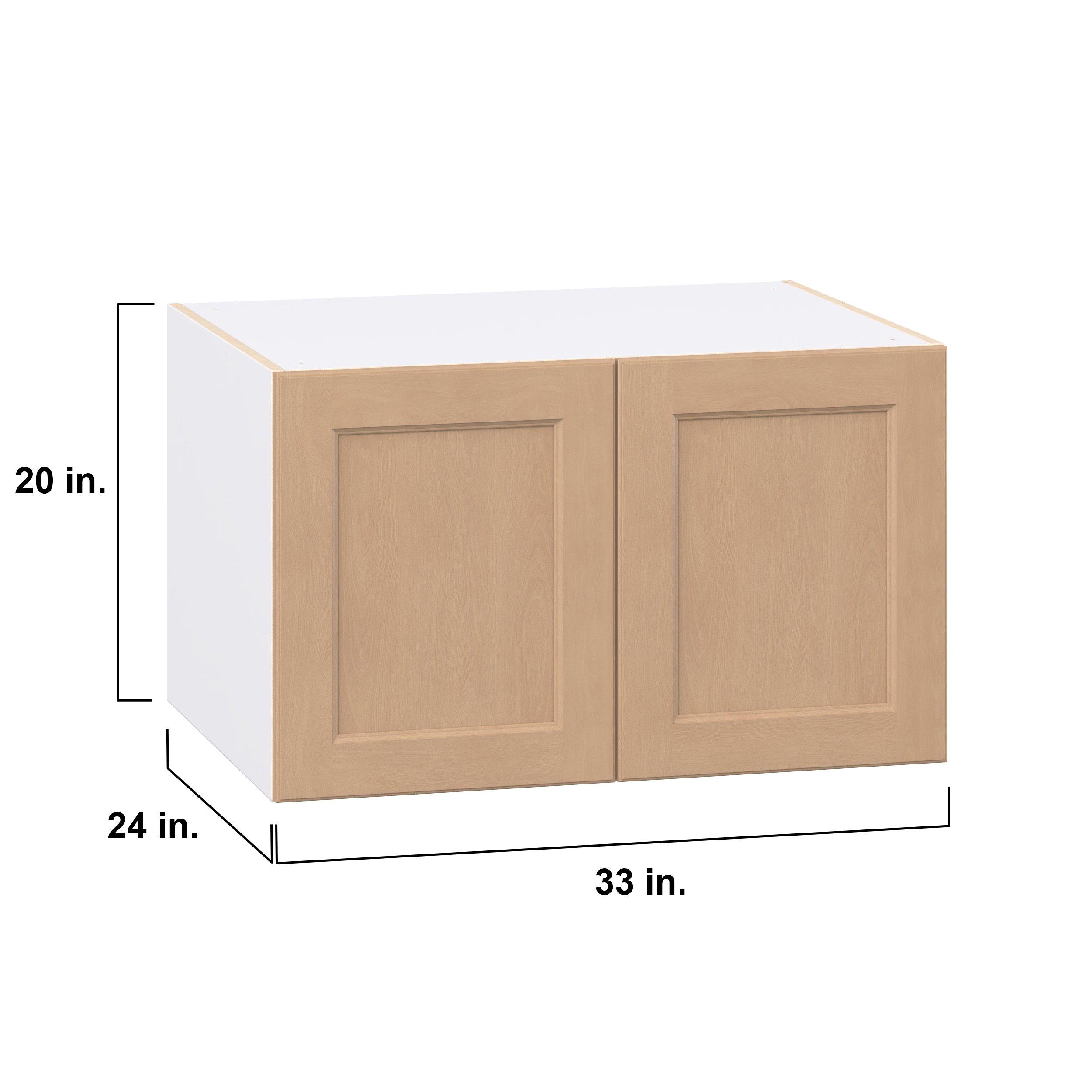 Experience the striking beauty of Sugarhill wide-rail shaker-inspired cabinets. Available in a warm and light sugar cookie finish, this collection will add warmth and lasting elegance to any space. Crafted from one-piece MDF Studio Design Collection Sugarhill 33 in. Stained Sugar Cookie Bridge Wall Cabinet is designed to resist hairline cracks while the easy-to-clean finish stands up to stains and moisture. Featuring 5-piece doors and dovetail drawer joints, these cabinets offer durability and elegance. This collection combines style with everyday storage solutions.