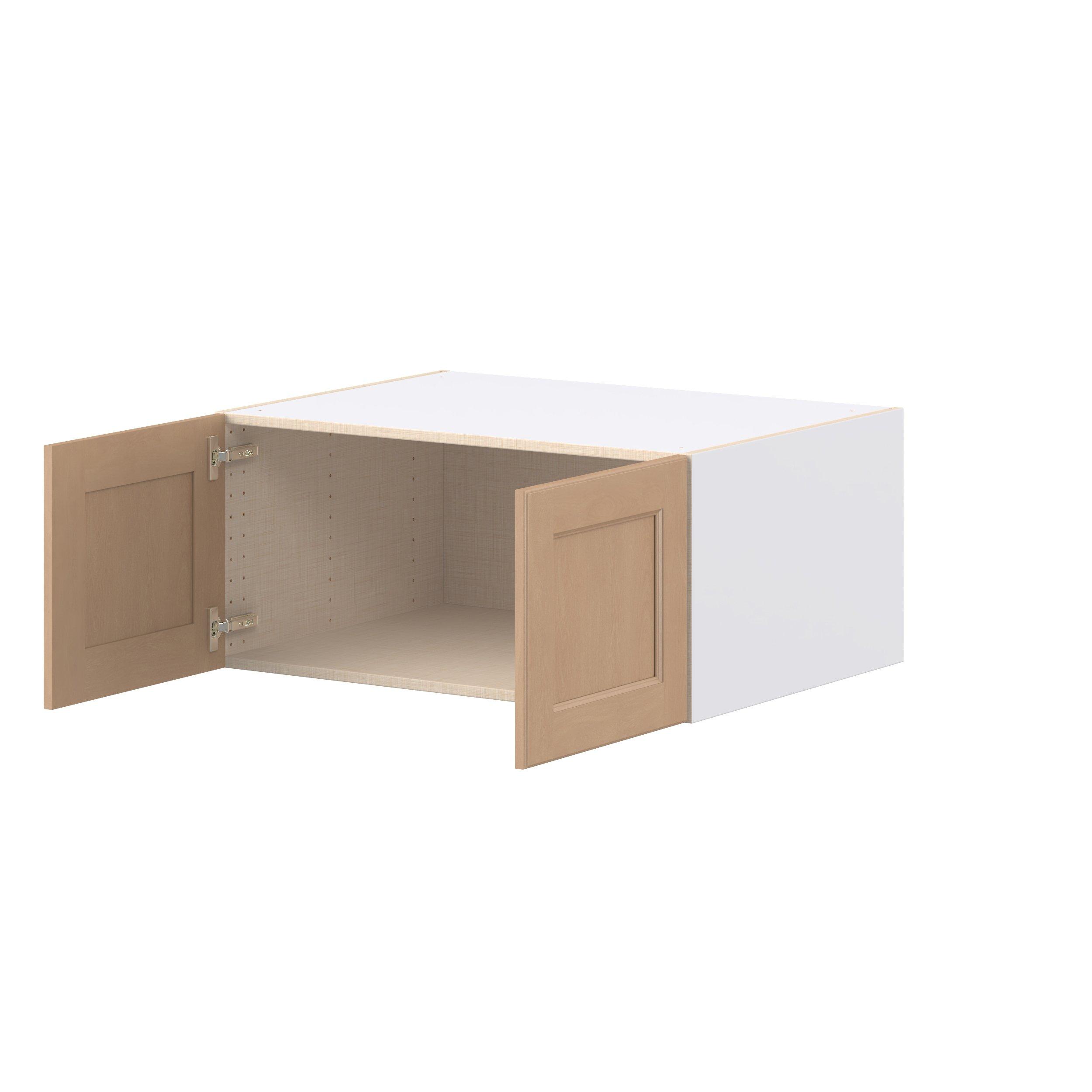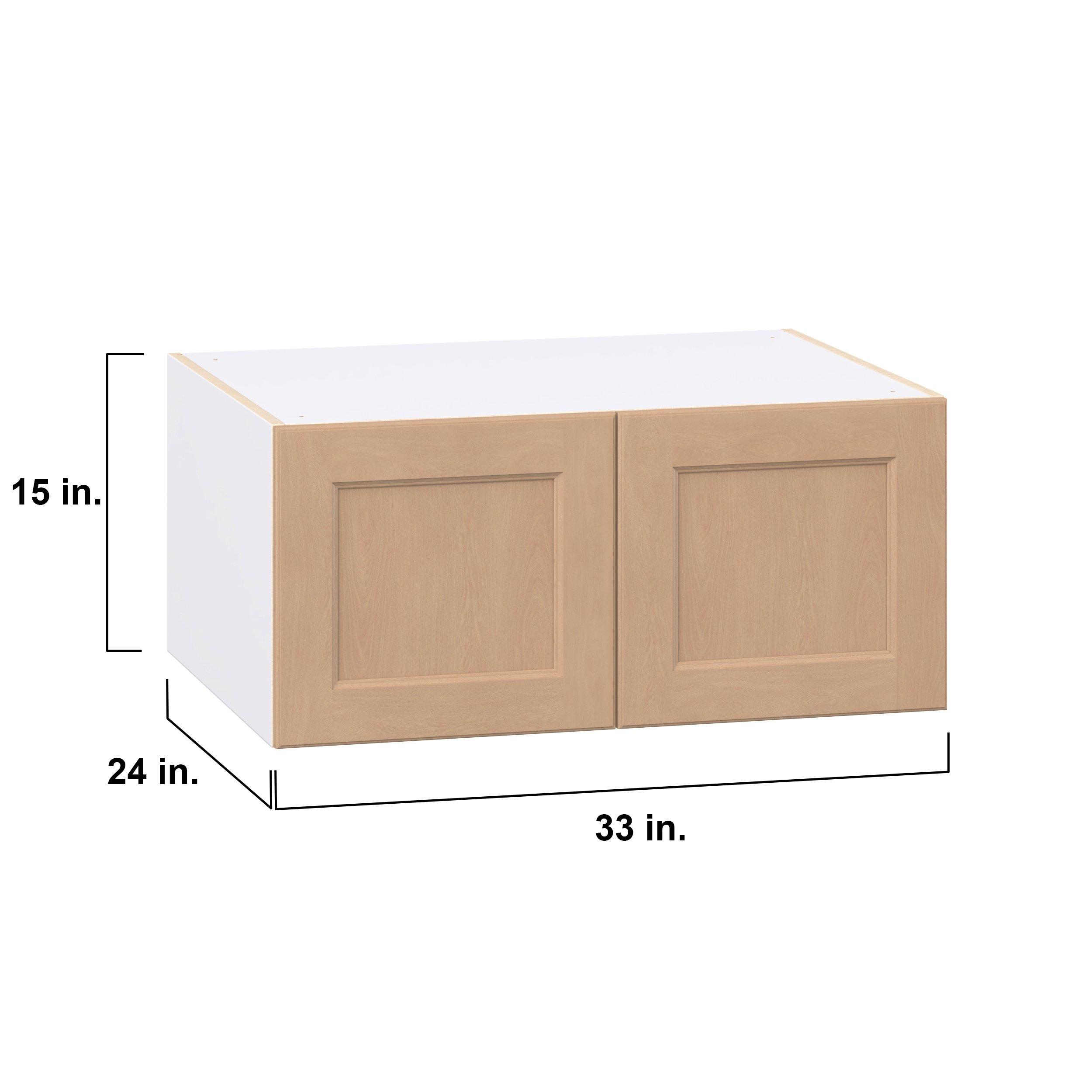 Experience the striking beauty of Sugarhill wide-rail shaker-inspired cabinets. Available in a warm and light sugar cookie finish, this collection will add warmth and lasting elegance to any space. Crafted from one-piece MDF Studio Design Collection Sugarhill 33 in. Stained Sugar Cookie Bridge Wall Cabinet is designed to resist hairline cracks while the easy-to-clean finish stands up to stains and moisture. Featuring 5-piece doors and dovetail drawer joints, these cabinets offer durability and elegance. This collection combines style with everyday storage solutions.