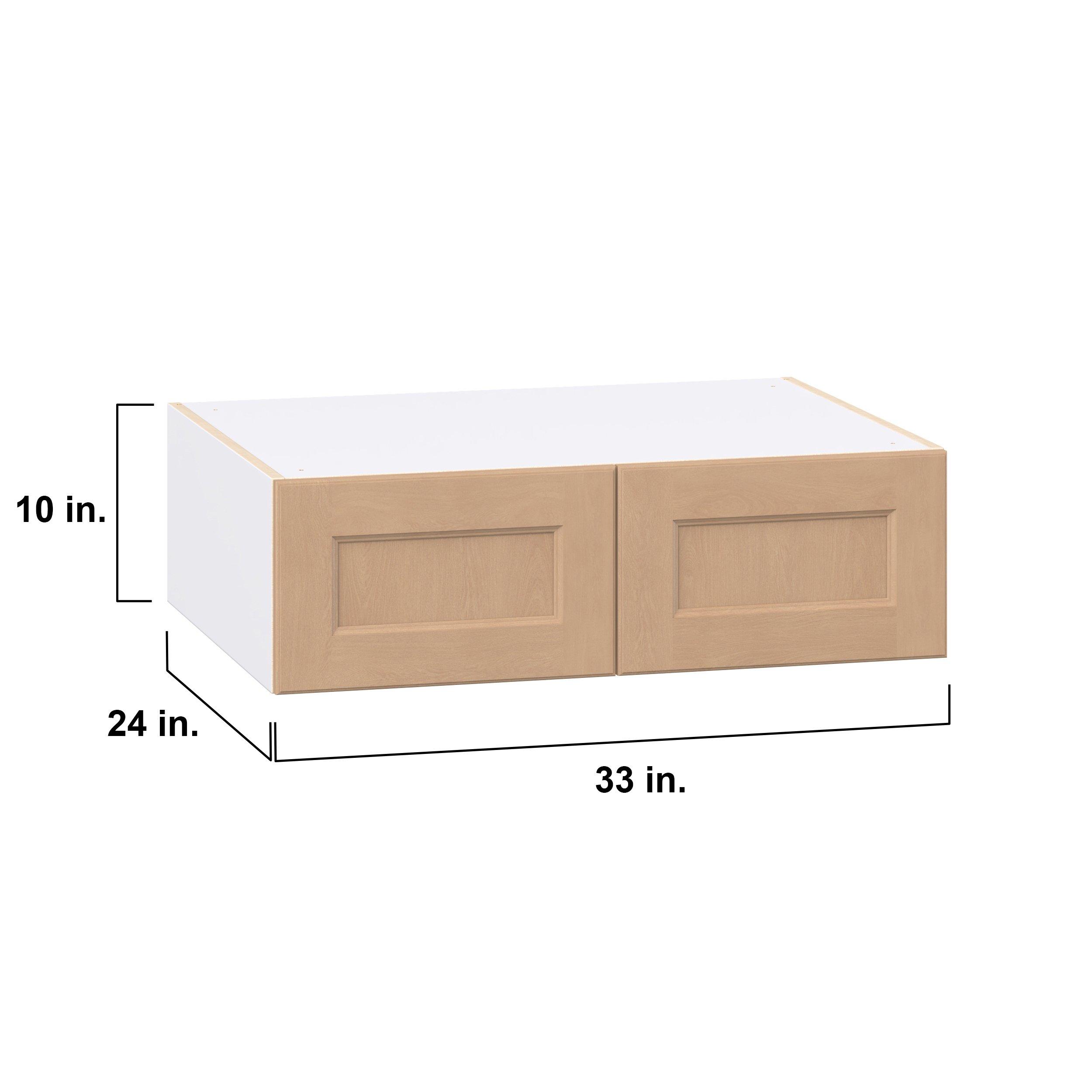 Experience the striking beauty of Sugarhill wide-rail shaker-inspired cabinets. Available in a warm and light sugar cookie finish, this collection will add warmth and lasting elegance to any space. Crafted from one-piece MDF Studio Design Collection Sugarhill 33 in. Stained Sugar Cookie Bridge Wall Cabinet is designed to resist hairline cracks while the easy-to-clean finish stands up to stains and moisture. Featuring 5-piece doors and dovetail drawer joints, these cabinets offer durability and elegance. This collection combines style with everyday storage solutions.