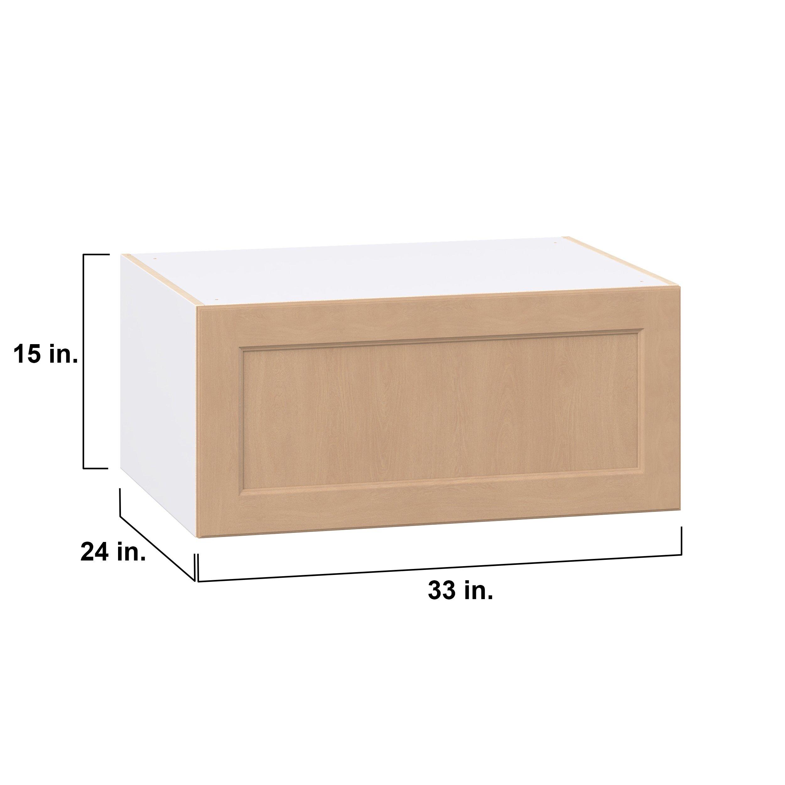 Experience the striking beauty of Sugarhill wide-rail shaker-inspired cabinets. Available in a warm and light sugar cookie finish, this collection will add warmth and lasting elegance to any space. Crafted from one-piece MDF Studio Design Collection Sugarhill 33 in. Stained Sugar Cookie Lift Up Wall Cabinet is designed to resist hairline cracks while the easy-to-clean finish stands up to stains and moisture. Featuring 5-piece doors and dovetail drawer joints, these cabinets offer durability and elegance. This collection combines style with everyday storage solutions.
