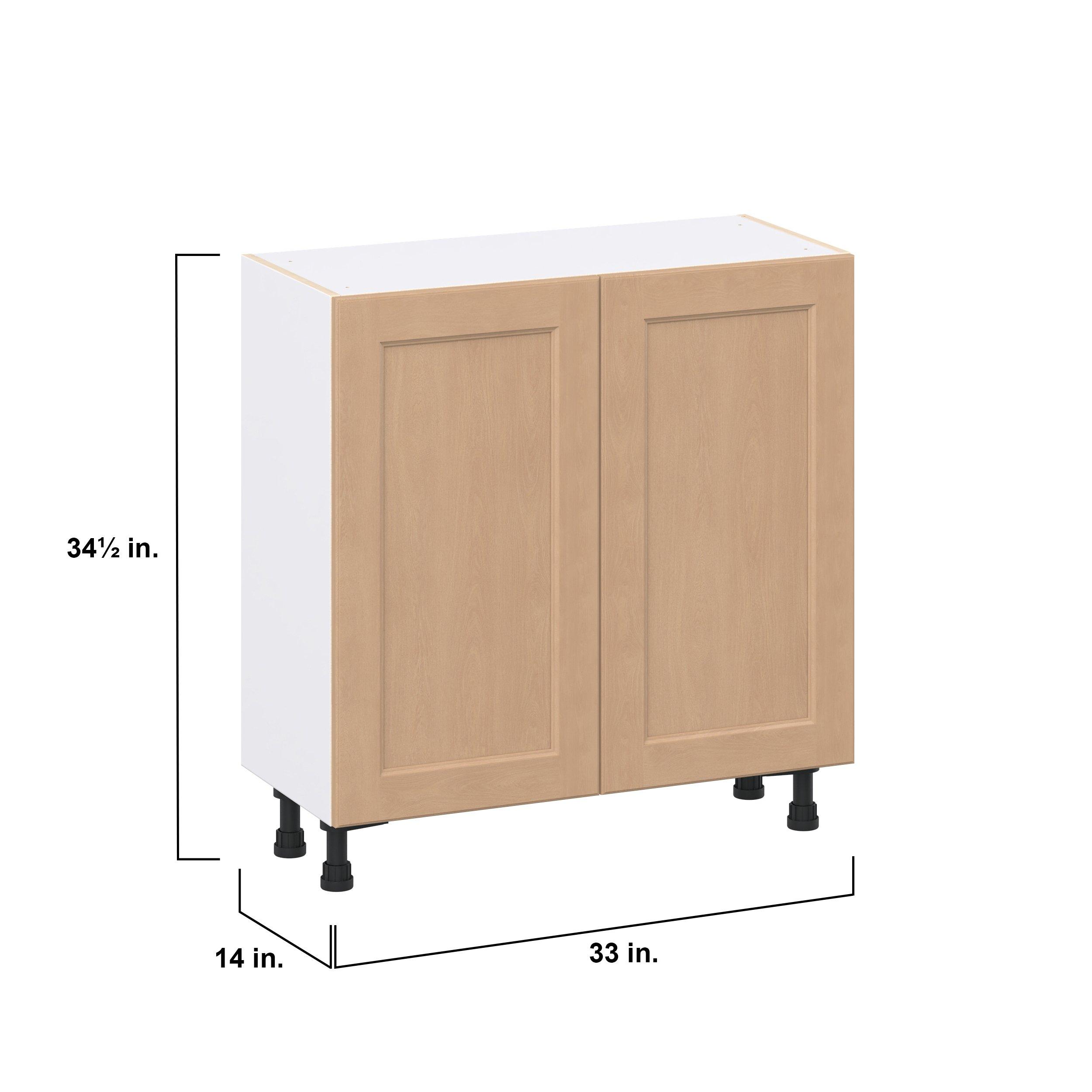 Experience the striking beauty of Sugarhill wide-rail shaker-inspired cabinets. Available in a warm and light sugar cookie finish, this collection will add warmth and lasting elegance to any space. Crafted from one-piece MDF Studio Design Collection Sugarhill 33 in. Stained Sugar Cookie Shallow Base Cabinet is designed to resist hairline cracks while the easy-to-clean finish stands up to stains and moisture. Featuring 5-piece doors and dovetail drawer joints, these cabinets offer durability and elegance. This collection combines style with everyday storage solutions.