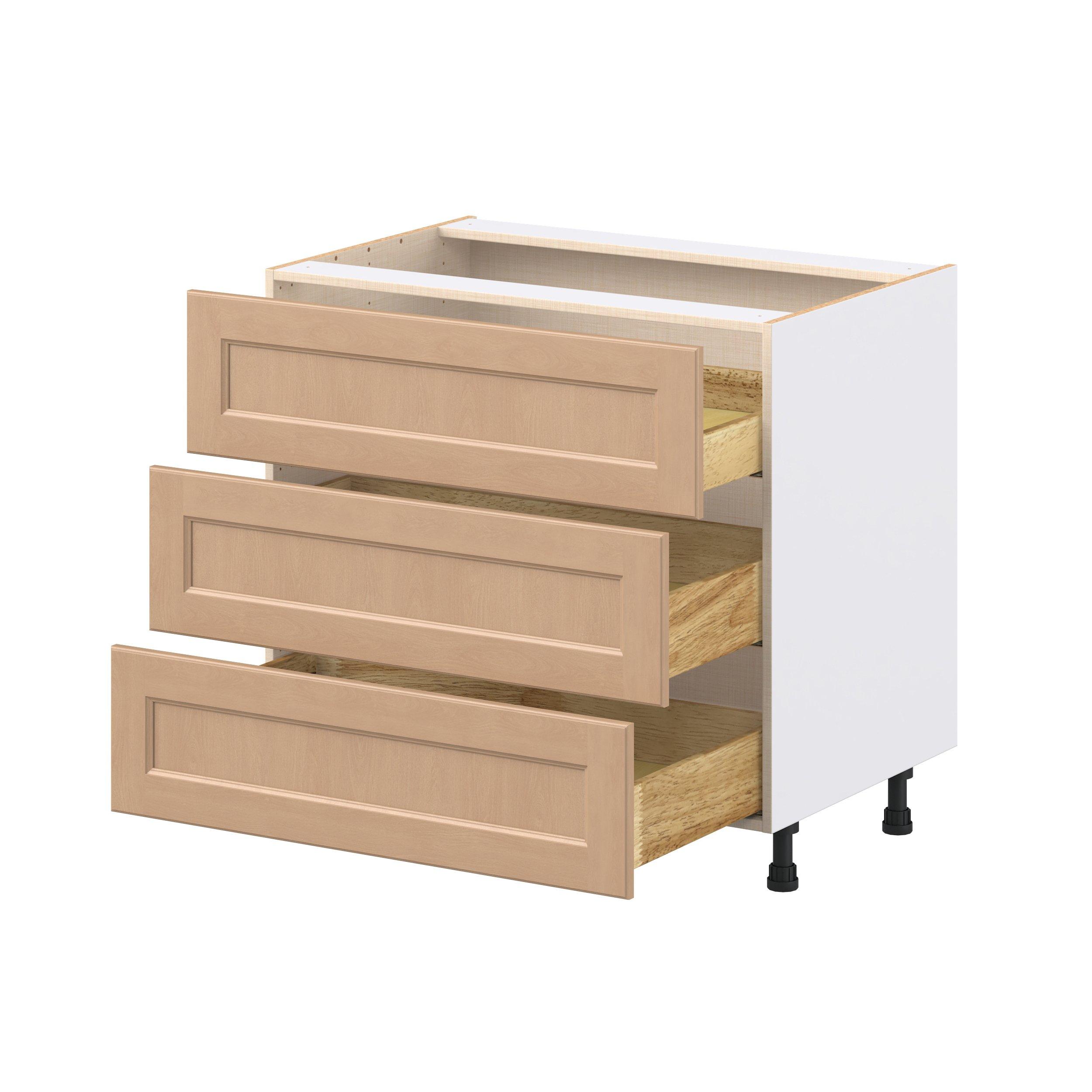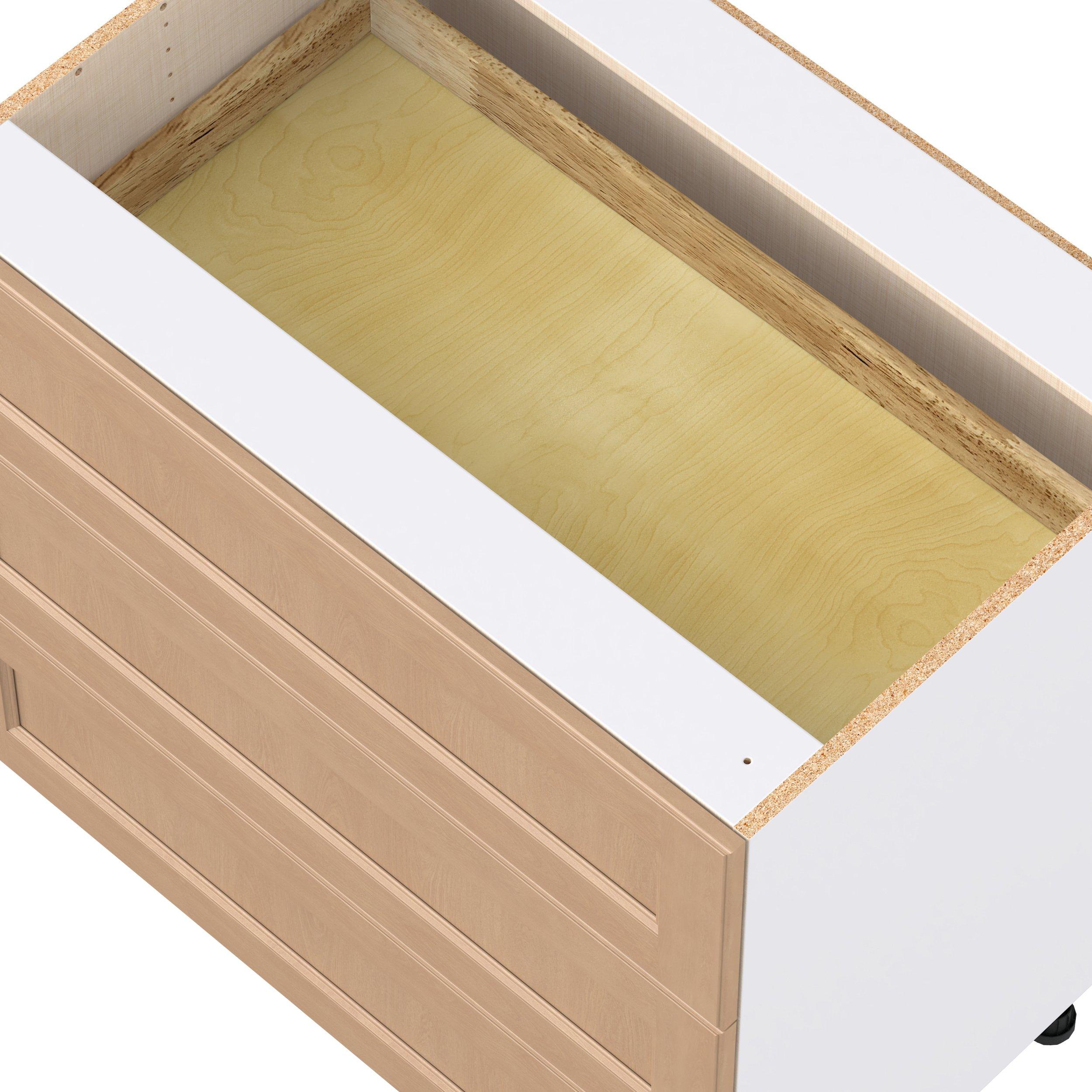 Experience the striking beauty of Sugarhill wide-rail shaker-inspired cabinets. Available in a warm and light sugar cookie finish, this collection will add warmth and lasting elegance to any space. Crafted from one-piece MDF Studio Design Collection Sugarhill 36 in. Stained Sugar Cookie Cooktop Base Cabinet is designed to resist hairline cracks while the easy-to-clean finish stands up to stains and moisture. Featuring 5-piece doors and dovetail drawer joints, these cabinets offer durability and elegance. This collection combines style with everyday storage solutions.