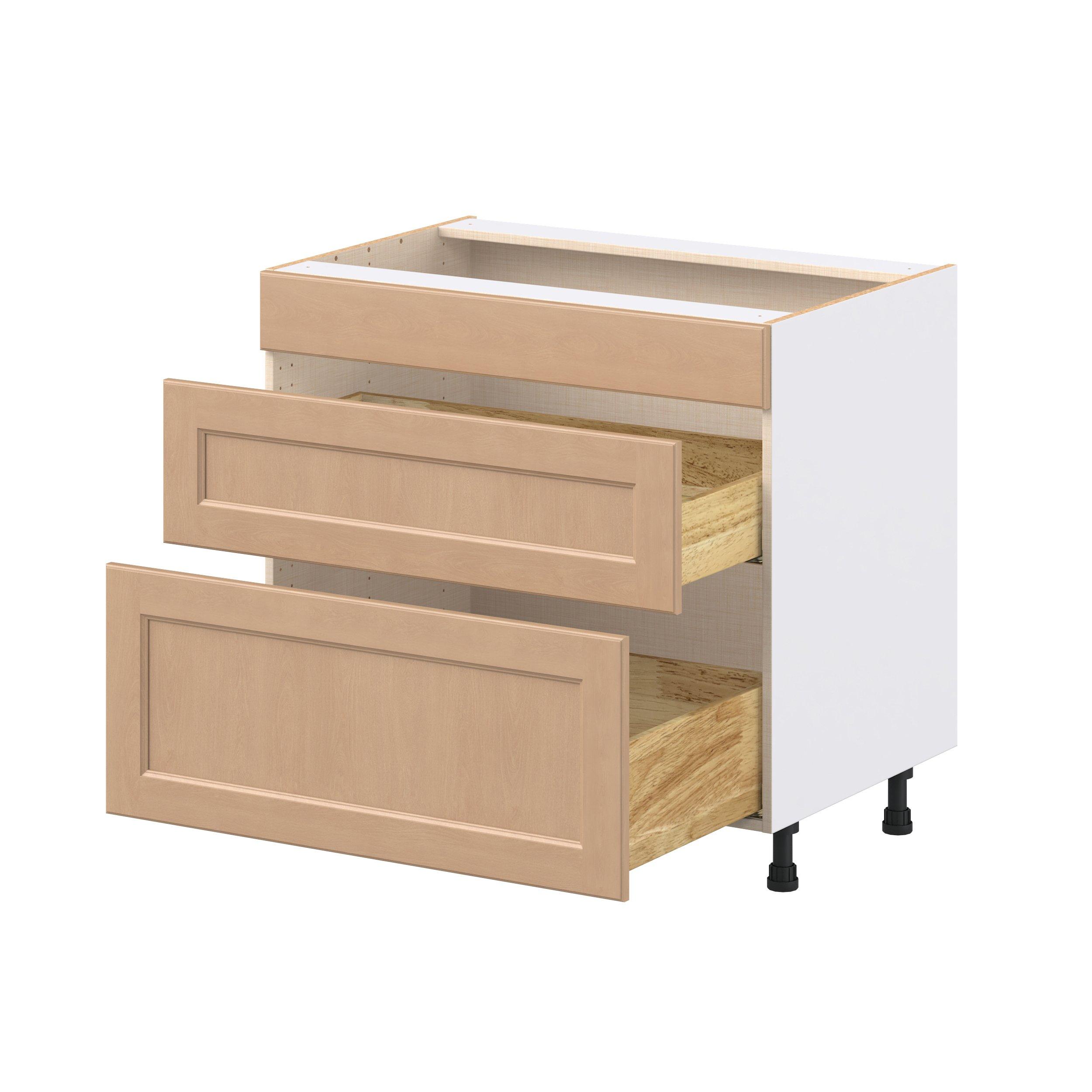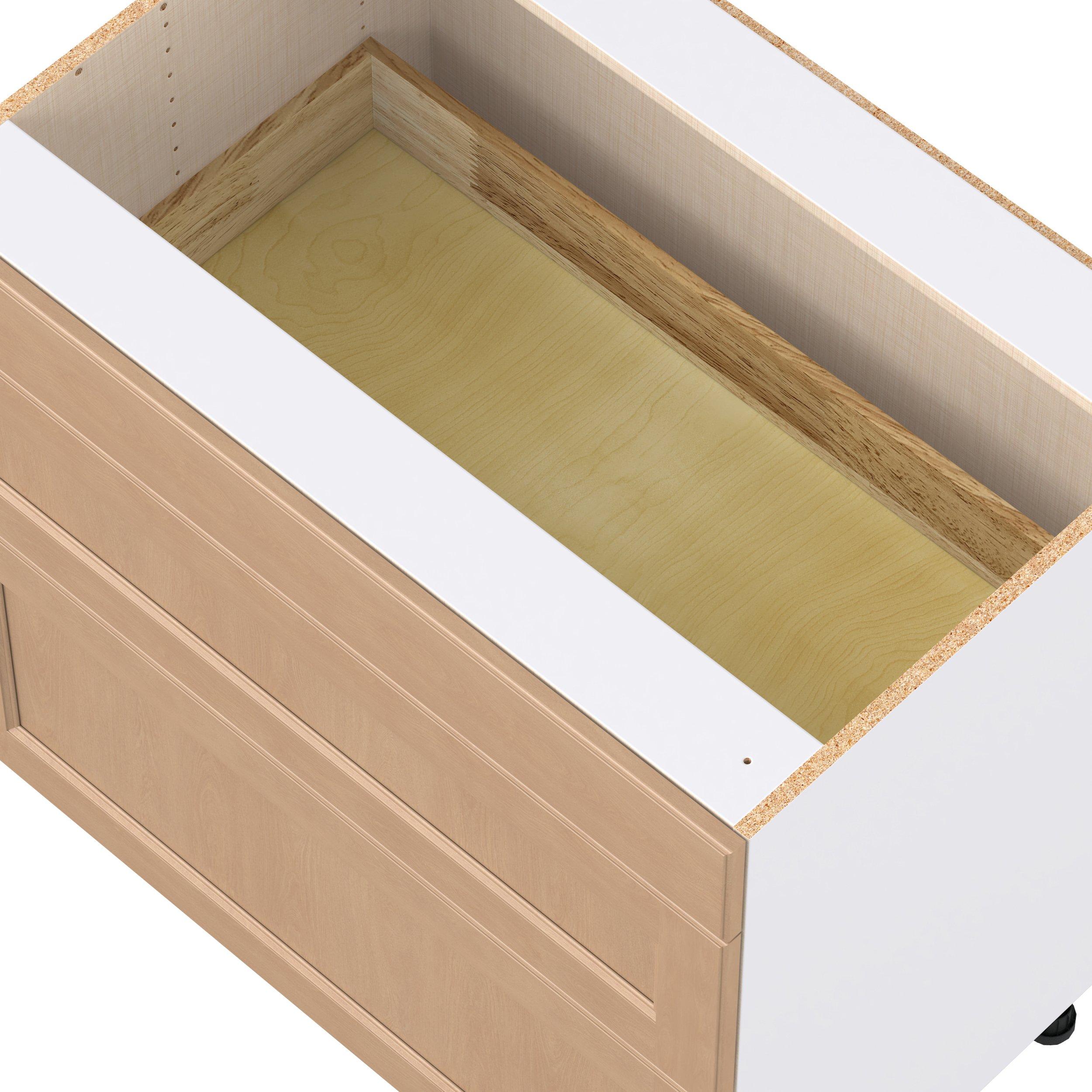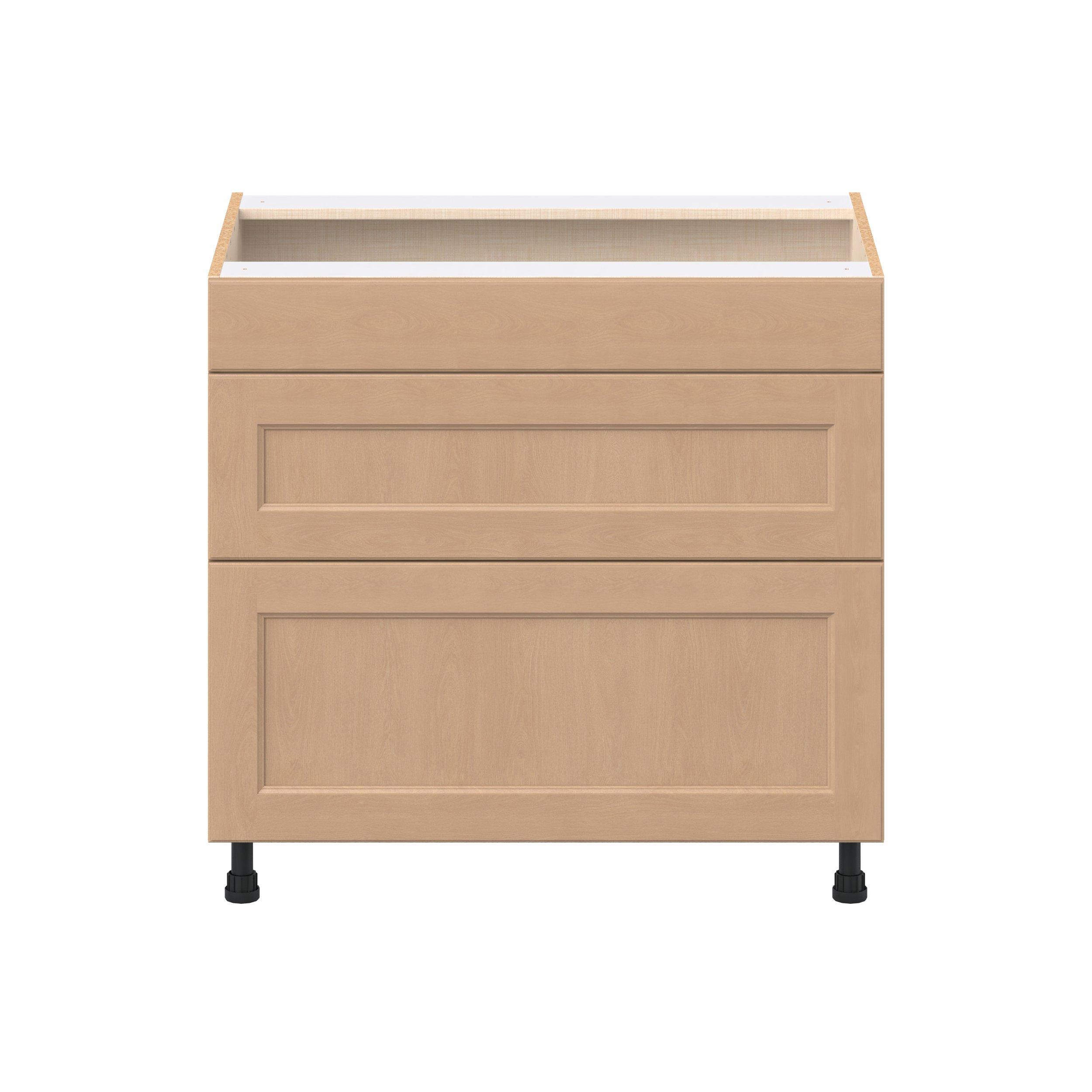 Experience the striking beauty of Sugarhill wide-rail shaker-inspired cabinets. Available in a warm and light sugar cookie finish, this collection will add warmth and lasting elegance to any space. Crafted from one-piece MDF Studio Design Collection Sugarhill 36 in. Stained Sugar Cookie Cooktop Base Cabinet is designed to resist hairline cracks while the easy-to-clean finish stands up to stains and moisture. Featuring 5-piece doors and dovetail drawer joints, these cabinets offer durability and elegance. This collection combines style with everyday storage solutions.