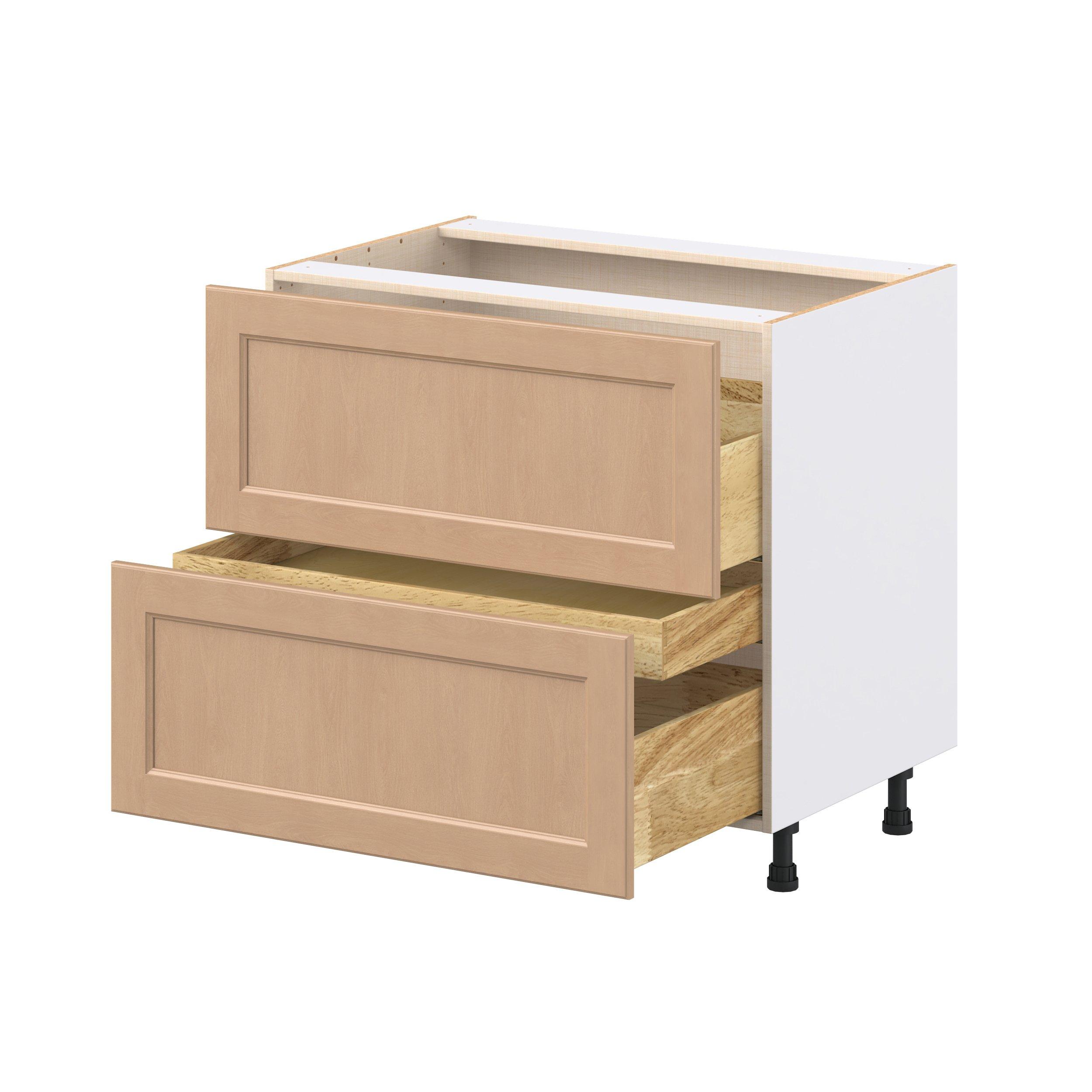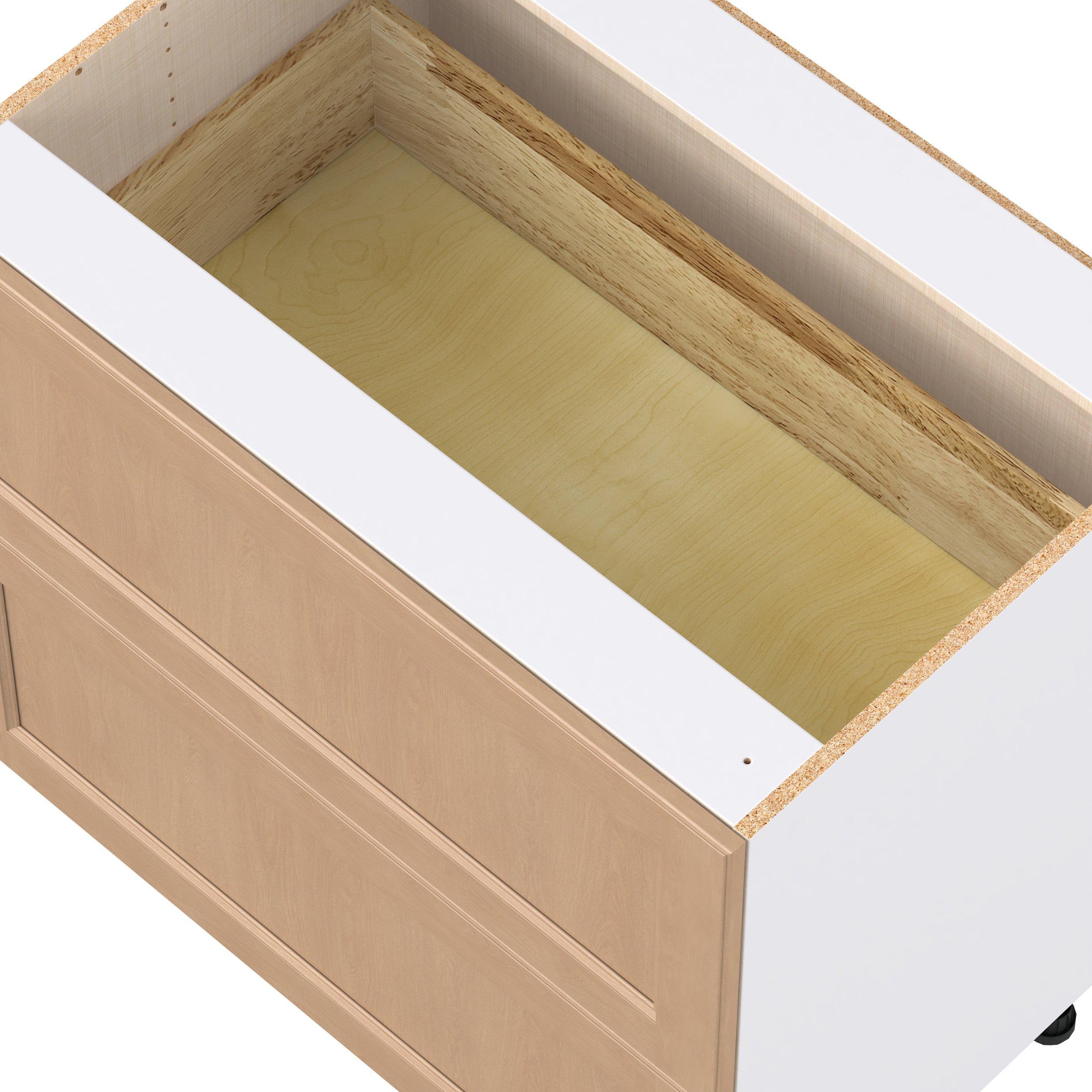Experience the striking beauty of Sugarhill wide-rail shaker-inspired cabinets. Available in a warm and light sugar cookie finish, this collection will add warmth and lasting elegance to any space. Crafted from one-piece MDF Studio Design Collection Sugarhill 36 in. Stained Sugar Cookie Cooktop Base Cabinet is designed to resist hairline cracks while the easy-to-clean finish stands up to stains and moisture. Featuring 5-piece doors and dovetail drawer joints, these cabinets offer durability and elegance. This collection combines style with everyday storage solutions.