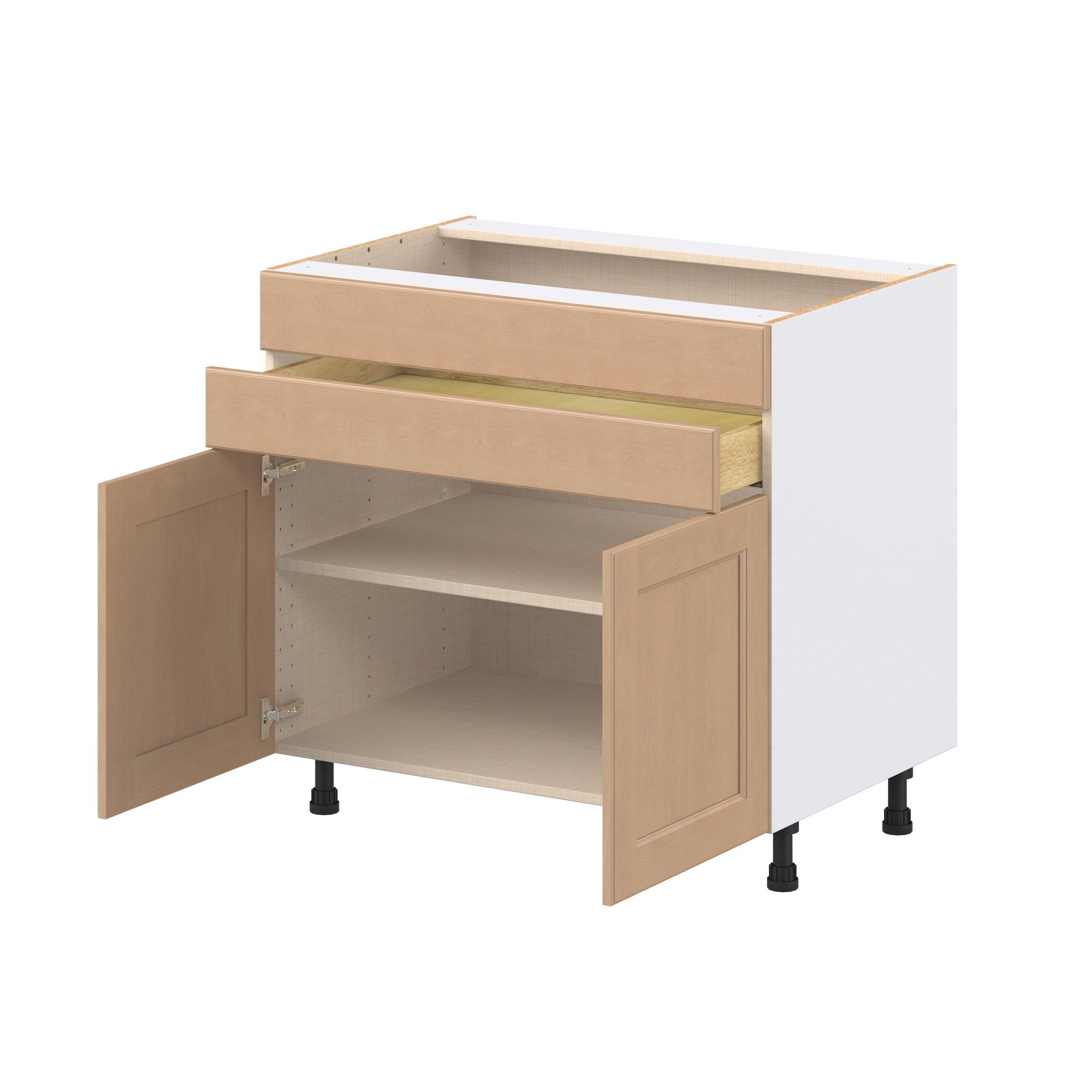 Experience the striking beauty of Sugarhill wide-rail shaker-inspired cabinets. Available in a warm and light sugar cookie finish, this collection will add warmth and lasting elegance to any space. Crafted from one-piece MDF Studio Design Collection Sugarhill 36 in. Stained Sugar Cookie Cooktop Base Cabinet is designed to resist hairline cracks while the easy-to-clean finish stands up to stains and moisture. Featuring 5-piece doors and dovetail drawer joints, these cabinets offer durability and elegance. This collection combines style with everyday storage solutions.