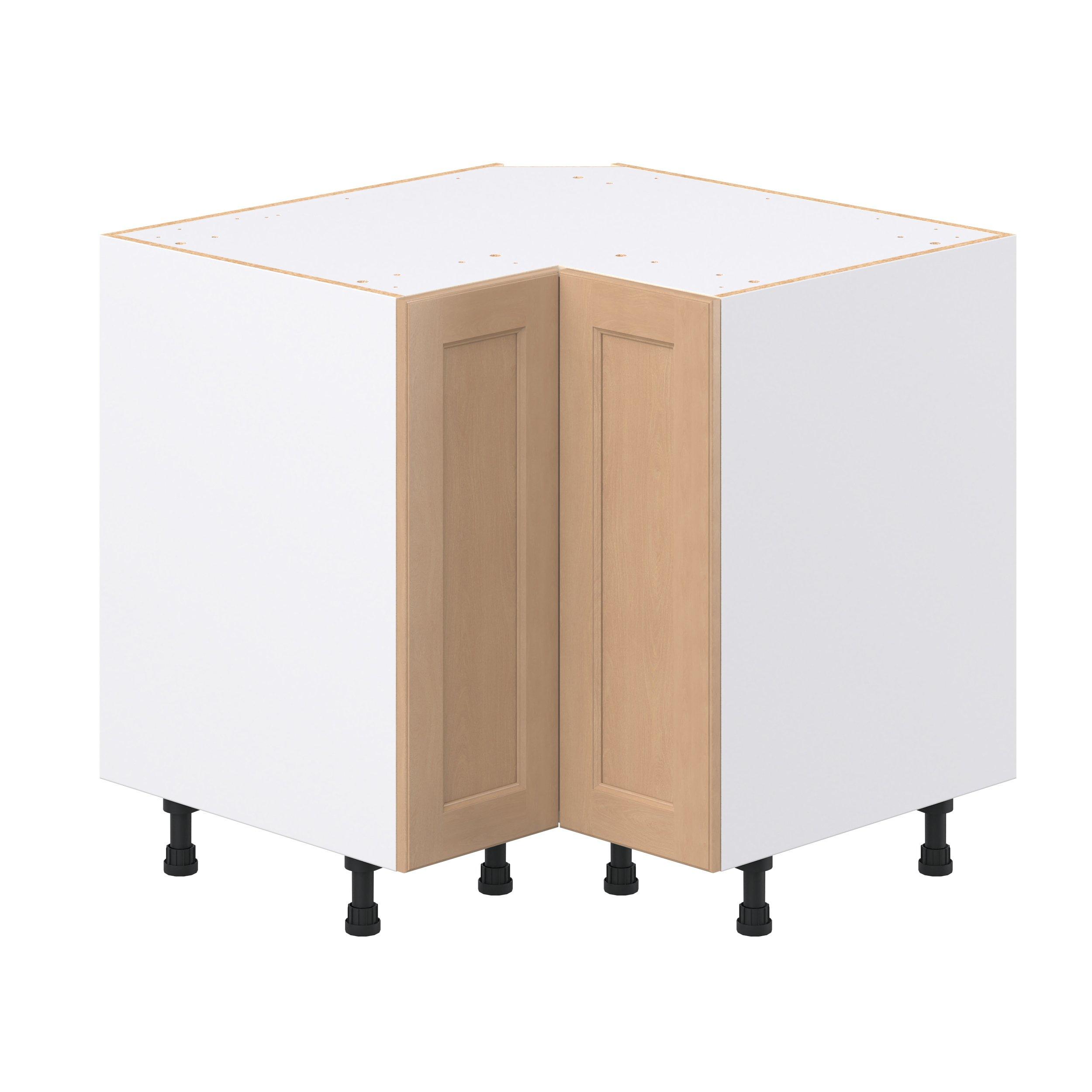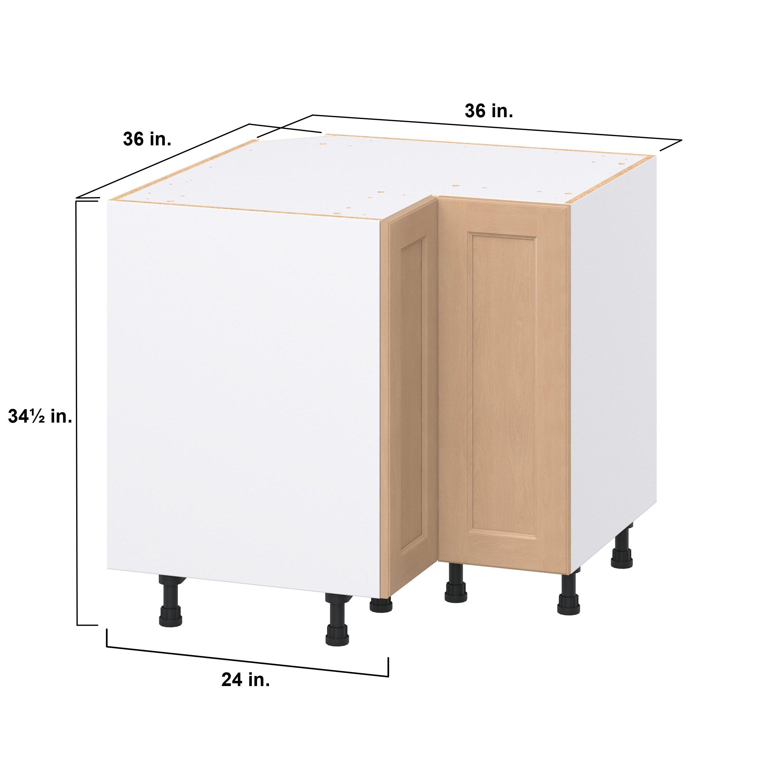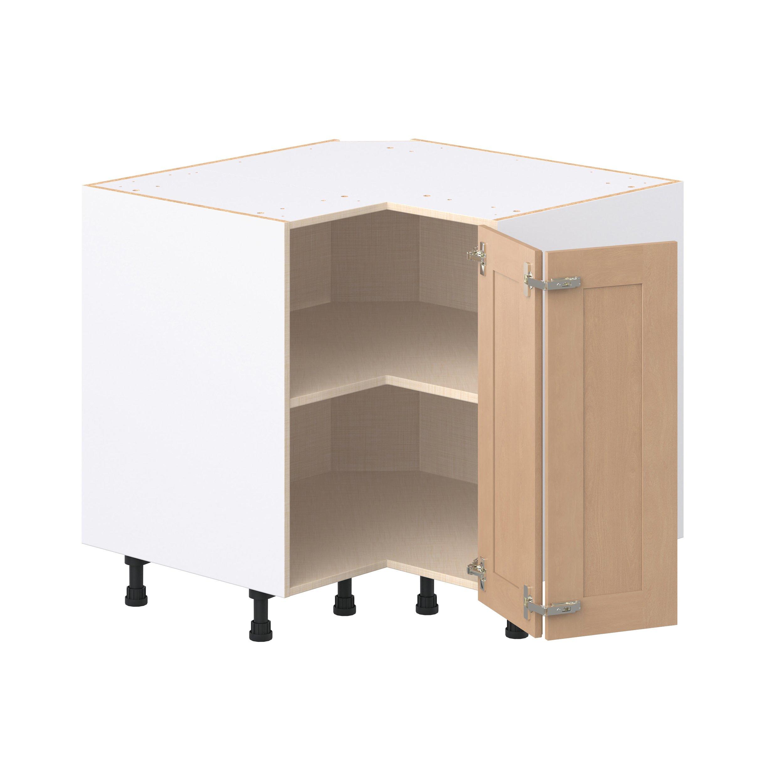 Experience the striking beauty of Sugarhill wide-rail shaker-inspired cabinets. Available in a warm and light sugar cookie finish, this collection will add warmth and lasting elegance to any space. Crafted from one-piece MDF Studio Design Collection Sugarhill 36 in. Stained Sugar Cookie Corner Base Cabinet is designed to resist hairline cracks while the easy-to-clean finish stands up to stains and moisture. Featuring 5-piece doors and dovetail drawer joints, these cabinets offer durability and elegance. This collection combines style with everyday storage solutions.