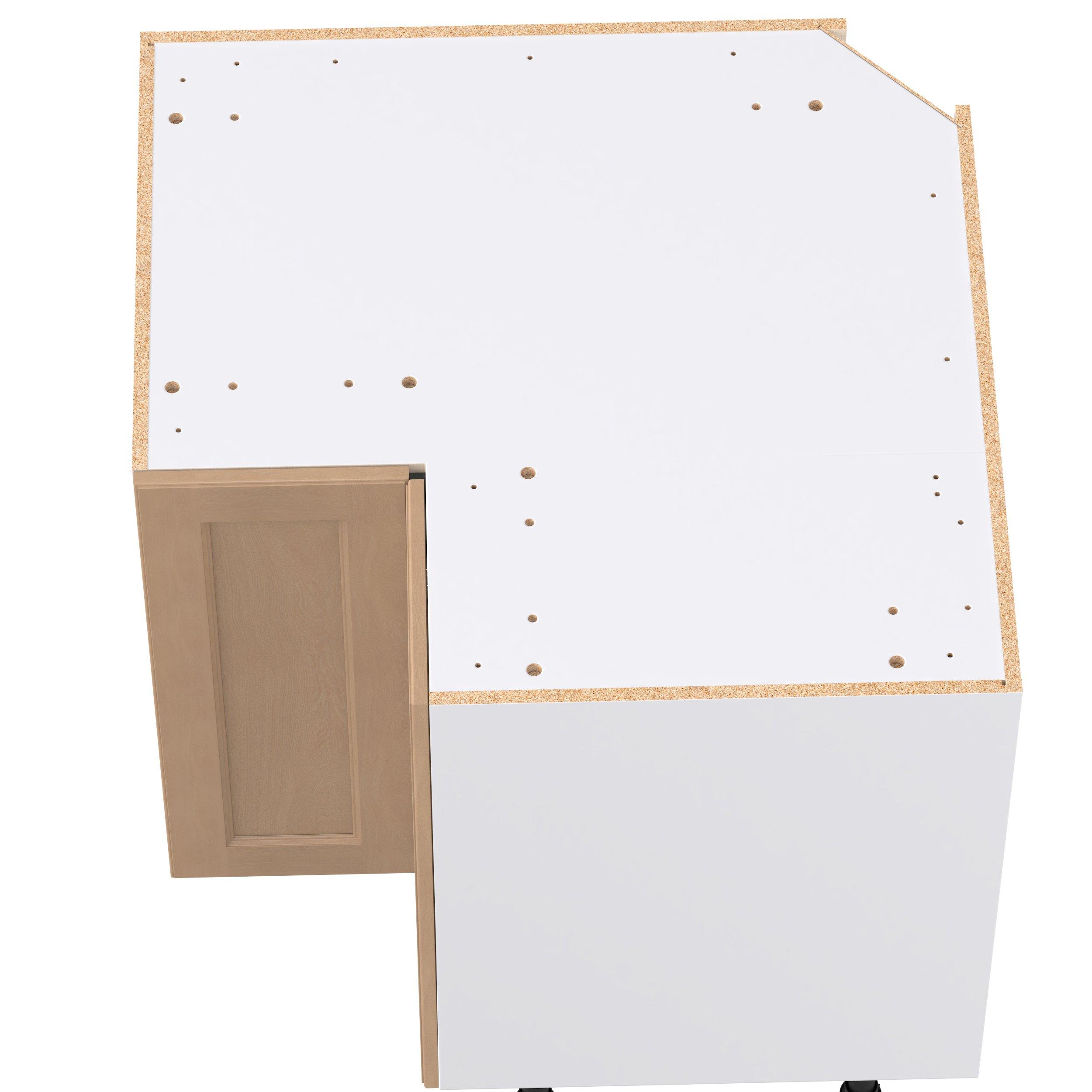 Experience the striking beauty of Sugarhill wide-rail shaker-inspired cabinets. Available in a warm and light sugar cookie finish, this collection will add warmth and lasting elegance to any space. Crafted from one-piece MDF Studio Design Collection Sugarhill 36 in. Stained Sugar Cookie Lazy Susan Corner Base Cabinet is designed to resist hairline cracks while the easy-to-clean finish stands up to stains and moisture. Featuring 5-piece doors and dovetail drawer joints, these cabinets offer durability and elegance. This collection combines style with everyday storage solutions.