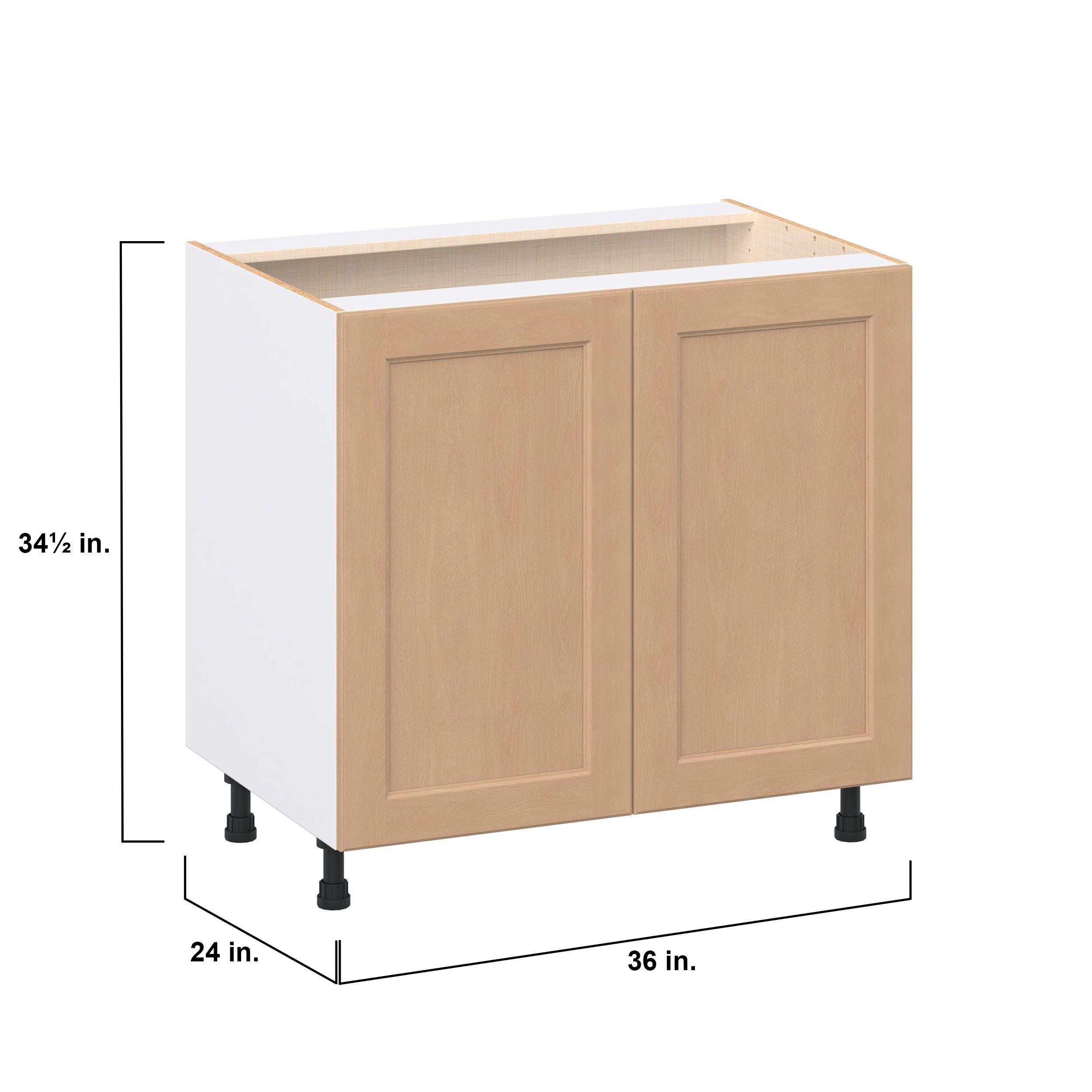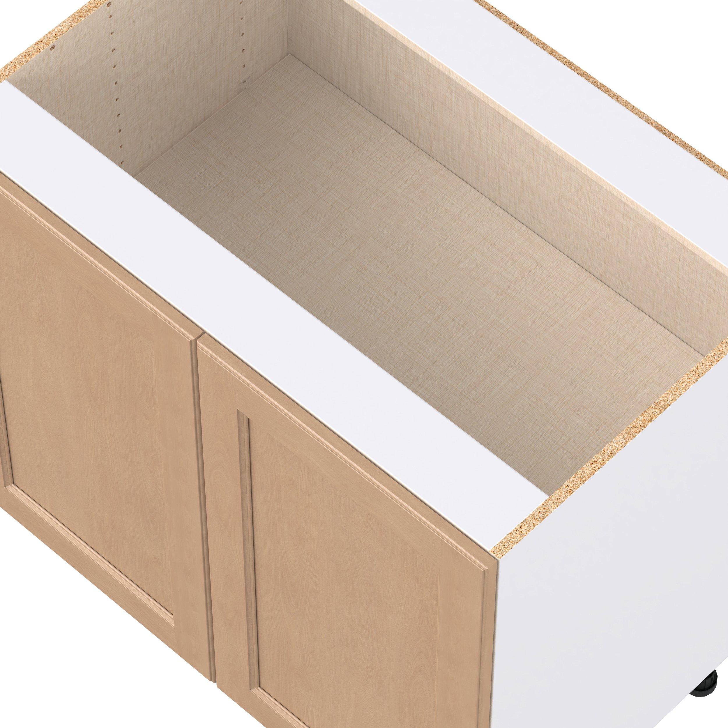 Experience the striking beauty of Sugarhill wide-rail shaker-inspired cabinets. Available in a warm and light sugar cookie finish, this collection will add warmth and lasting elegance to any space. Crafted from one-piece MDF Studio Design Collection Sugarhill 36 in. Stained Sugar Cookie Shallow Base Cabinet is designed to resist hairline cracks while the easy-to-clean finish stands up to stains and moisture. Featuring 5-piece doors and dovetail drawer joints, these cabinets offer durability and elegance. This collection combines style with everyday storage solutions.