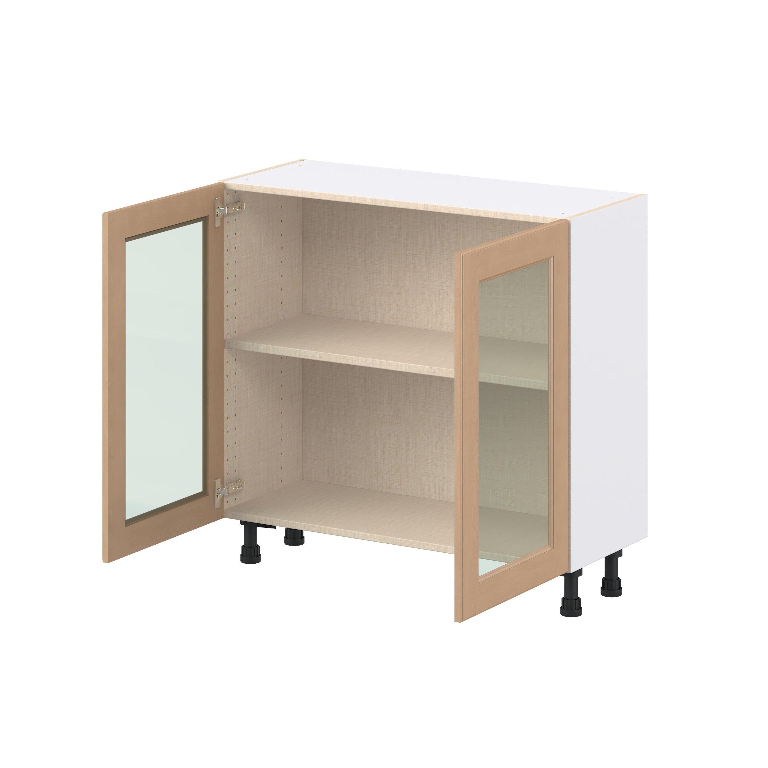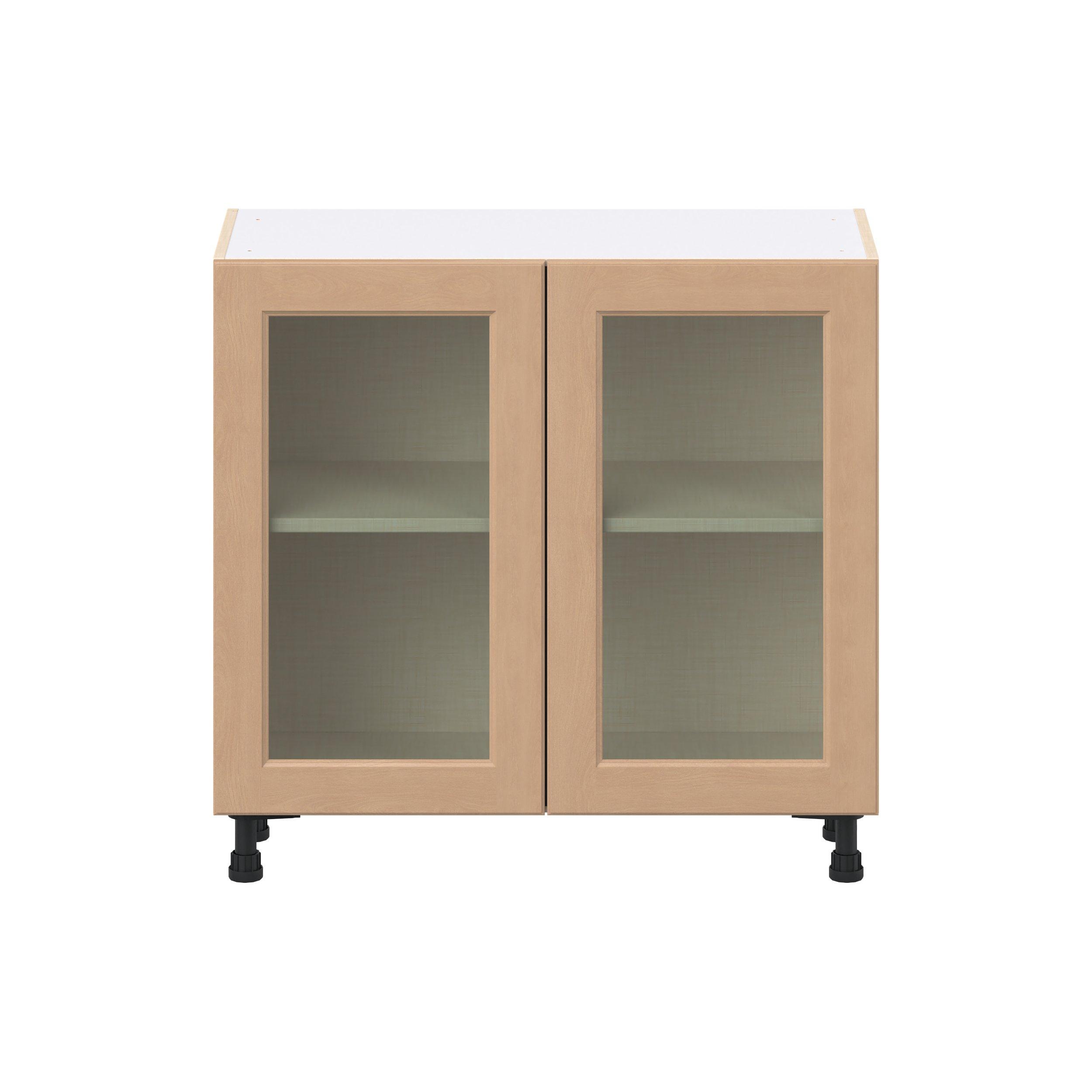 Experience the striking beauty of Sugarhill wide-rail shaker-inspired cabinets. Available in a warm and light sugar cookie finish, this collection will add warmth and lasting elegance to any space. Crafted from one-piece MDF Studio Design Collection Sugarhill 36 in. Stained Sugar Cookie Shallow Base Cabinet with Glass Door is designed to resist hairline cracks while the easy-to-clean finish stands up to stains and moisture. Featuring 5-piece doors and dovetail drawer joints, these cabinets offer durability and elegance. This collection combines style with everyday storage solutions.