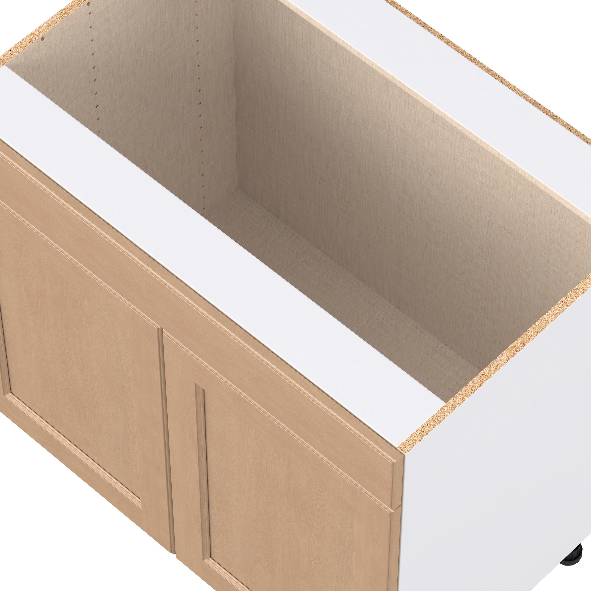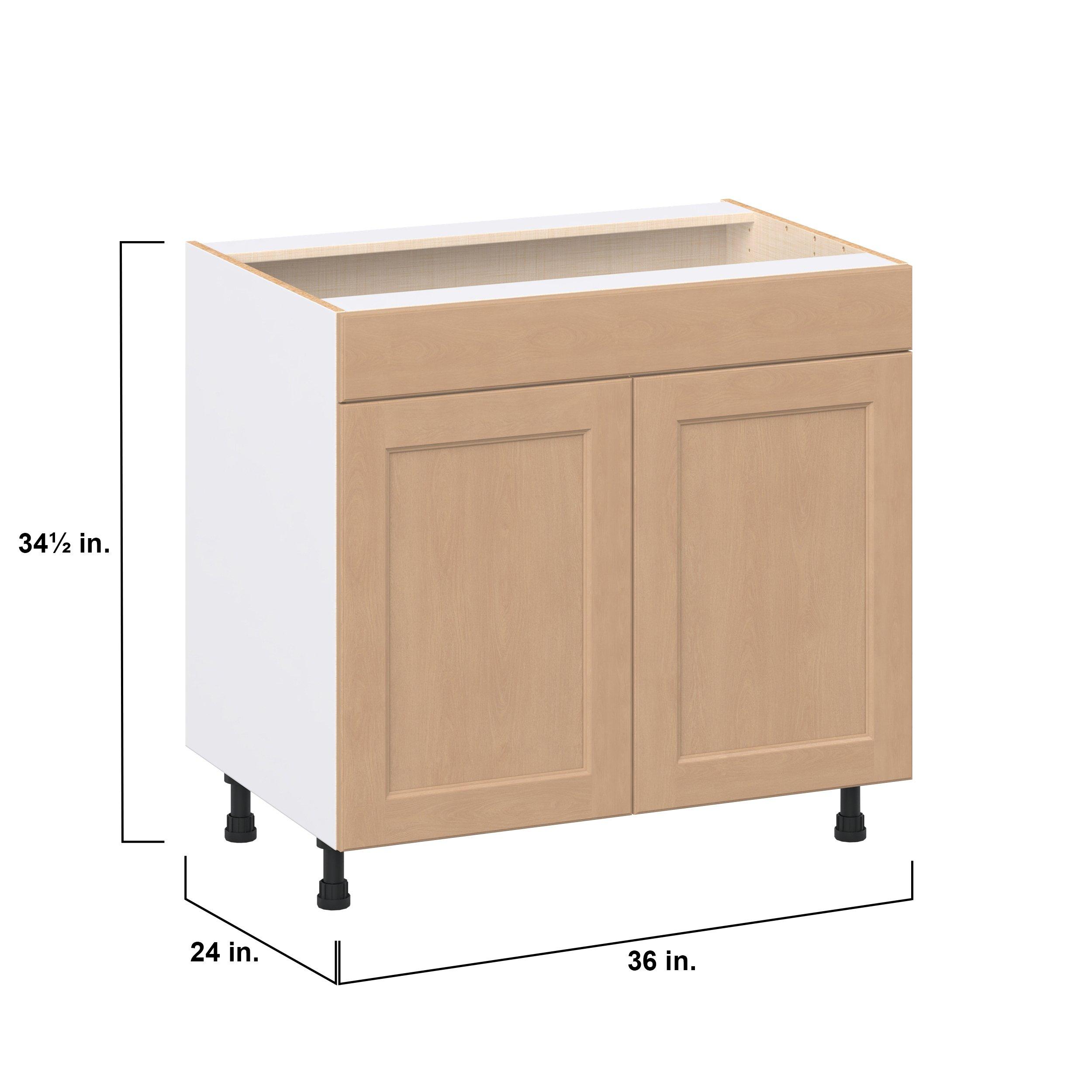 Experience the striking beauty of Sugarhill wide-rail shaker-inspired cabinets. Available in a warm and light sugar cookie finish, this collection will add warmth and lasting elegance to any space. Crafted from one-piece MDF Studio Design Collection Sugarhill 36 in. Stained Sugar Cookie Sink Base Cabinet with False Front is designed to resist hairline cracks while the easy-to-clean finish stands up to stains and moisture. Featuring 5-piece doors and dovetail drawer joints, these cabinets offer durability and elegance. This collection combines style with everyday storage solutions.