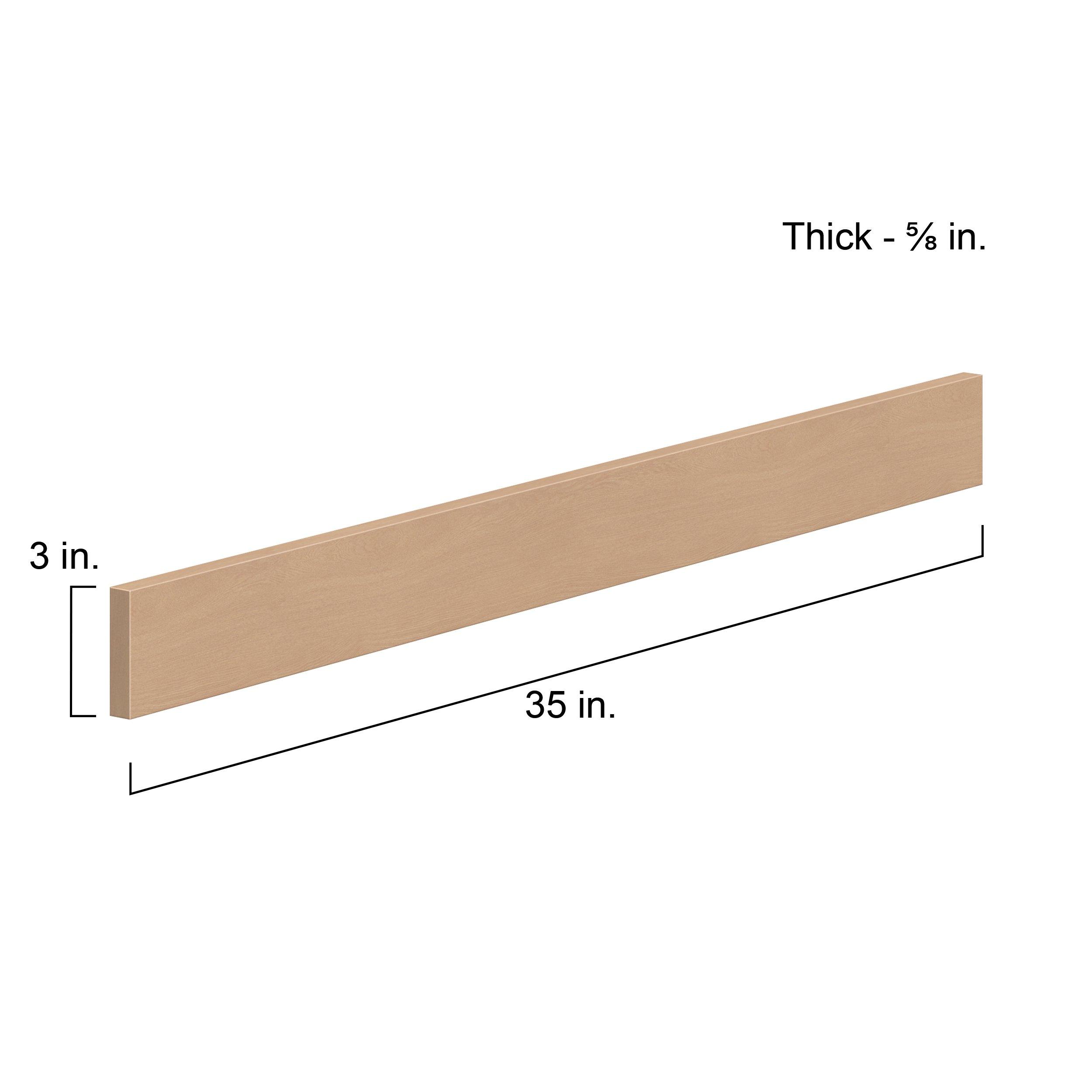 Experience the striking beauty of Sugarhill wide-rail shaker-inspired cabinets. Available in a warm and light sugar cookie finish, this collection will add warmth and lasting elegance to any space. Crafted from one-piece MDF Studio Design Collection Sugarhill 3x 35in. Stained Sugar Cookie Cabinet Filler Strip is designed to resist hairline cracks while the easy-to-clean finish stands up to stains and moisture. Featuring 5-piece doors and dovetail drawer joints, these cabinets offer durability and elegance. This collection combines style with everyday storage solutions.
