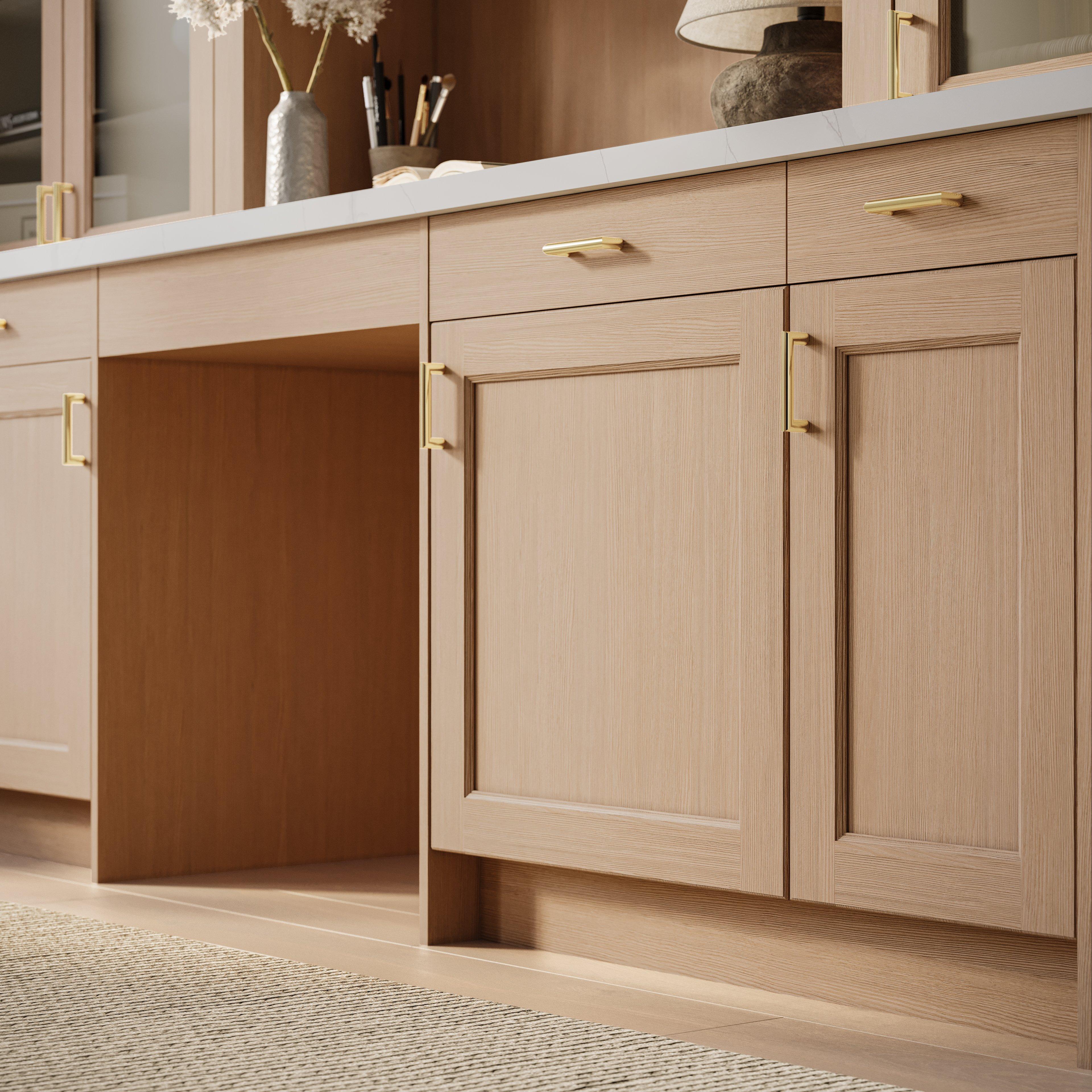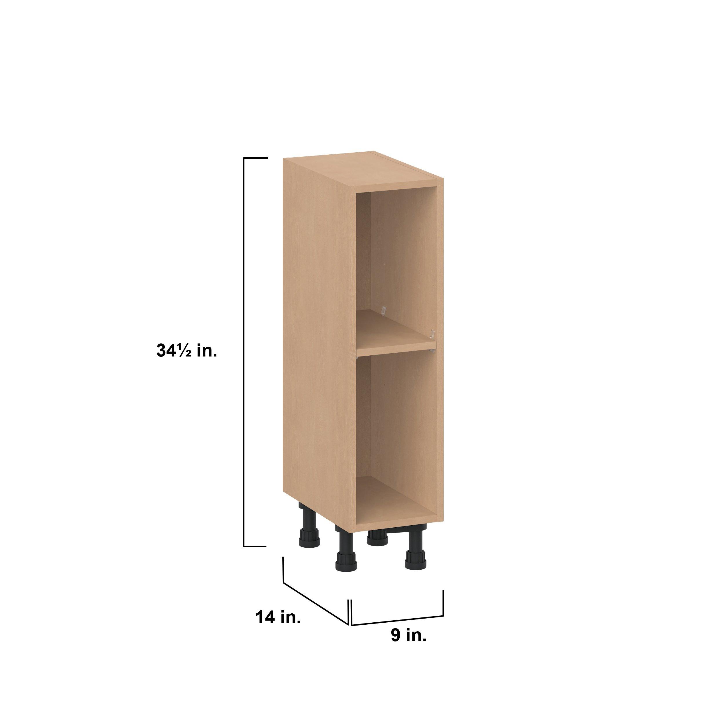 Experience the striking beauty of Sugarhill wide-rail shaker-inspired cabinets. Available in a warm and light sugar cookie finish, this collection will add warmth and lasting elegance to any space. Crafted from one-piece MDF Studio Design Collection Sugarhill 9 in. Stained Sugar Cookie Open Shelf Base Cabinet is designed to resist hairline cracks while the easy-to-clean finish stands up to stains and moisture. Featuring 5-piece doors and dovetail drawer joints, these cabinets offer durability and elegance. This collection combines style with everyday storage solutions.