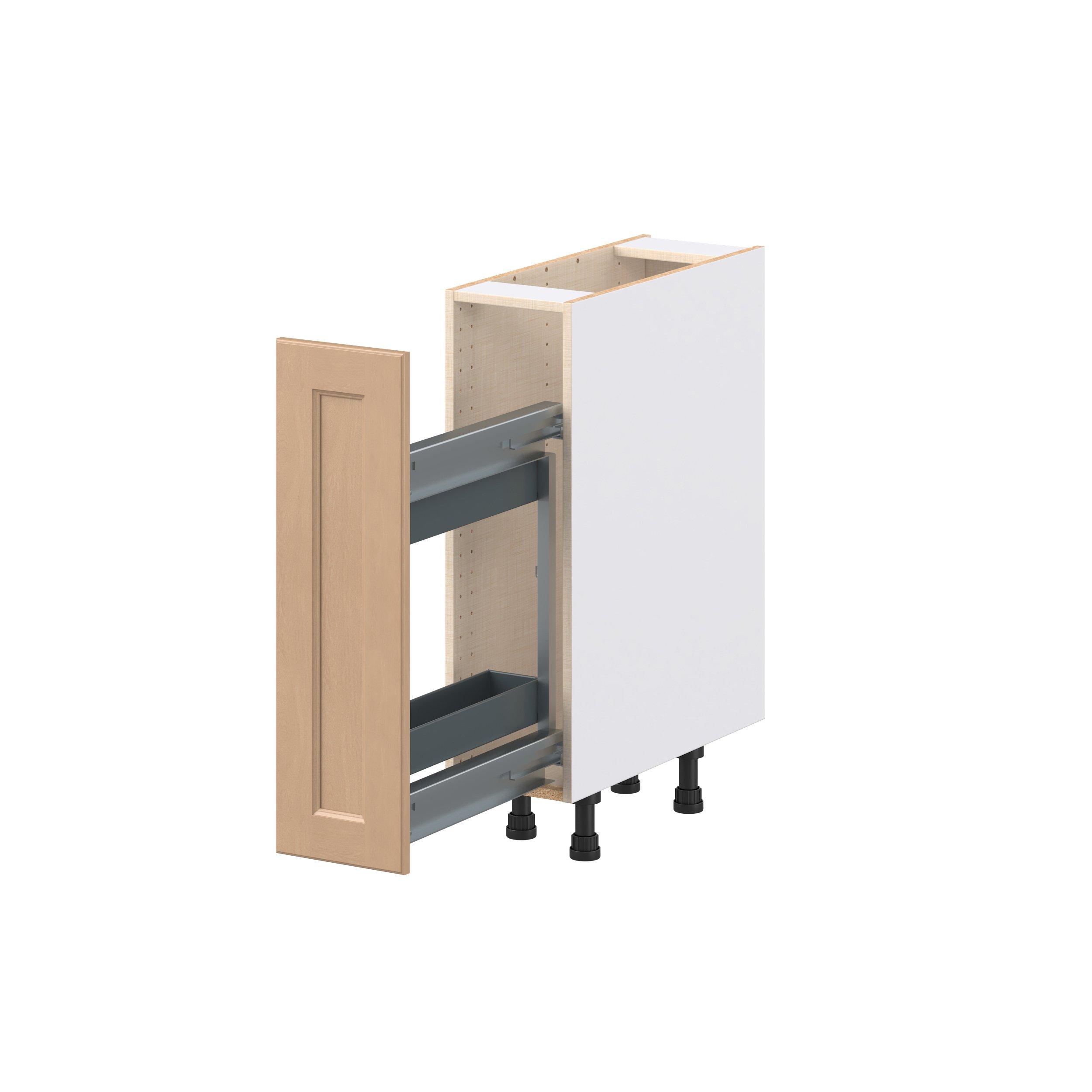 Experience the striking beauty of Sugarhill wide-rail shaker-inspired cabinets. Available in a warm and light sugar cookie finish, this collection will add warmth and lasting elegance to any space. Crafted from one-piece MDF Studio Design Collection Sugarhill 9 in. Stained Sugar Cookie Spice Rack Pull-Out Base Cabinet is designed to resist hairline cracks while the easy-to-clean finish stands up to stains and moisture. Featuring 5-piece doors and dovetail drawer joints, these cabinets offer durability and elegance. This collection combines style with everyday storage solutions.