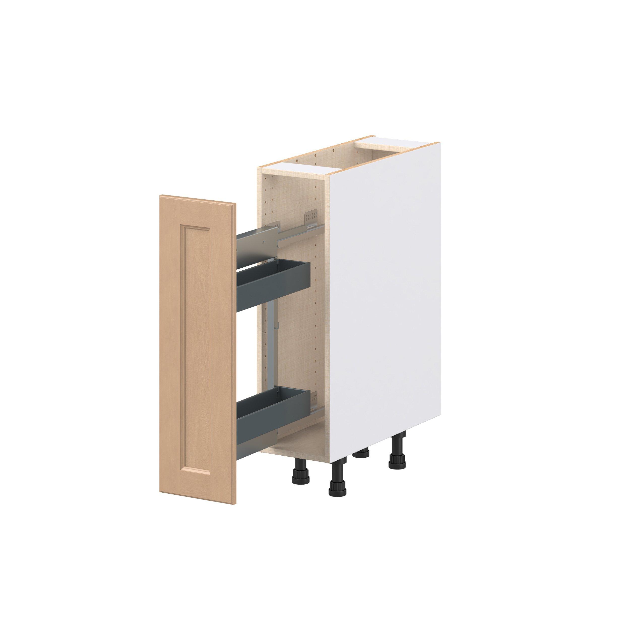 Experience the striking beauty of Sugarhill wide-rail shaker-inspired cabinets. Available in a warm and light sugar cookie finish, this collection will add warmth and lasting elegance to any space. Crafted from one-piece MDF Studio Design Collection Sugarhill 9 in. Stained Sugar Cookie Spice Rack Pull-Out Base Cabinet is designed to resist hairline cracks while the easy-to-clean finish stands up to stains and moisture. Featuring 5-piece doors and dovetail drawer joints, these cabinets offer durability and elegance. This collection combines style with everyday storage solutions.