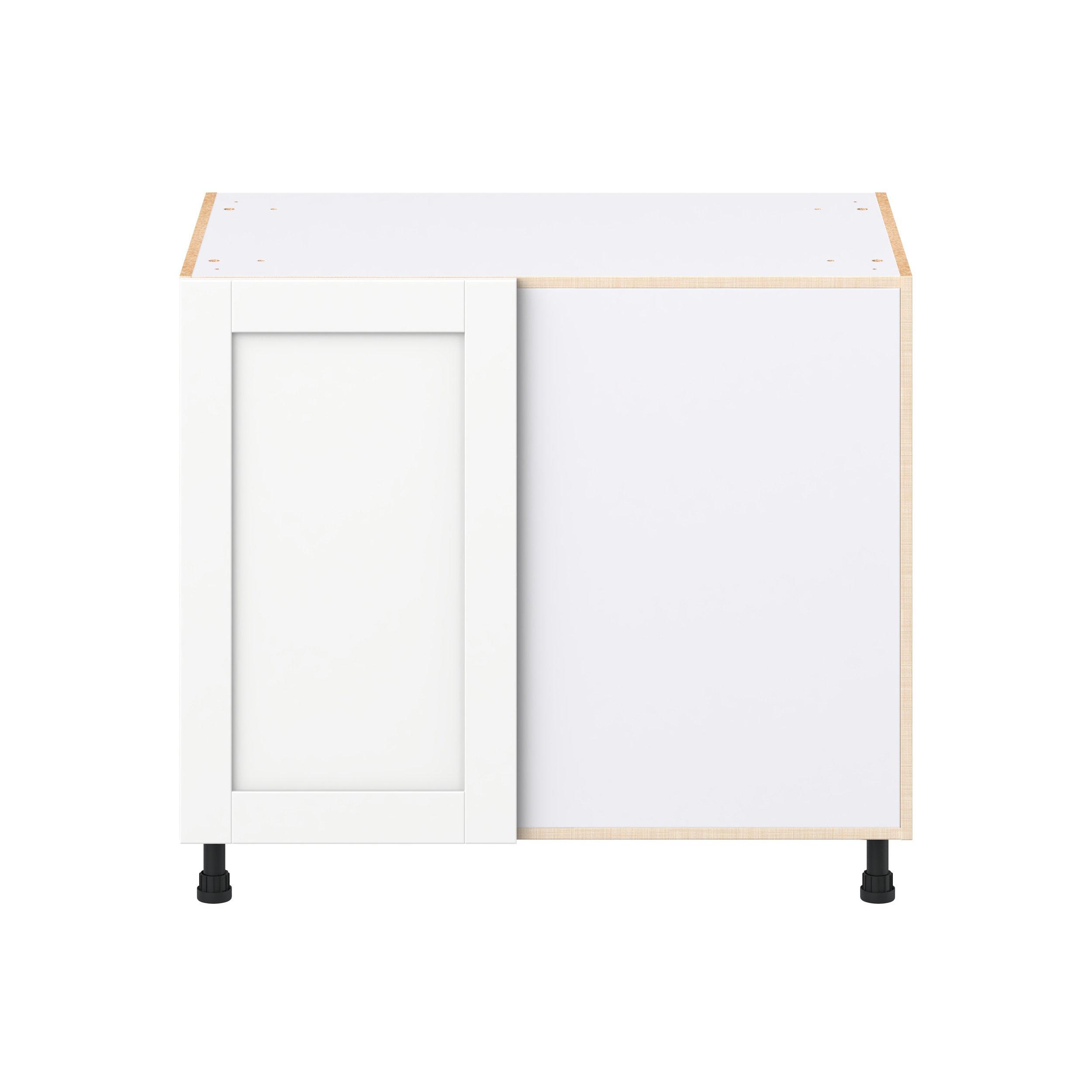 Enhance your home with the timeless beauty of Summerhill classic shaker cabinets, available in fresh bright white and neutral light gray colors. Crafted from one-piece MDF Studio Design Collection Summerhill 39 in. Bright White Lemans Swing Out Blind Corner Base Cabinet is designed to resist hairline cracks while the easy-to-clean finish stands up to stains and moisture. Featuring 5-piece doors and dovetail drawer joints, these cabinets offer durability and elegance. This collection combines style with everyday storage solutions.
