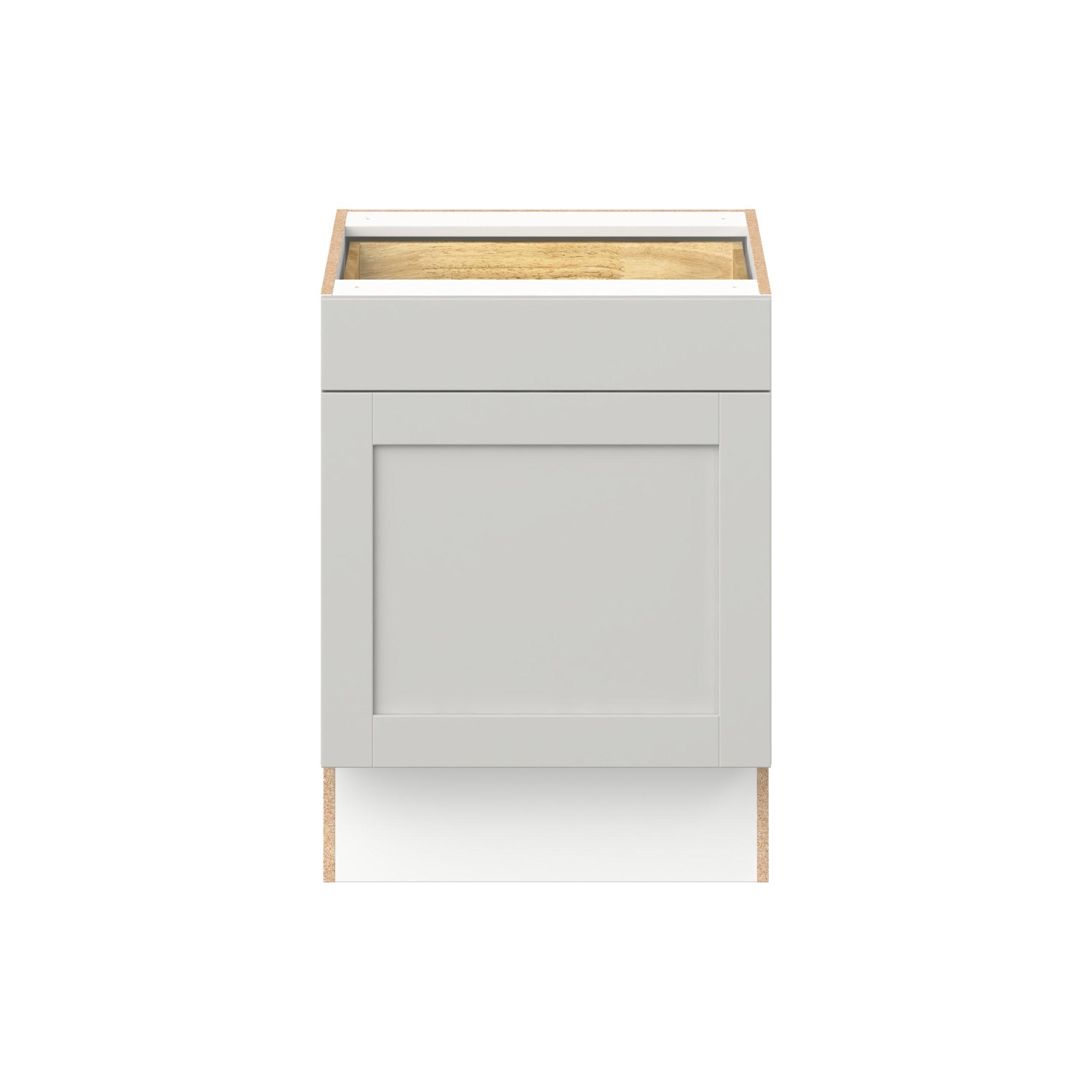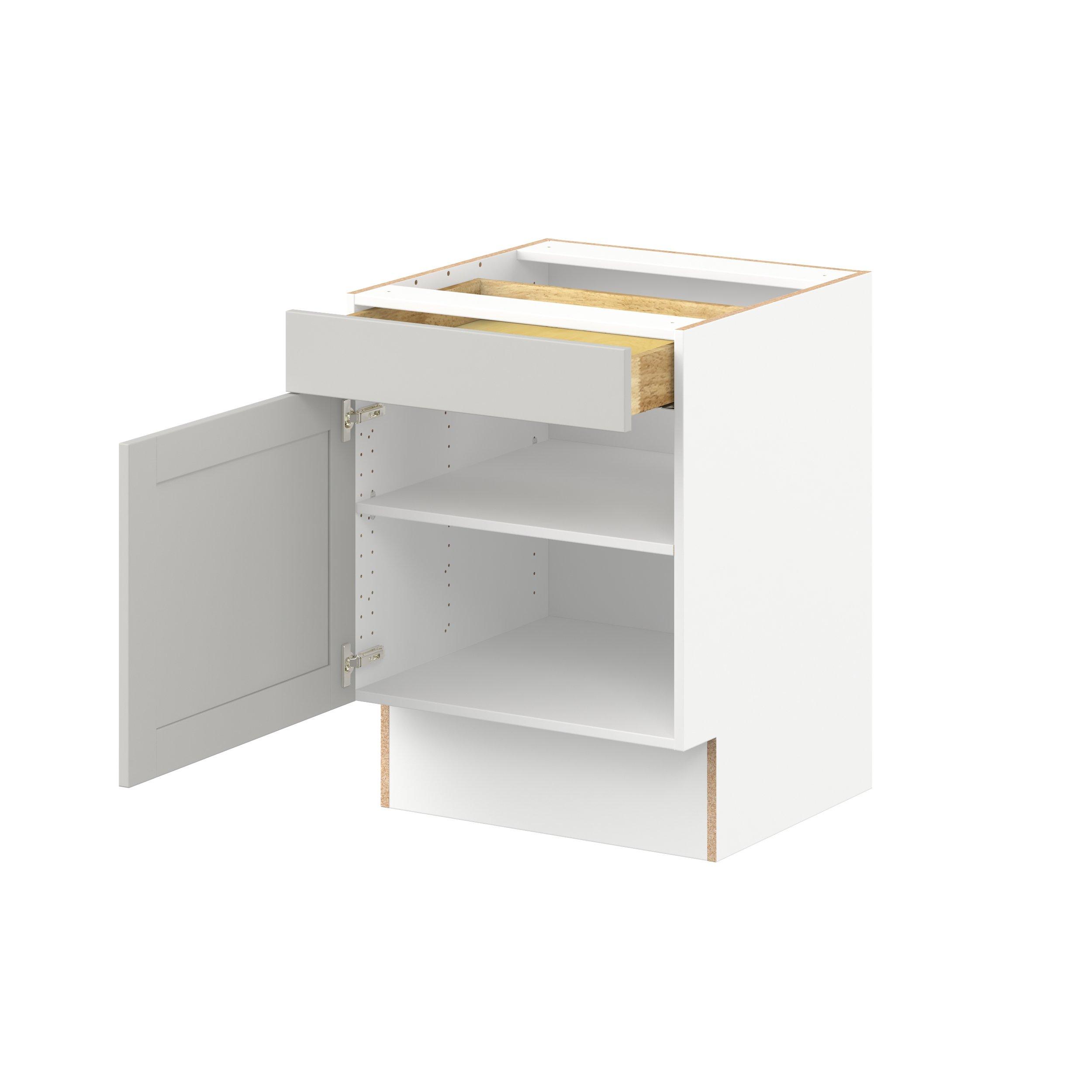 Enhance your home with the timeless beauty of Summerhill classic shaker cabinets, available in fresh bright white and neutral light gray colors. Crafted from one-piece MDF Studio Design Collection Summerhill 24 in. Light Gray Door and Drawer Base Cabinet is designed to resist hairline cracks while the easy-to-clean finish stands up to stains and moisture. Featuring 5-piece doors and dovetail drawer joints, these cabinets offer durability and elegance. This collection combines style with everyday storage solutions.