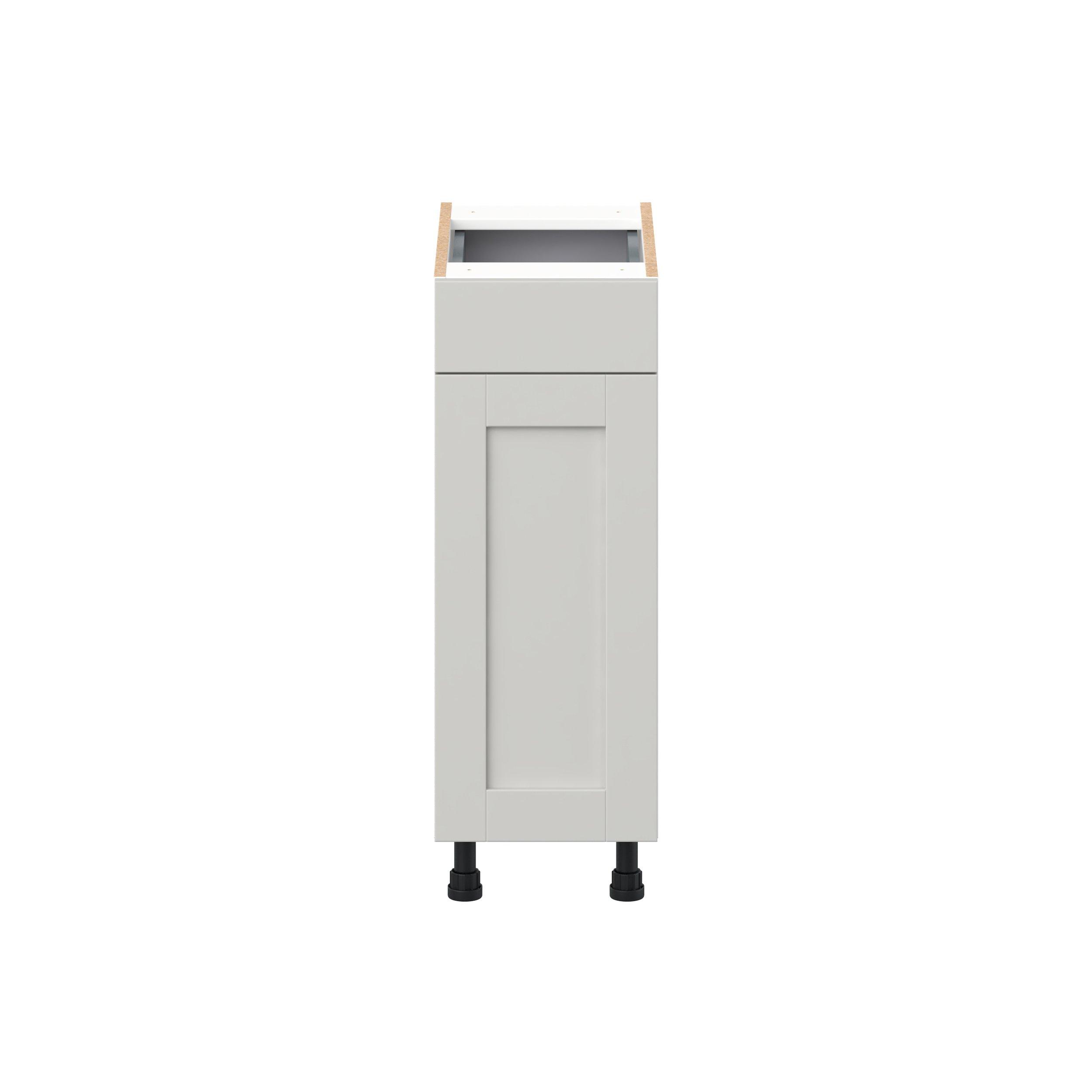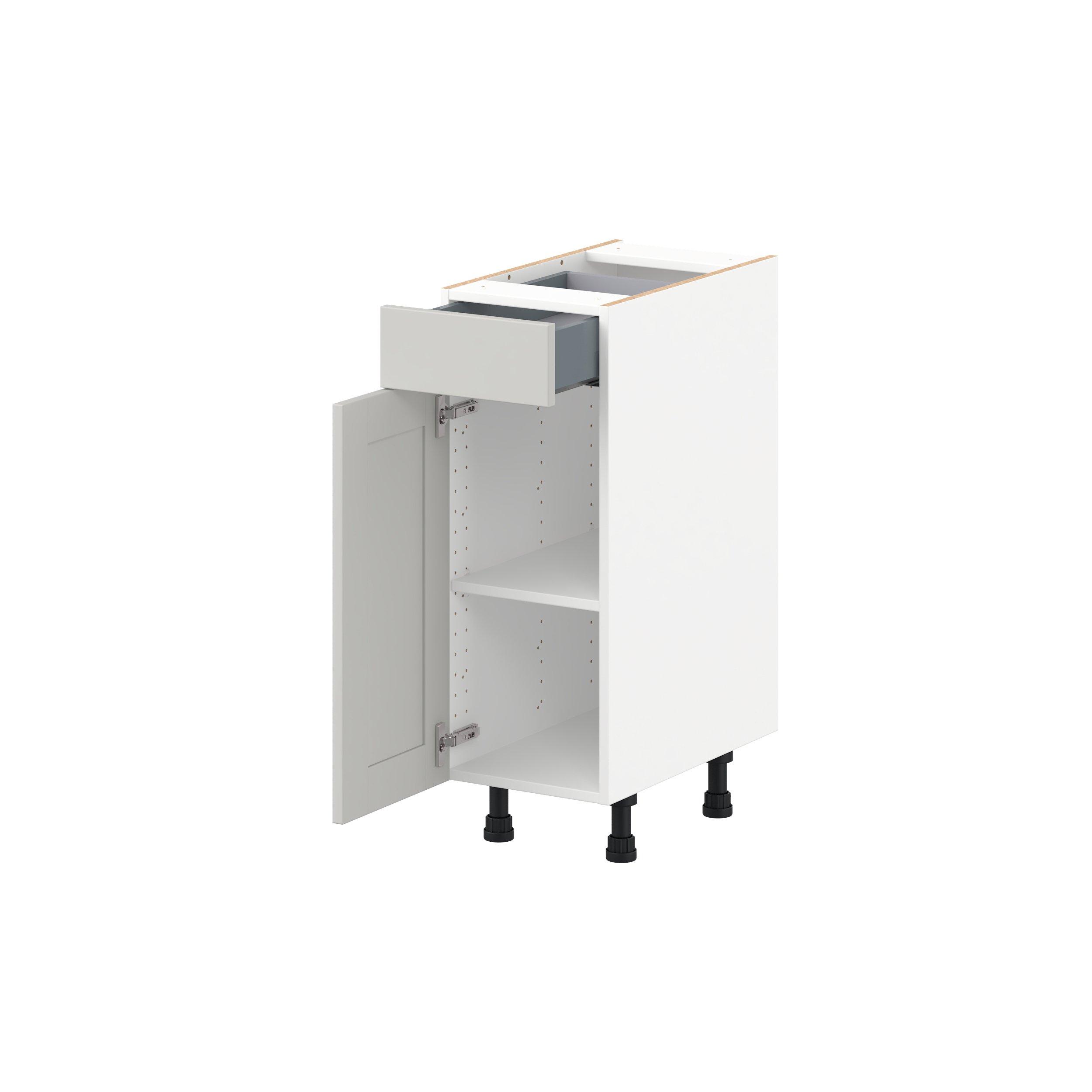 Enhance your home with the timeless beauty of Summerhill classic shaker cabinets, available in fresh bright white and neutral light gray colors. Crafted from one-piece MDF Studio Design Collection Summerhill 12 in. Light Gray Vanity Door and Drawer Base Cabinet is designed to resist hairline cracks while the easy-to-clean finish stands up to stains and moisture. Featuring 5-piece doors and dovetail drawer joints, these cabinets offer durability and elegance. This collection combines style with everyday storage solutions.