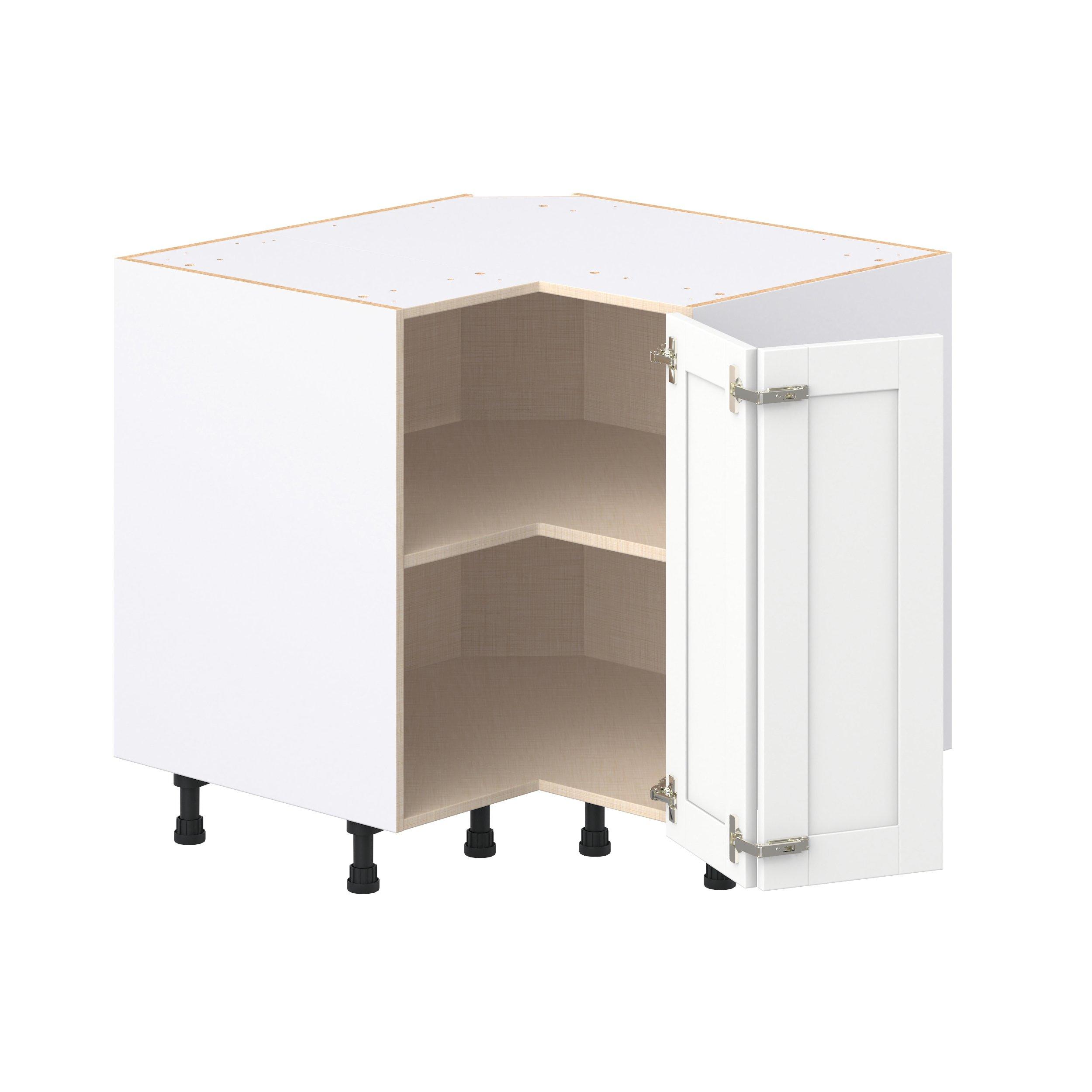 Enhance your home with the timeless beauty of Summerhill classic shaker cabinets, available in fresh bright white and neutral light gray colors. Crafted from one-piece MDF Studio Design Collection Summerhill 36 in. Bright White Corner Base Cabinet is designed to resist hairline cracks while the easy-to-clean finish stands up to stains and moisture. Featuring 5-piece doors and dovetail drawer joints, these cabinets offer durability and elegance. This collection combines style with everyday storage solutions.
