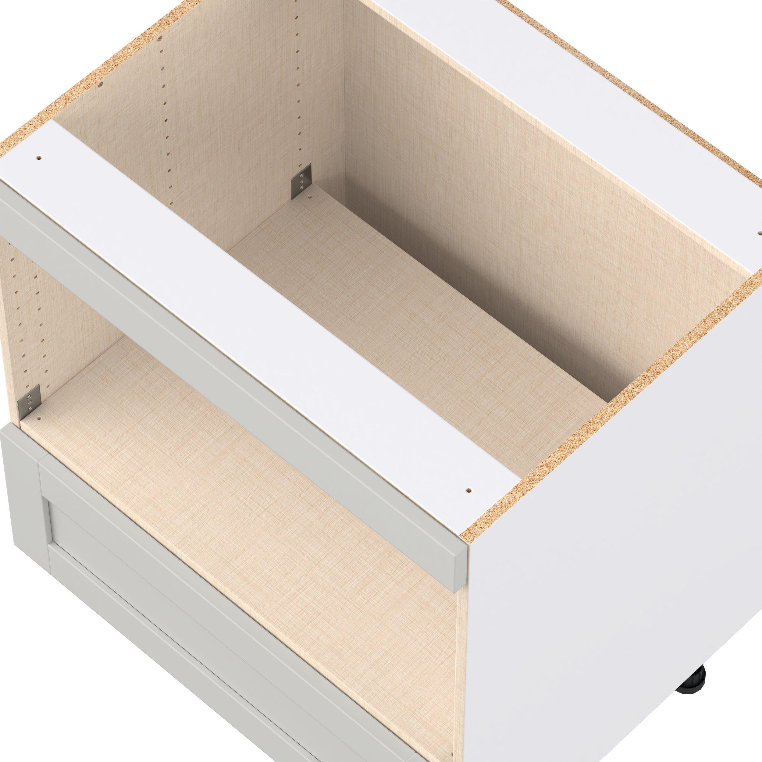 - Frameless cabinet with full-access construction to provide a wider opening.