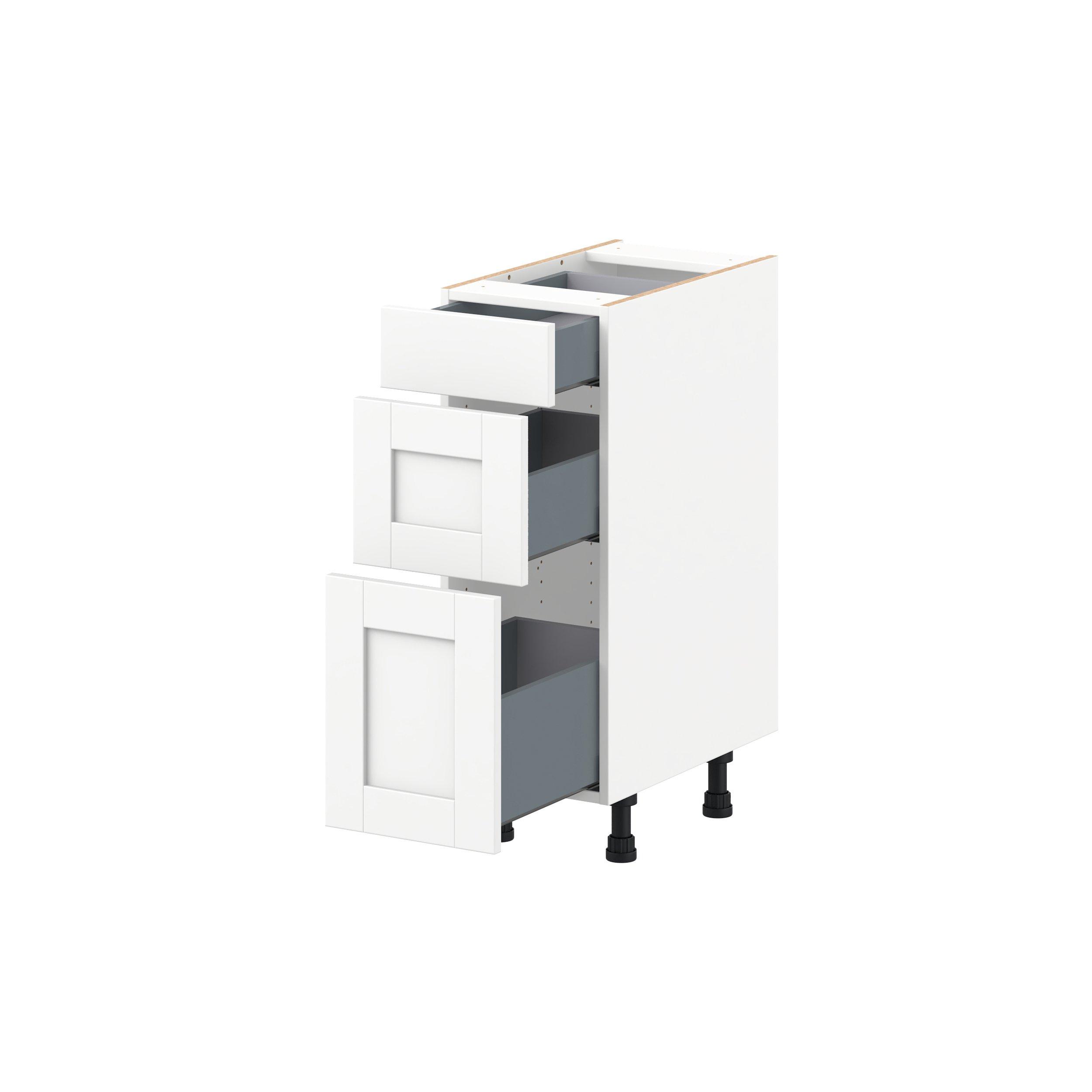 Enhance your home with the timeless beauty of Summerhill classic shaker cabinets, available in fresh bright white and neutral light gray colors. Crafted from one-piece MDF Studio Design Collection Summerhill 12 in. Bright White Vanity Drawer Base Cabinet is designed to resist hairline cracks while the easy-to-clean finish stands up to stains and moisture. Featuring 5-piece doors and dovetail drawer joints, these cabinets offer durability and elegance. This collection combines style with everyday storage solutions.