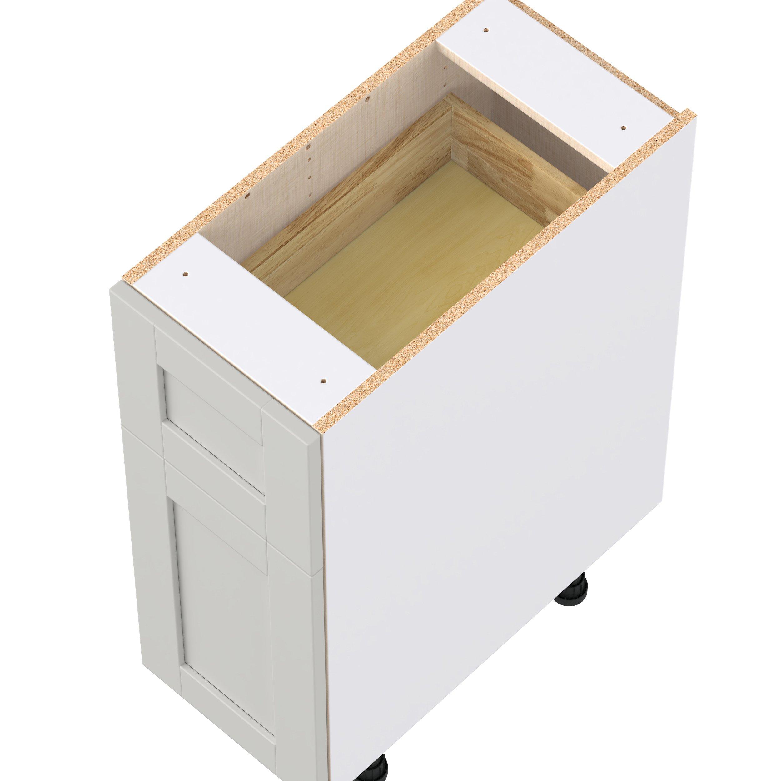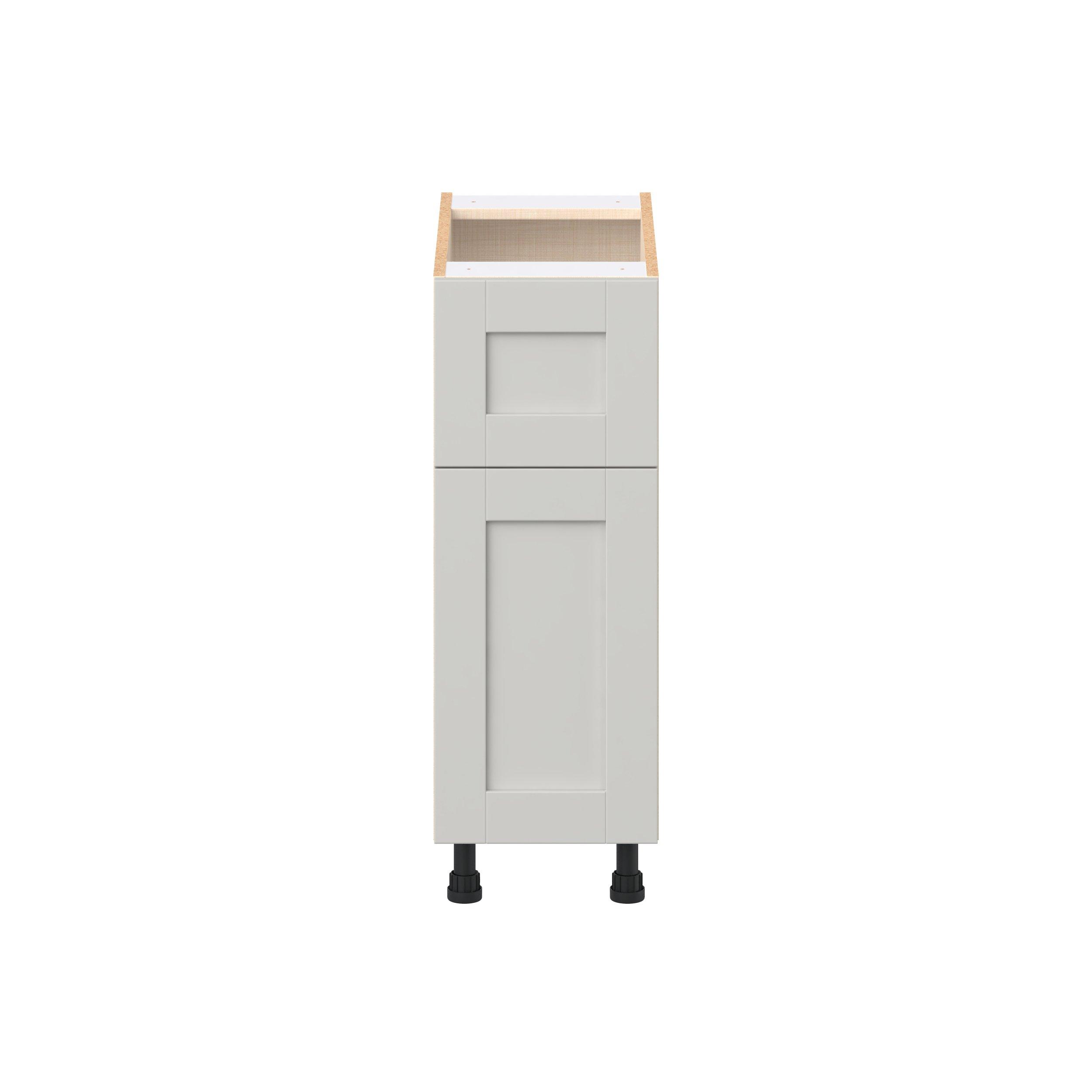 Enhance your home with the timeless beauty of Summerhill classic shaker cabinets, available in fresh bright white and neutral light gray colors. Crafted from one-piece MDF Studio Design Collection Summerhill 12 in. Light Gray Door and Drawer Base Cabinet is designed to resist hairline cracks while the easy-to-clean finish stands up to stains and moisture. Featuring 5-piece doors and dovetail drawer joints, these cabinets offer durability and elegance. This collection combines style with everyday storage solutions.