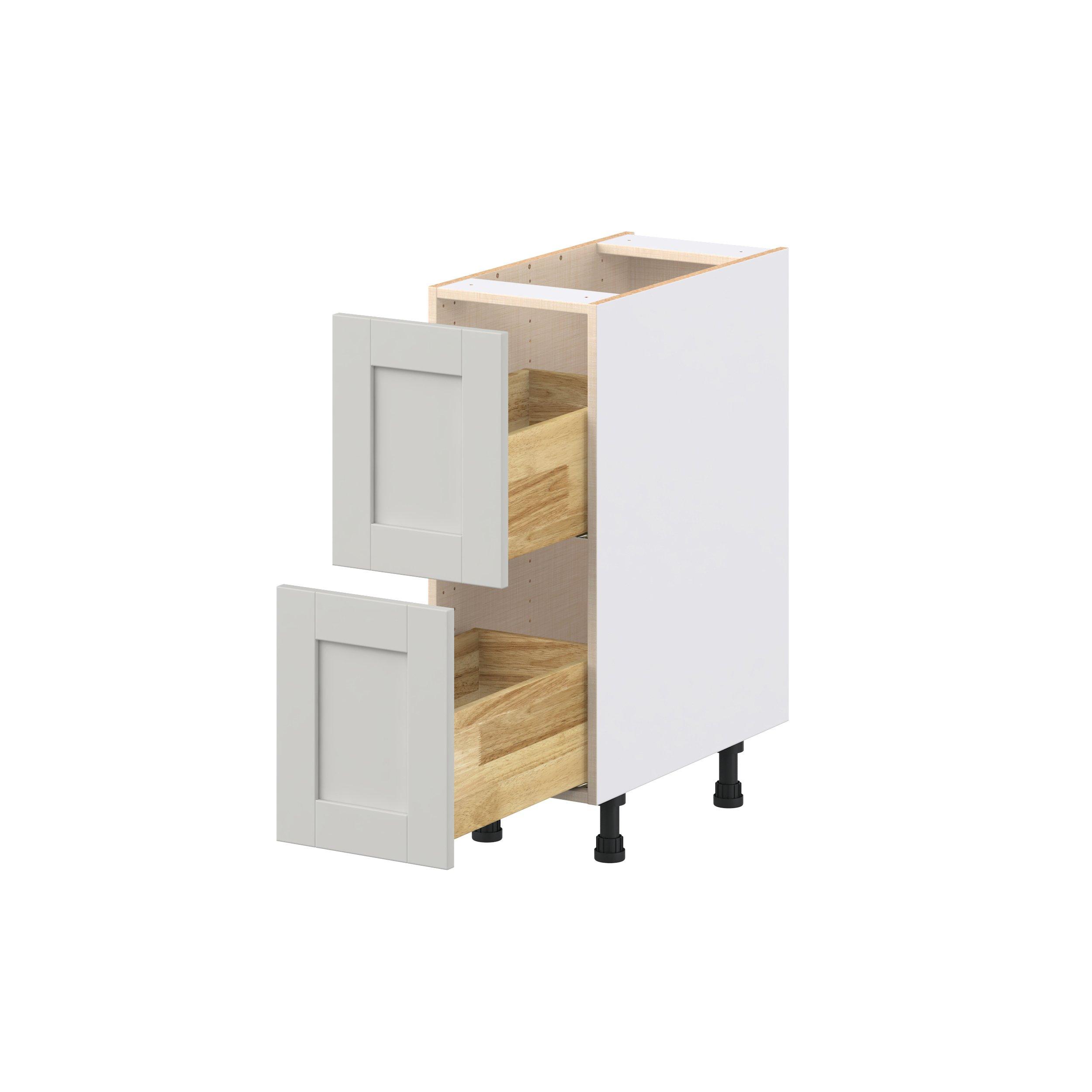 Enhance your home with the timeless beauty of Summerhill classic shaker cabinets, available in fresh bright white and neutral light gray colors. Crafted from one-piece MDF Studio Design Collection Summerhill 12 in. Light Gray Drawer Base Cabinet is designed to resist hairline cracks while the easy-to-clean finish stands up to stains and moisture. Featuring 5-piece doors and dovetail drawer joints, these cabinets offer durability and elegance. This collection combines style with everyday storage solutions.