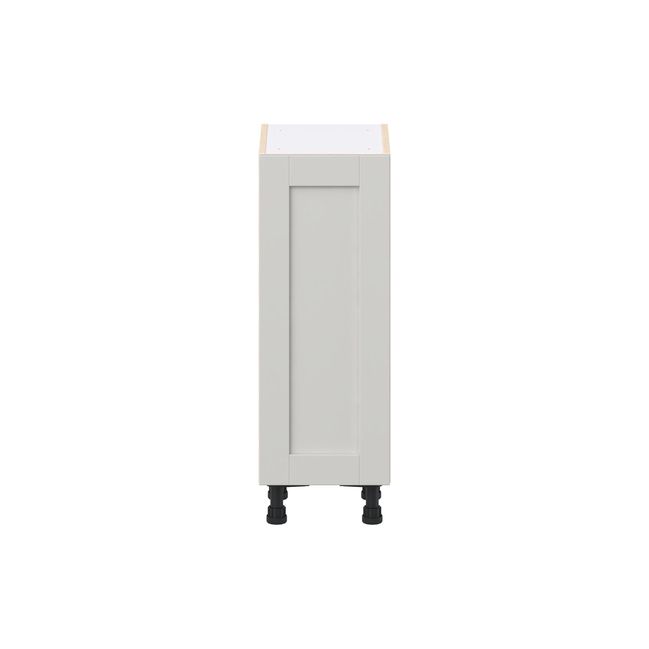 Enhance your home with the timeless beauty of Summerhill classic shaker cabinets, available in fresh bright white and neutral light gray colors. Crafted from one-piece MDF Studio Design Collection Summerhill 13 in. Light Gray Shallow Base Cabinet is designed to resist hairline cracks while the easy-to-clean finish stands up to stains and moisture. Featuring 5-piece doors and dovetail drawer joints, these cabinets offer durability and elegance. This collection combines style with everyday storage solutions.