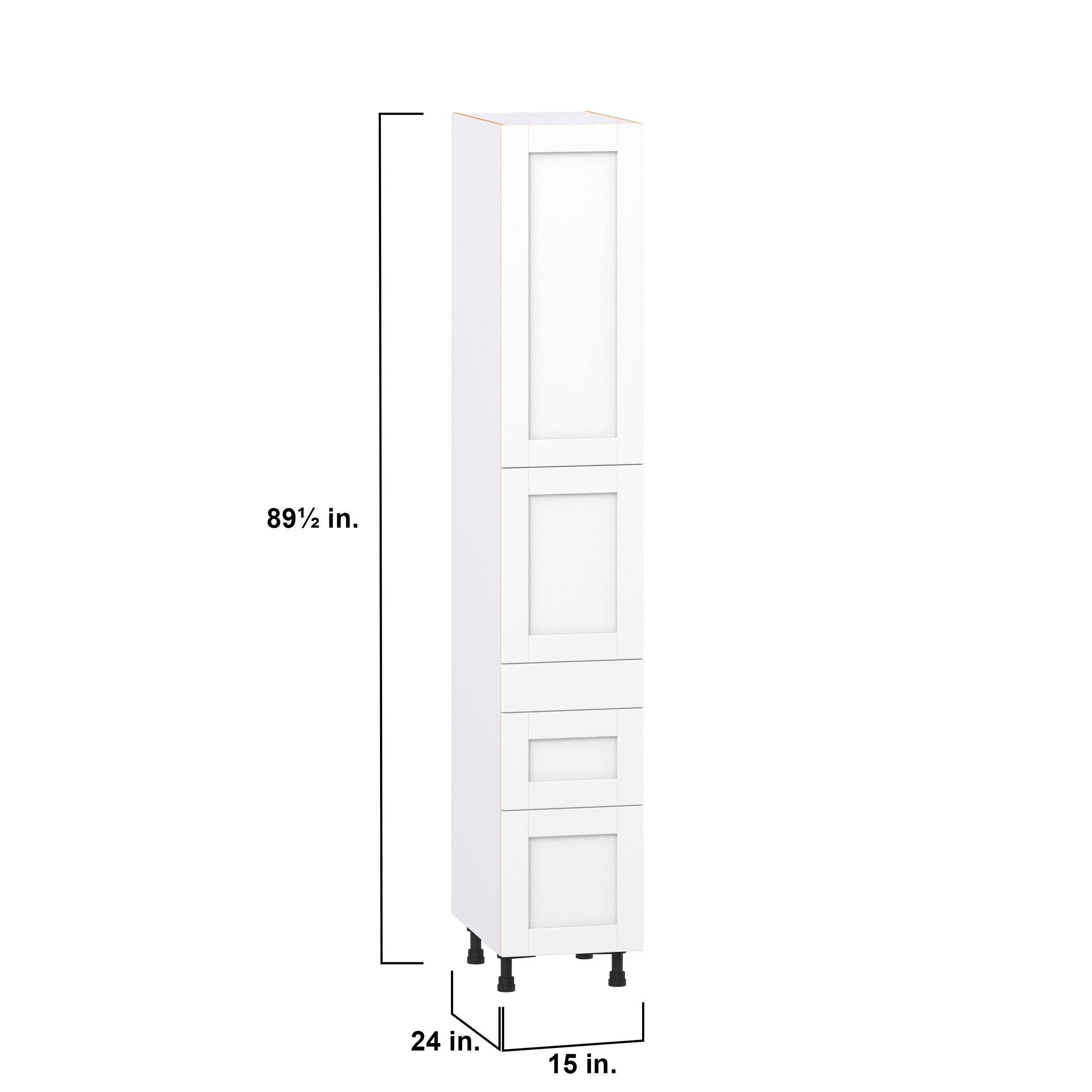 Enhance your home with the timeless beauty of Summerhill classic shaker cabinets, available in fresh bright white and neutral light gray colors. Crafted from one-piece MDF Studio Design Collection Summerhill 15 in. Bright White Door and Drawer Pantry Cabinet with Inner Pull-Out is designed to resist hairline cracks while the easy-to-clean finish stands up to stains and moisture. Featuring 5-piece doors and dovetail drawer joints, these cabinets offer durability and elegance. This collection combines style with everyday storage solutions.