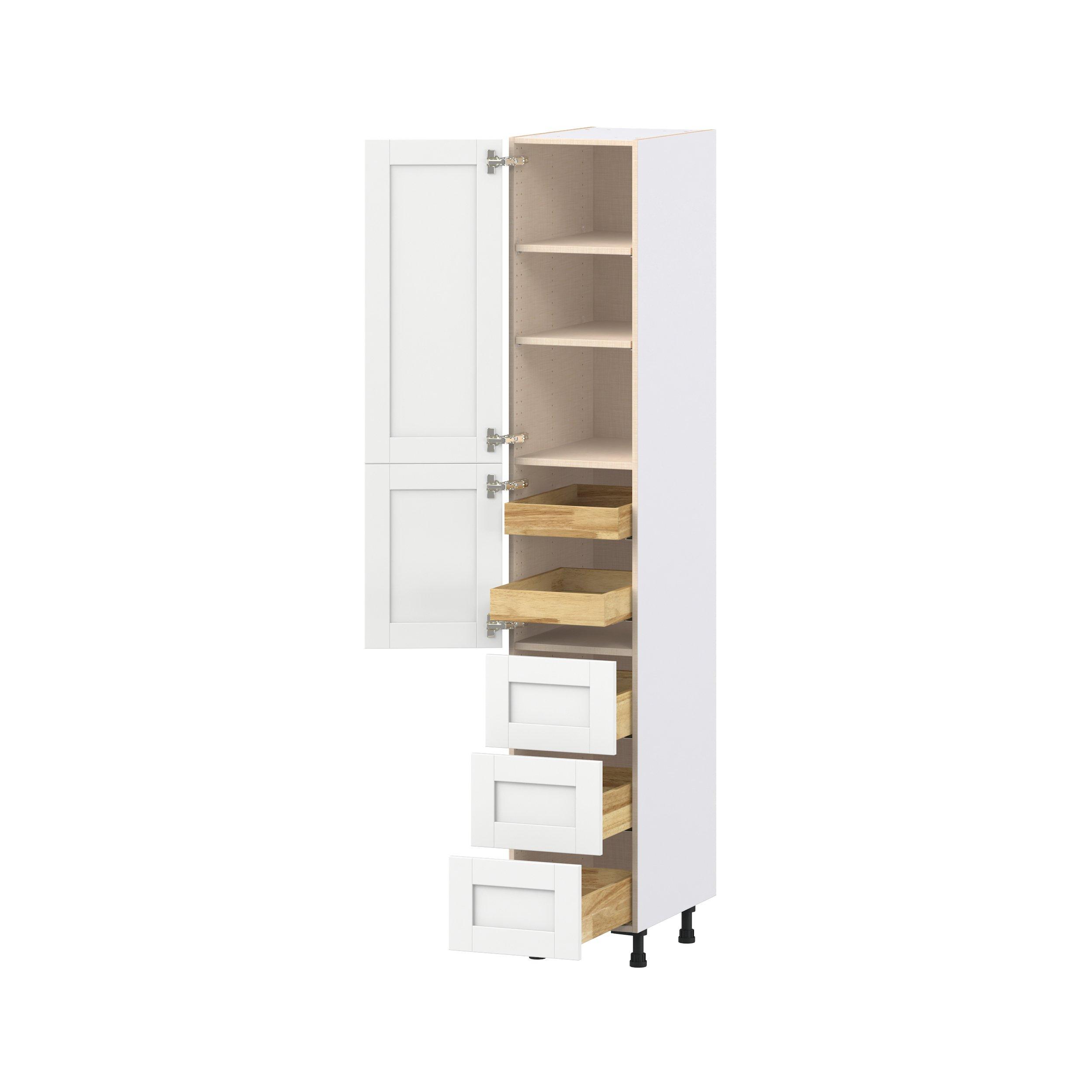 Enhance your home with the timeless beauty of Summerhill classic shaker cabinets, available in fresh bright white and neutral light gray colors. Crafted from one-piece MDF Studio Design Collection Summerhill 15 in. Bright White Door and Drawer Pantry Cabinet with Inner Pull-Out is designed to resist hairline cracks while the easy-to-clean finish stands up to stains and moisture. Featuring 5-piece doors and dovetail drawer joints, these cabinets offer durability and elegance. This collection combines style with everyday storage solutions.