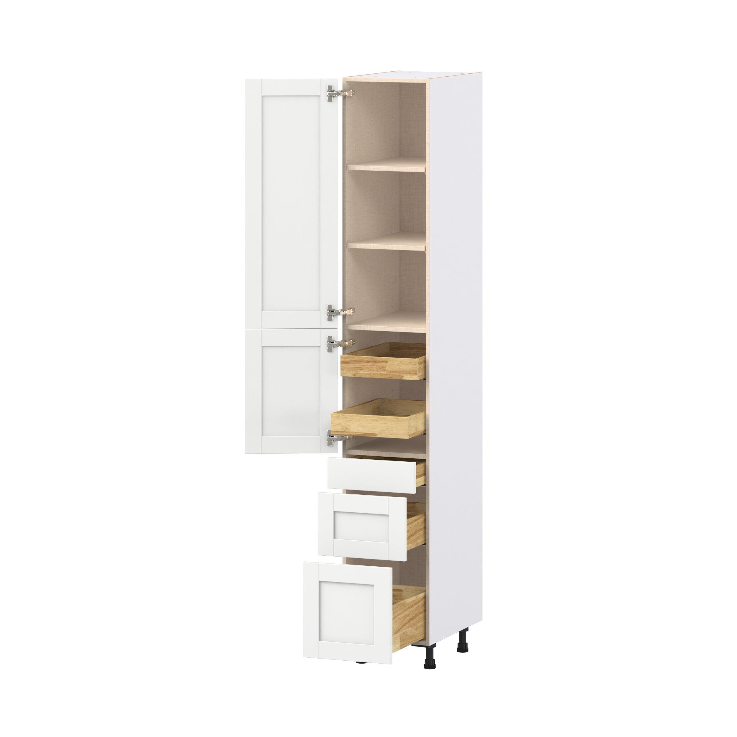 Enhance your home with the timeless beauty of Summerhill classic shaker cabinets, available in fresh bright white and neutral light gray colors. Crafted from one-piece MDF Studio Design Collection Summerhill 15 in. Bright White Door and Drawer Pantry Cabinet with Inner Pull-Out is designed to resist hairline cracks while the easy-to-clean finish stands up to stains and moisture. Featuring 5-piece doors and dovetail drawer joints, these cabinets offer durability and elegance. This collection combines style with everyday storage solutions.
