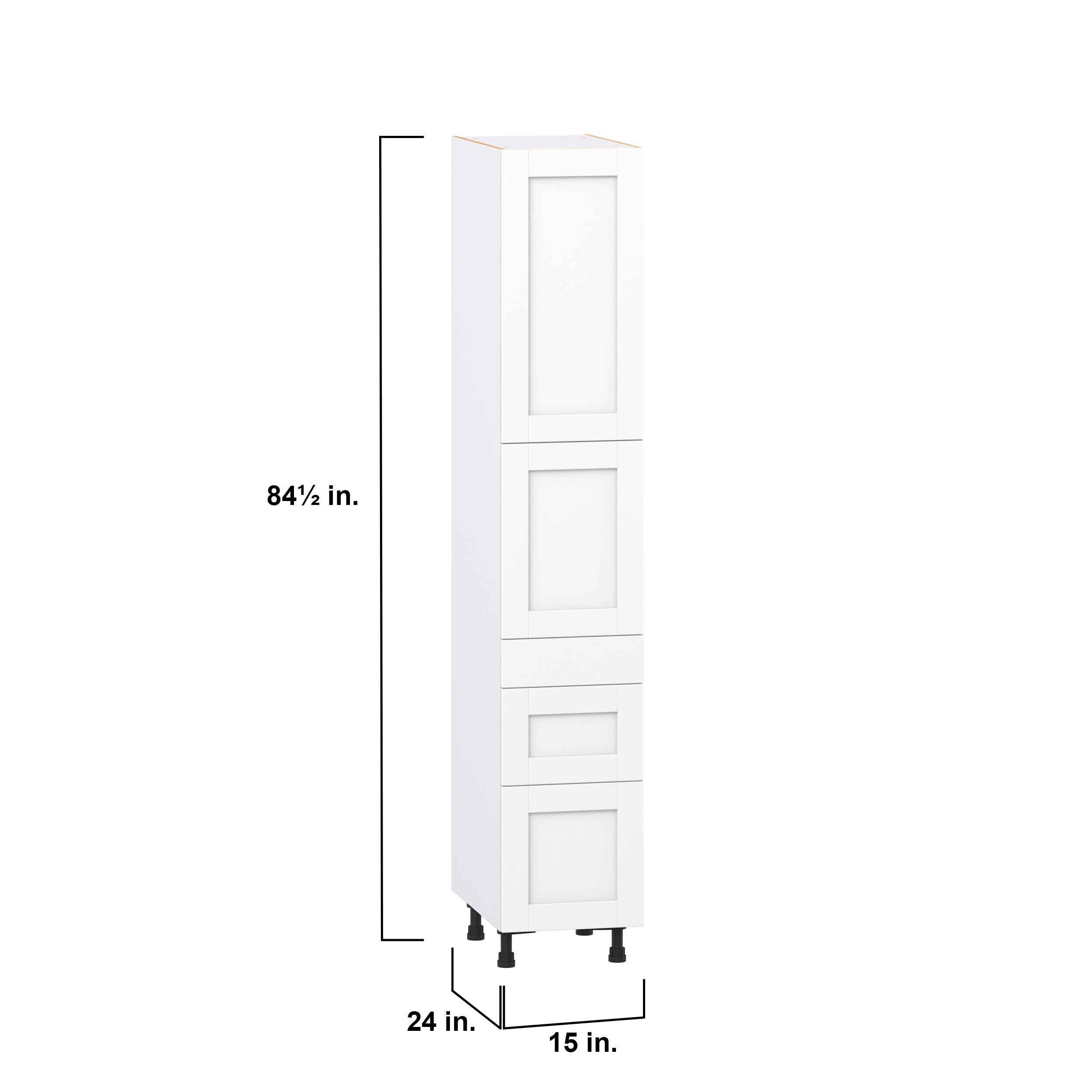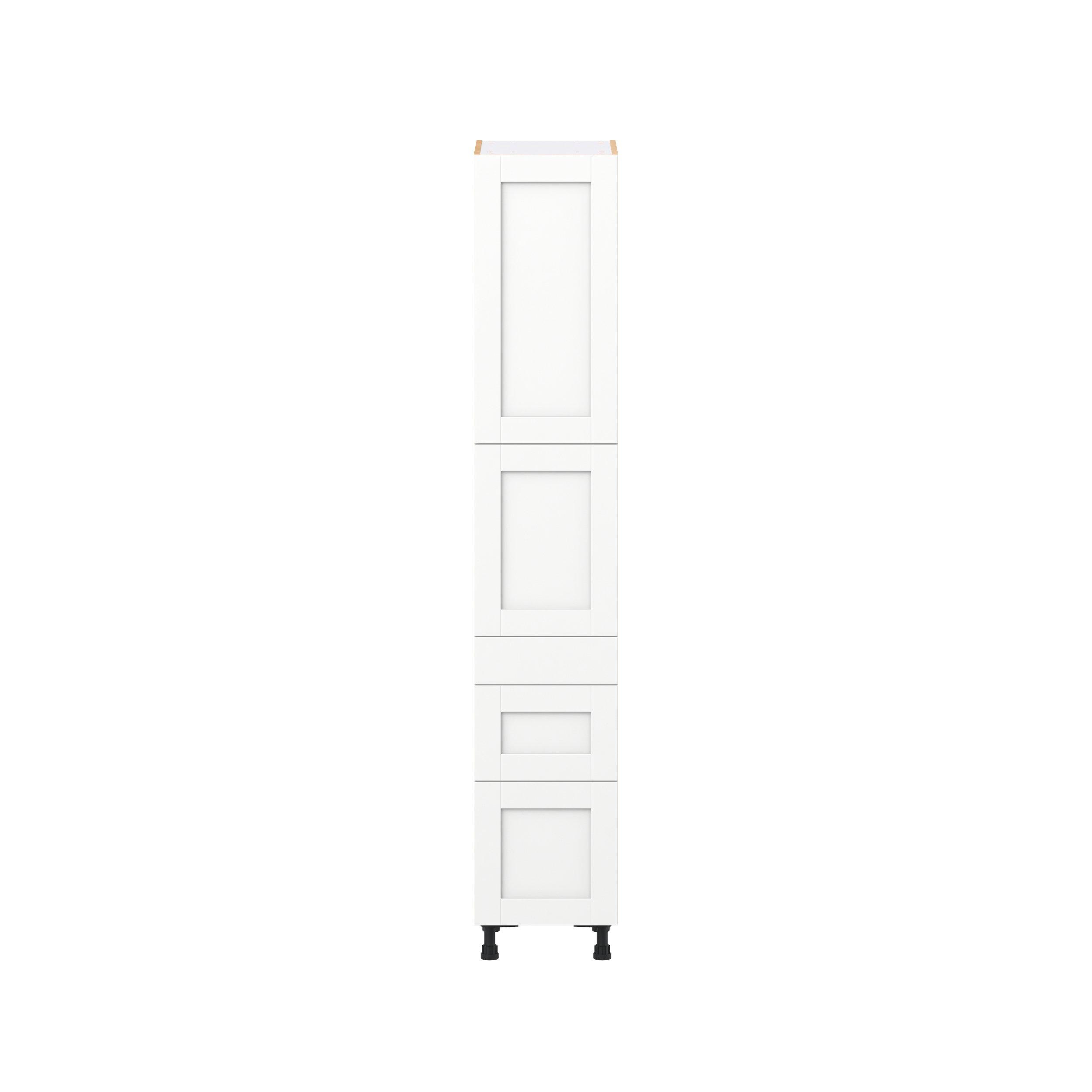 Enhance your home with the timeless beauty of Summerhill classic shaker cabinets, available in fresh bright white and neutral light gray colors. Crafted from one-piece MDF Studio Design Collection Summerhill 15 in. Bright White Door and Drawer Pantry Cabinet with Inner Pull-Out is designed to resist hairline cracks while the easy-to-clean finish stands up to stains and moisture. Featuring 5-piece doors and dovetail drawer joints, these cabinets offer durability and elegance. This collection combines style with everyday storage solutions.