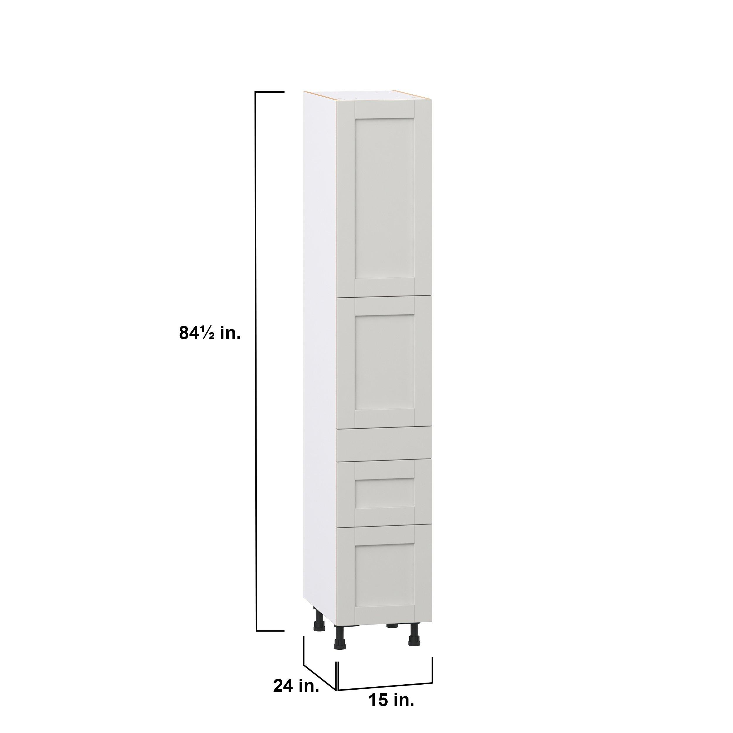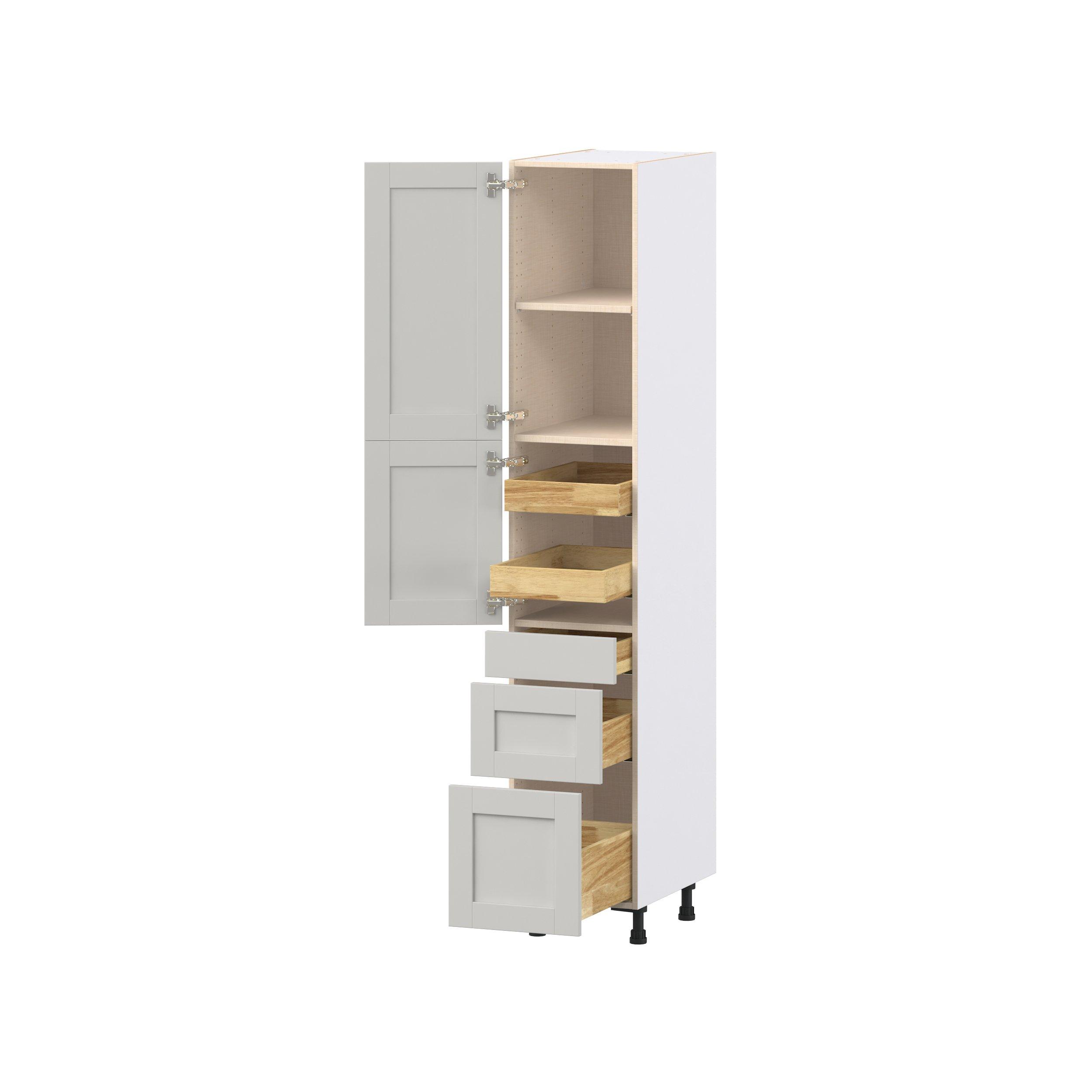 Enhance your home with the timeless beauty of Summerhill classic shaker cabinets, available in fresh bright white and neutral light gray colors. Crafted from one-piece MDF Studio Design Collection Summerhill 15 in. Light Gray Door and Drawer Pantry Cabinet with Inner Pull-Out is designed to resist hairline cracks while the easy-to-clean finish stands up to stains and moisture. Featuring 5-piece doors and dovetail drawer joints, these cabinets offer durability and elegance. This collection combines style with everyday storage solutions.