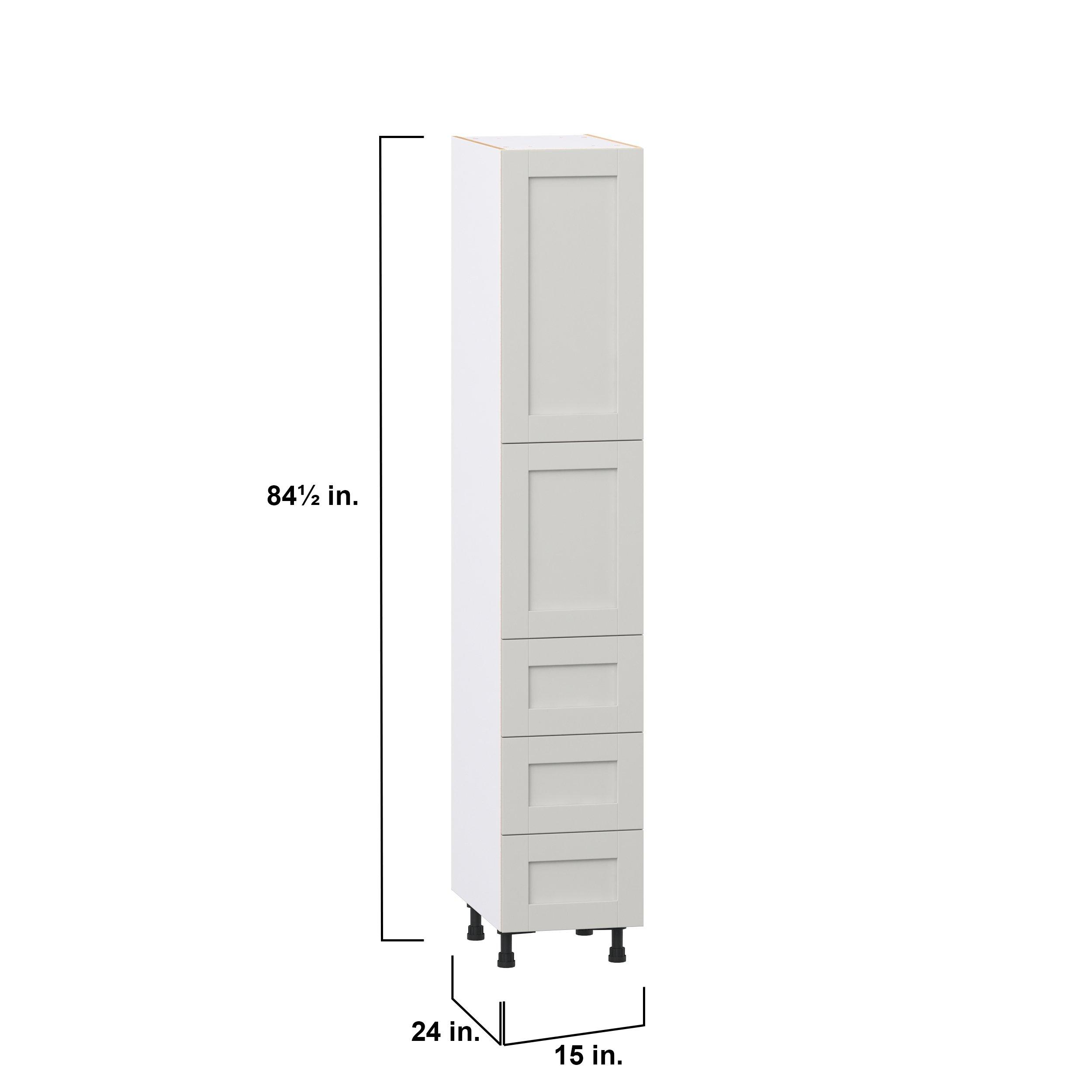 Enhance your home with the timeless beauty of Summerhill classic shaker cabinets, available in fresh bright white and neutral light gray colors. Crafted from one-piece MDF Studio Design Collection Summerhill 15 in. Light Gray Door and Drawer Pantry Cabinet with Inner Pull-Out is designed to resist hairline cracks while the easy-to-clean finish stands up to stains and moisture. Featuring 5-piece doors and dovetail drawer joints, these cabinets offer durability and elegance. This collection combines style with everyday storage solutions.