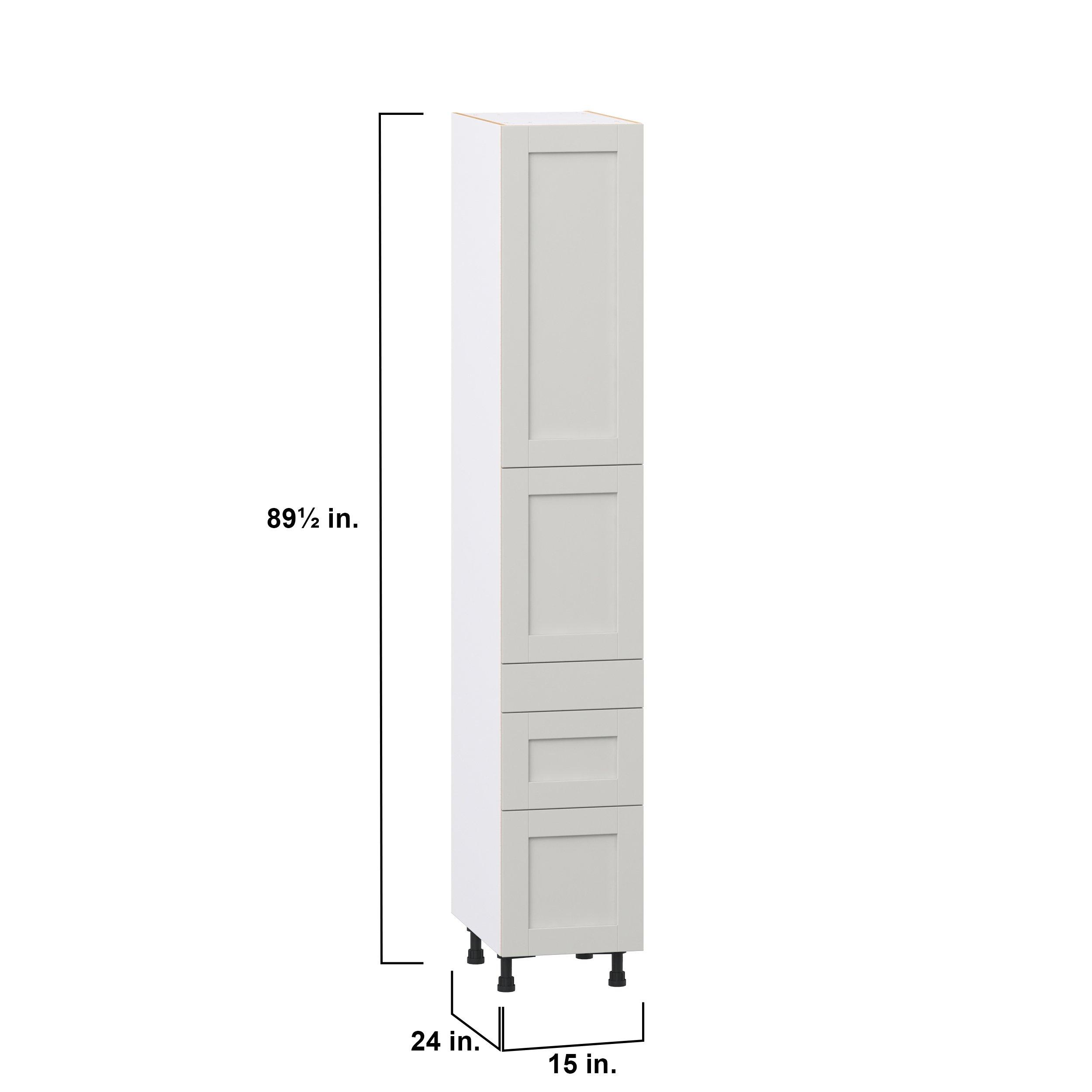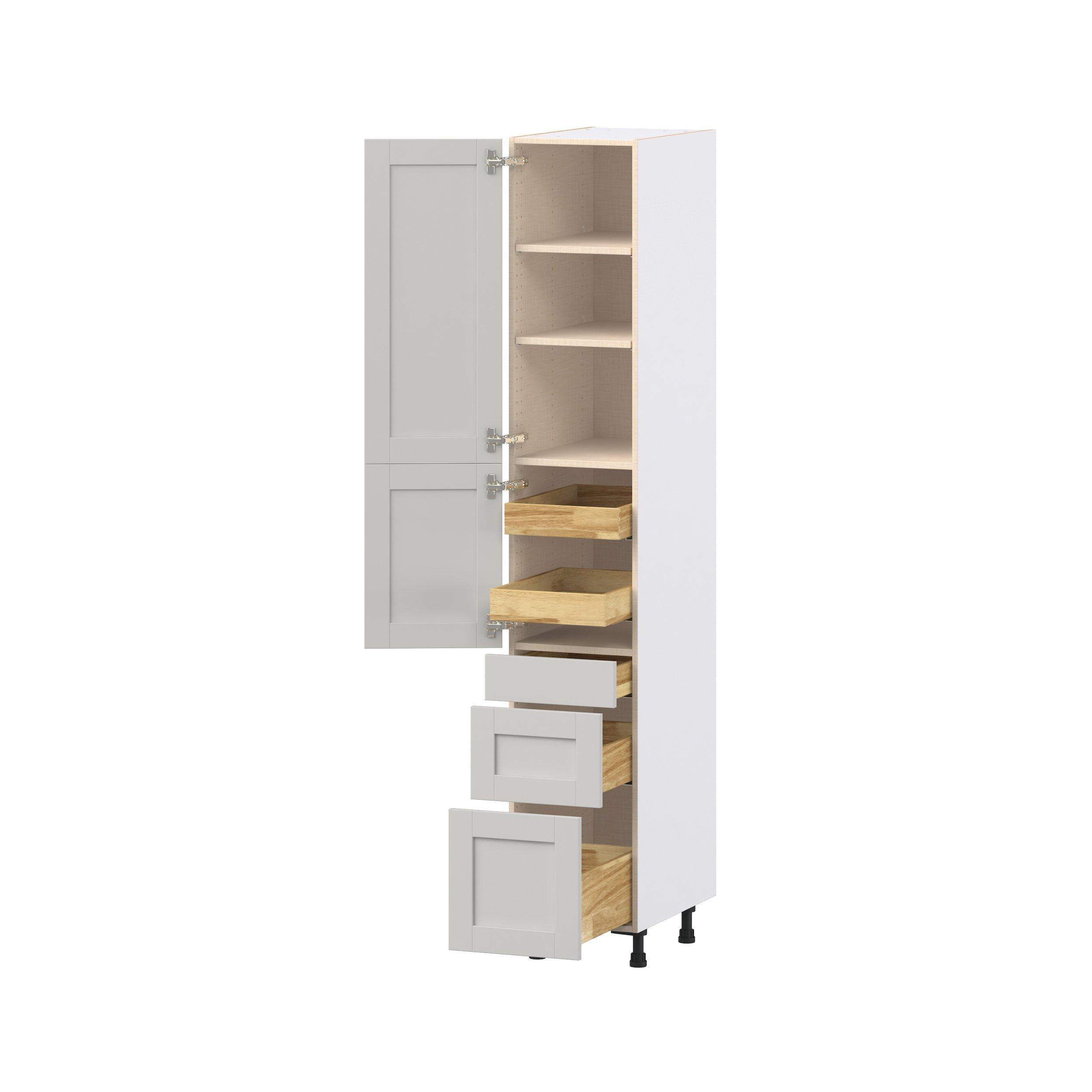 Enhance your home with the timeless beauty of Summerhill classic shaker cabinets, available in fresh bright white and neutral light gray colors. Crafted from one-piece MDF Studio Design Collection Summerhill 15 in. Light Gray Door and Drawer Pantry Cabinet with Inner Pull-Out is designed to resist hairline cracks while the easy-to-clean finish stands up to stains and moisture. Featuring 5-piece doors and dovetail drawer joints, these cabinets offer durability and elegance. This collection combines style with everyday storage solutions.