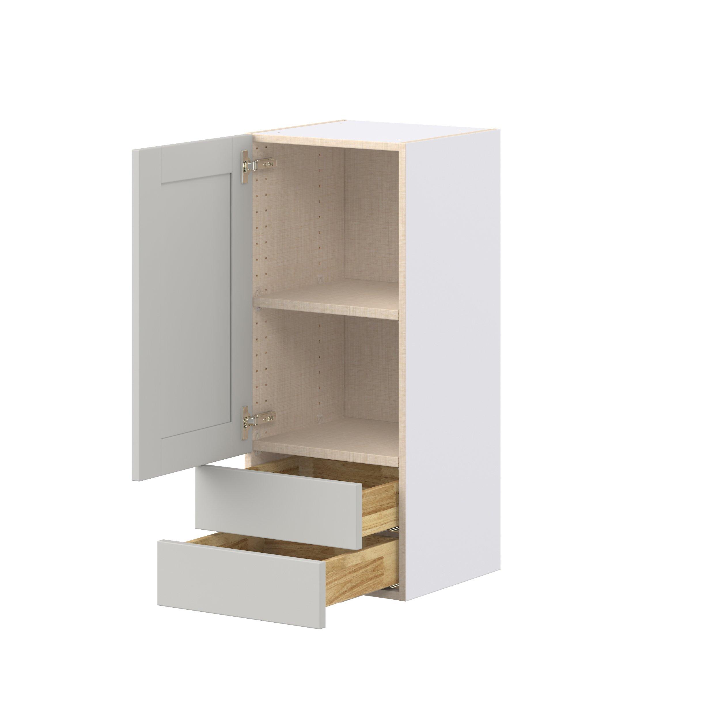 Enhance your home with the timeless beauty of Summerhill classic shaker cabinets, available in fresh bright white and neutral light gray colors. Crafted from one-piece MDF Studio Design Collection Summerhill 15 in. Light Gray Door and Drawer Wall Cabinet is designed to resist hairline cracks while the easy-to-clean finish stands up to stains and moisture. Featuring 5-piece doors and dovetail drawer joints, these cabinets offer durability and elegance. This collection combines style with everyday storage solutions.