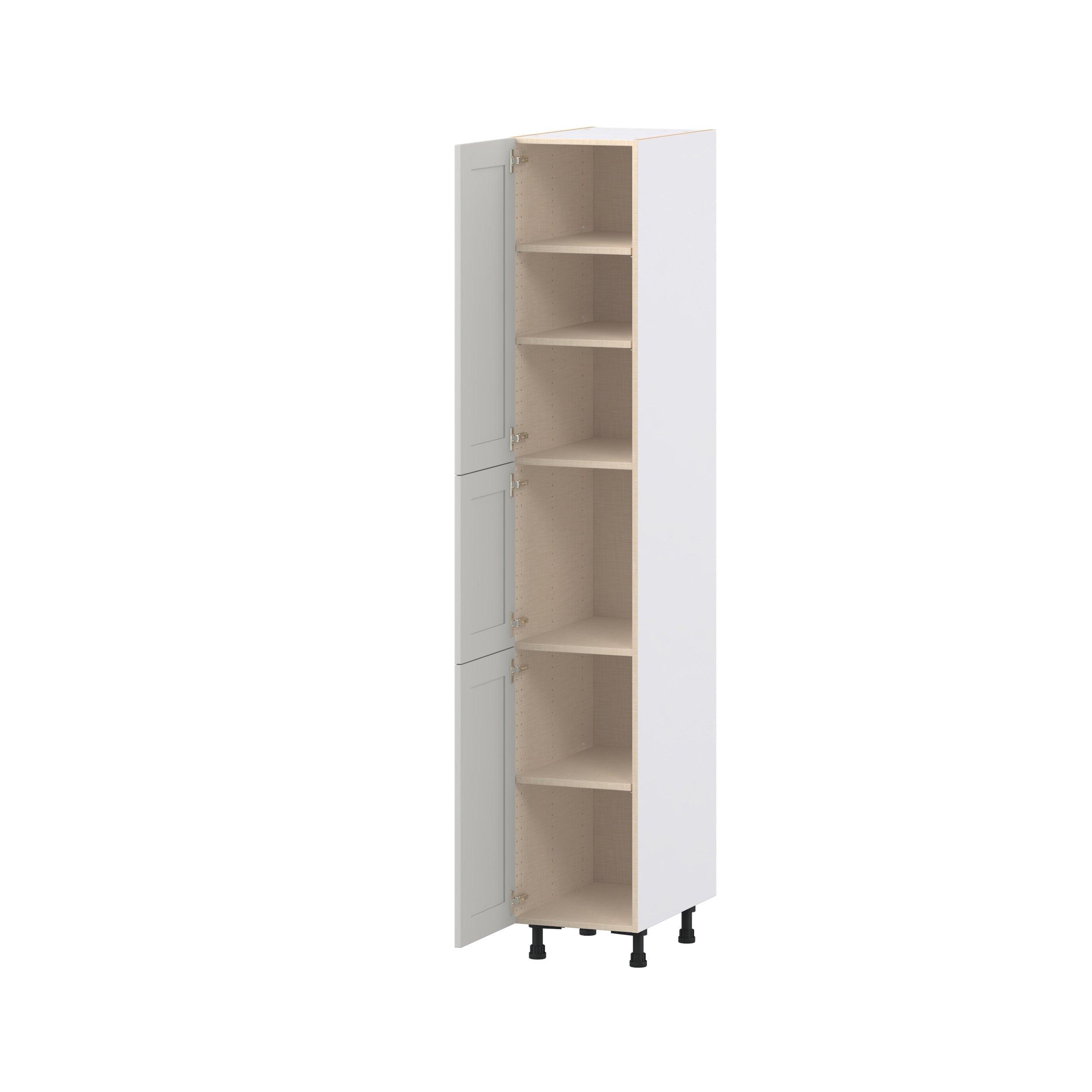 Enhance your home with the timeless beauty of Summerhill classic shaker cabinets, available in fresh bright white and neutral light gray colors. Crafted from one-piece MDF Studio Design Collection Summerhill 15 in. Light Gray Door Pantry Cabinet is designed to resist hairline cracks while the easy-to-clean finish stands up to stains and moisture. Featuring 5-piece doors and dovetail drawer joints, these cabinets offer durability and elegance. This collection combines style with everyday storage solutions.