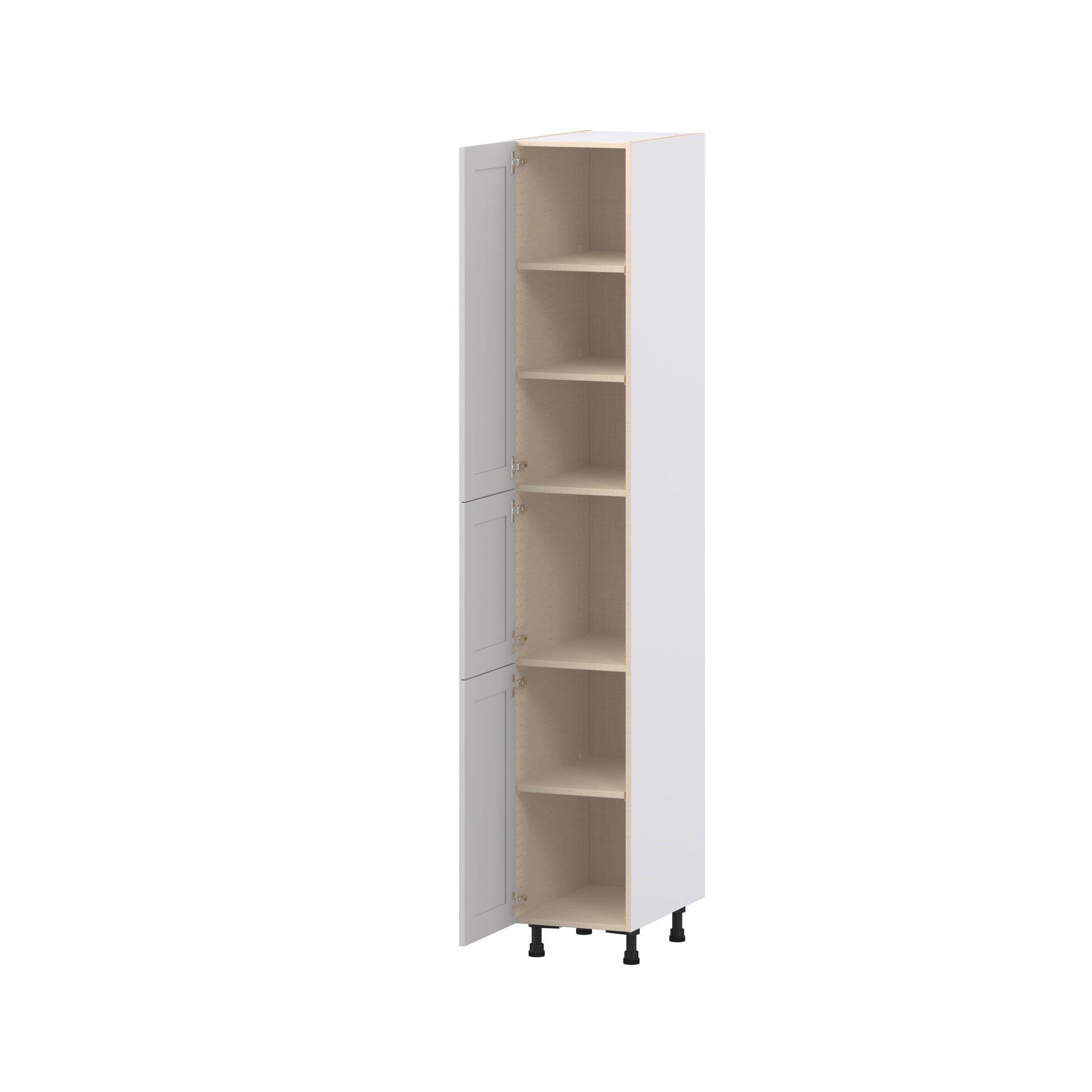 Enhance your home with the timeless beauty of Summerhill classic shaker cabinets, available in fresh bright white and neutral light gray colors. Crafted from one-piece MDF Studio Design Collection Summerhill 15 in. Light Gray Door Pantry Cabinet is designed to resist hairline cracks while the easy-to-clean finish stands up to stains and moisture. Featuring 5-piece doors and dovetail drawer joints, these cabinets offer durability and elegance. This collection combines style with everyday storage solutions.