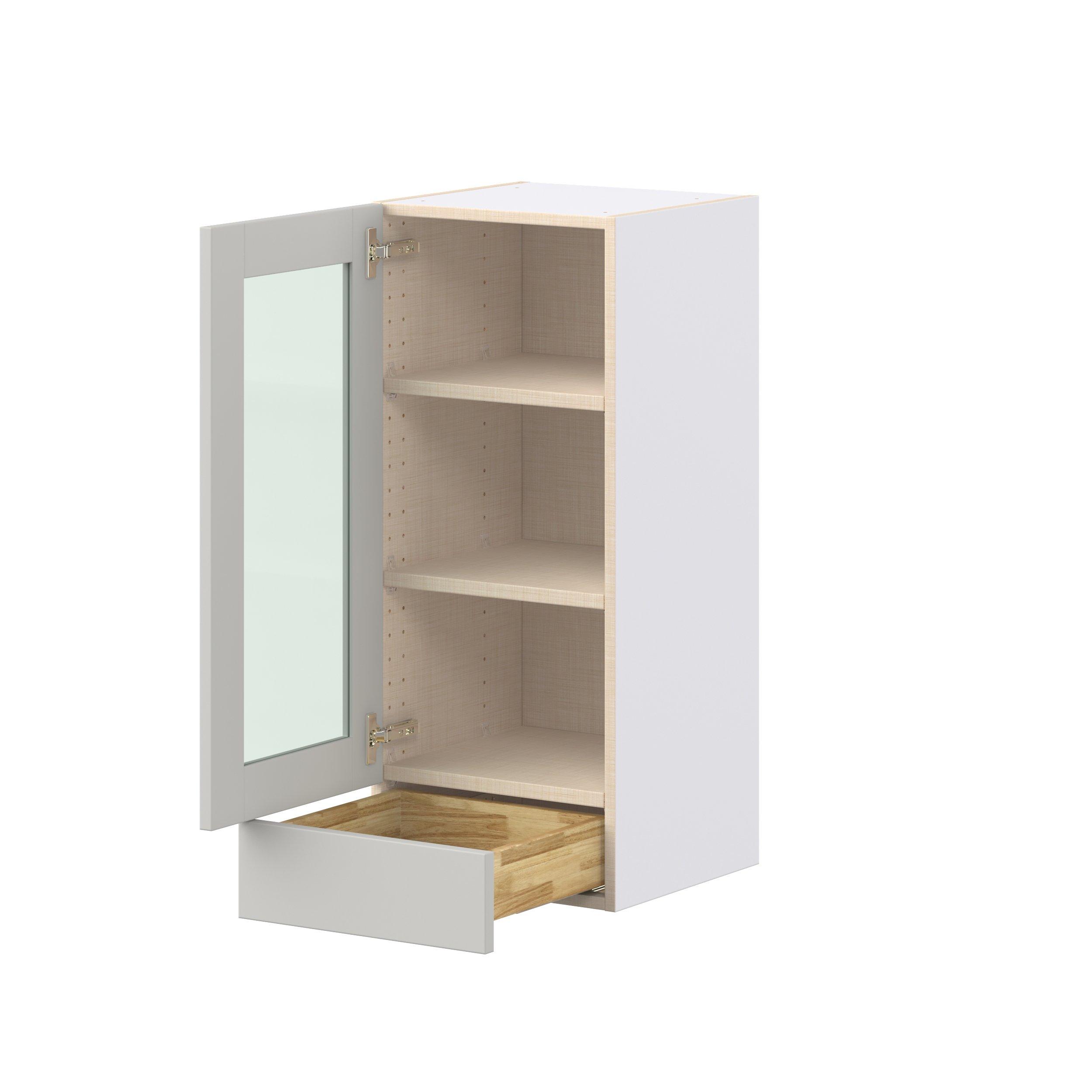 Enhance your home with the timeless beauty of Summerhill classic shaker cabinets, available in fresh bright white and neutral light gray colors. Crafted from one-piece MDF Studio Design Collection Summerhill 15 in. Light Gray Drawer Wall Cabinet with Glass Door is designed to resist hairline cracks while the easy-to-clean finish stands up to stains and moisture. Featuring 5-piece doors and dovetail drawer joints, these cabinets offer durability and elegance. This collection combines style with everyday storage solutions.