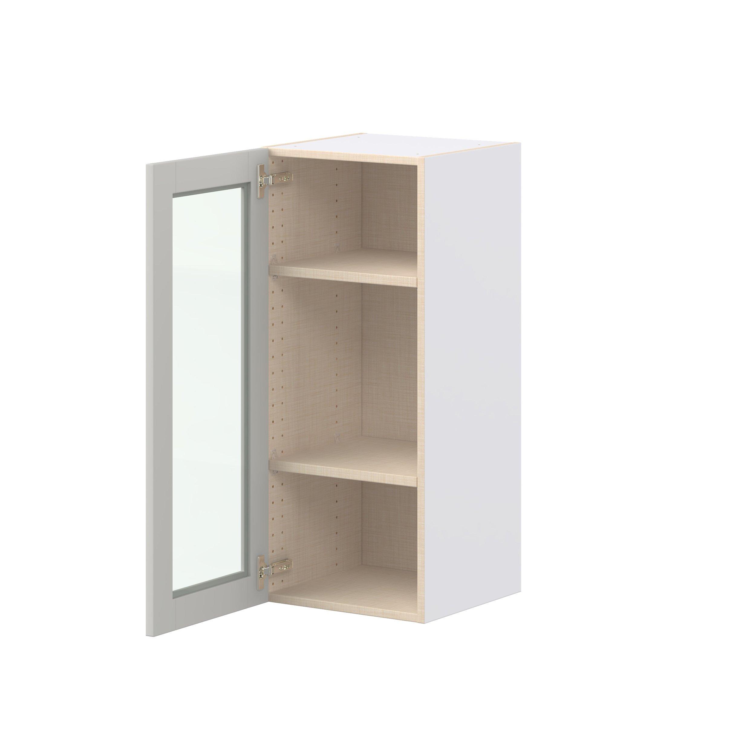 Enhance your home with the timeless beauty of Summerhill classic shaker cabinets, available in fresh bright white and neutral light gray colors. Crafted from one-piece MDF Studio Design Collection Summerhill 15 in. Light Gray Wall Cabinet with Glass Door is designed to resist hairline cracks while the easy-to-clean finish stands up to stains and moisture. Featuring 5-piece doors and dovetail drawer joints, these cabinets offer durability and elegance. This collection combines style with everyday storage solutions.