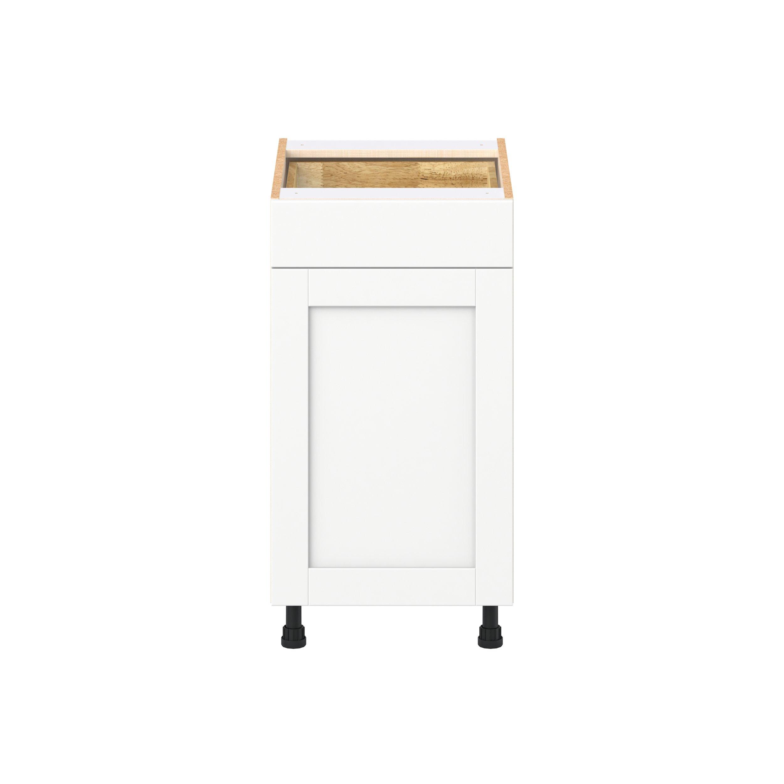 Enhance your home with the timeless beauty of Summerhill classic shaker cabinets, available in fresh bright white and neutral light gray colors. Crafted from one-piece MDF Studio Design Collection Summerhill 18 in. Bright White Door and Drawer Base Cabinet is designed to resist hairline cracks while the easy-to-clean finish stands up to stains and moisture. Featuring 5-piece doors and dovetail drawer joints, these cabinets offer durability and elegance. This collection combines style with everyday storage solutions.