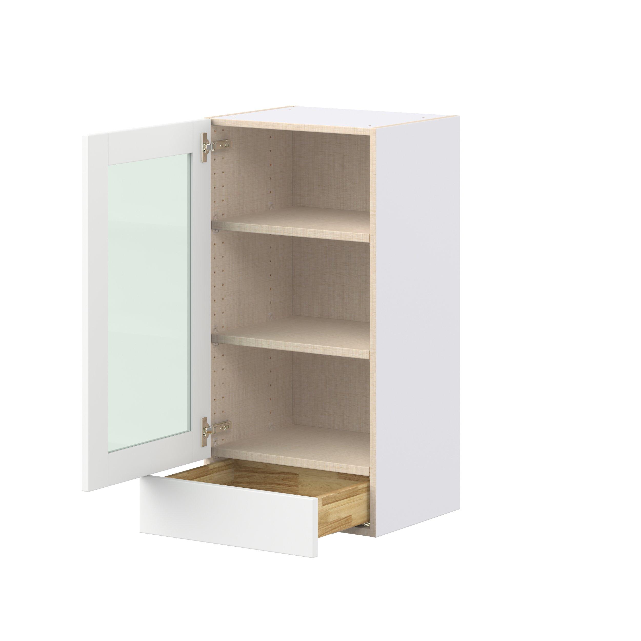 Enhance your home with the timeless beauty of Summerhill classic shaker cabinets, available in fresh bright white and neutral light gray colors. Crafted from one-piece MDF Studio Design Collection Summerhill 18 in. Bright White Drawer Wall Cabinet with Glass Door is designed to resist hairline cracks while the easy-to-clean finish stands up to stains and moisture. Featuring 5-piece doors and dovetail drawer joints, these cabinets offer durability and elegance. This collection combines style with everyday storage solutions.
