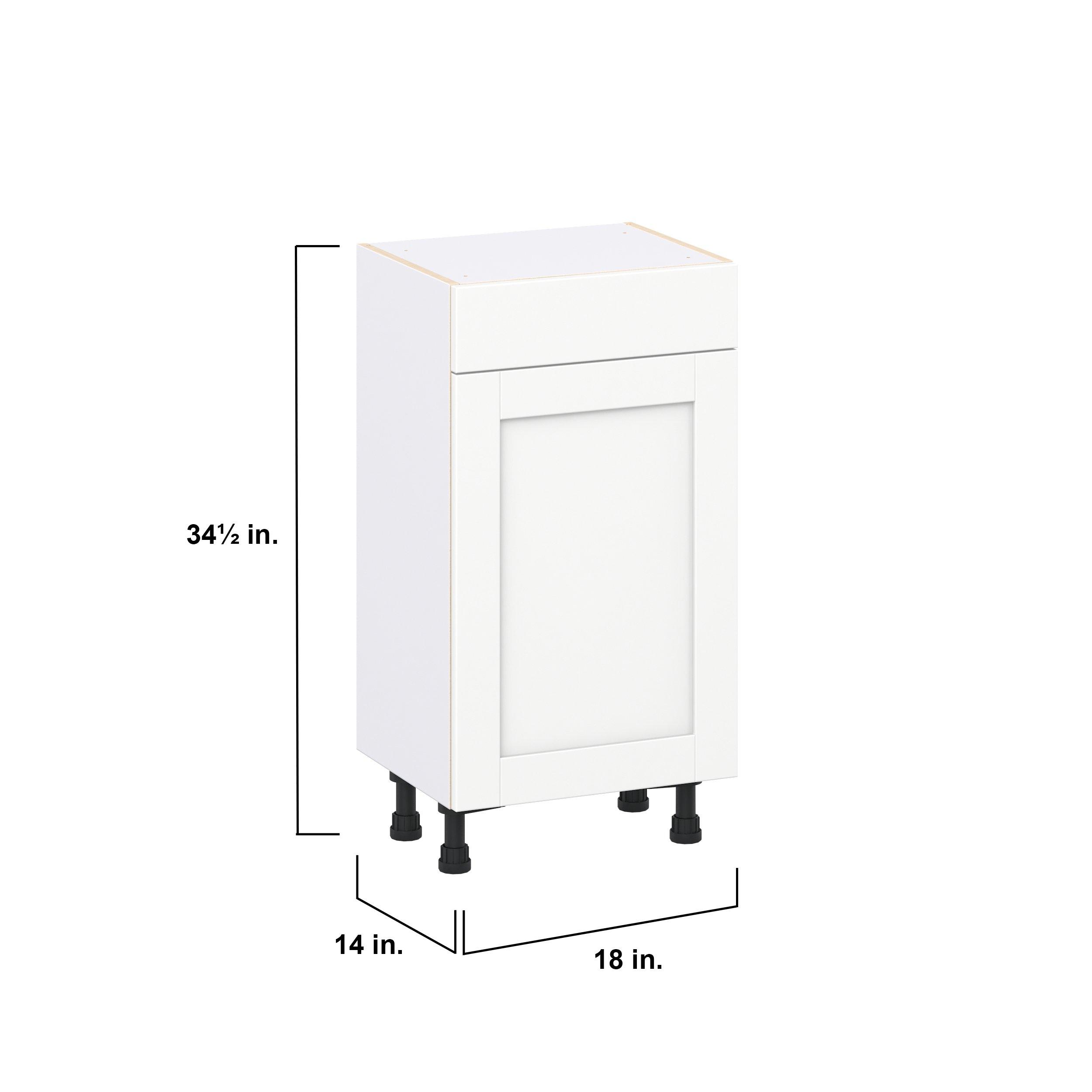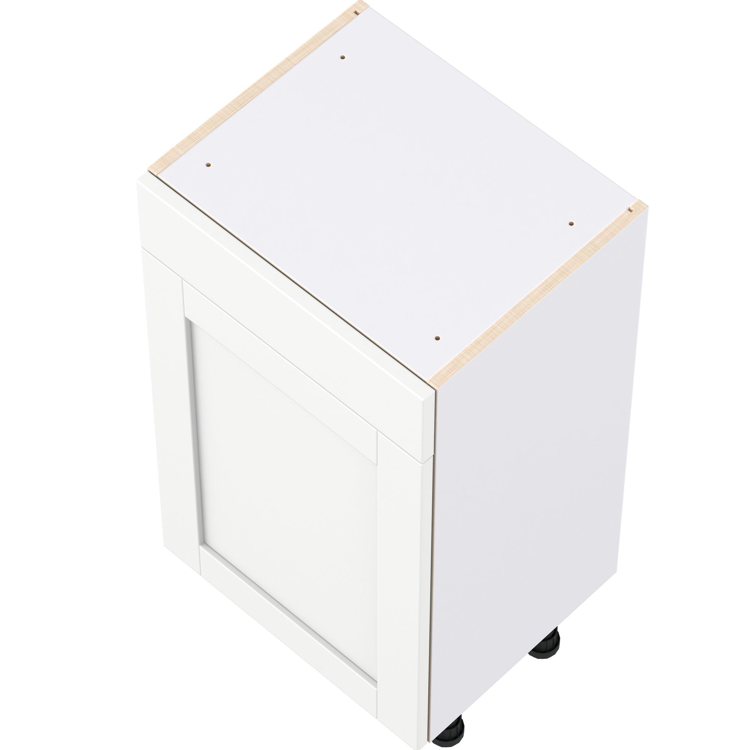 Enhance your home with the timeless beauty of Summerhill classic shaker cabinets, available in fresh bright white and neutral light gray colors. Crafted from one-piece MDF Studio Design Collection Summerhill 18 in. Bright White Shallow Base Cabinet is designed to resist hairline cracks while the easy-to-clean finish stands up to stains and moisture. Featuring 5-piece doors and dovetail drawer joints, these cabinets offer durability and elegance. This collection combines style with everyday storage solutions.