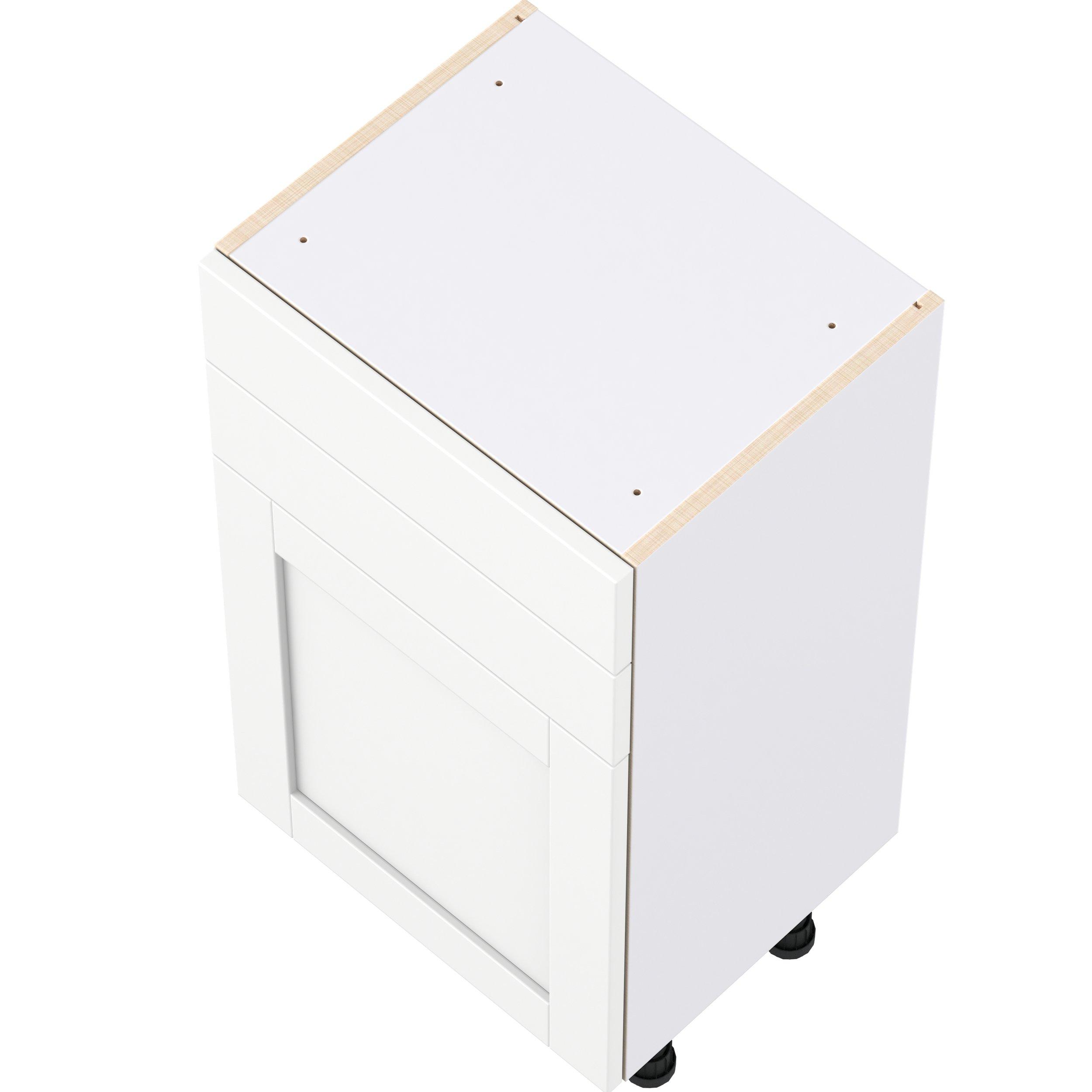 Enhance your home with the timeless beauty of Summerhill classic shaker cabinets, available in fresh bright white and neutral light gray colors. Crafted from one-piece MDF Studio Design Collection Summerhill 18 in. Bright White Shallow Base Cabinet is designed to resist hairline cracks while the easy-to-clean finish stands up to stains and moisture. Featuring 5-piece doors and dovetail drawer joints, these cabinets offer durability and elegance. This collection combines style with everyday storage solutions.
